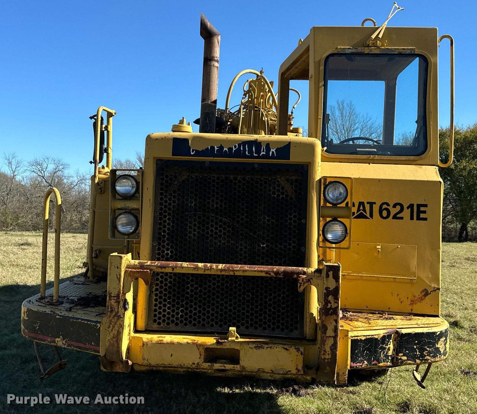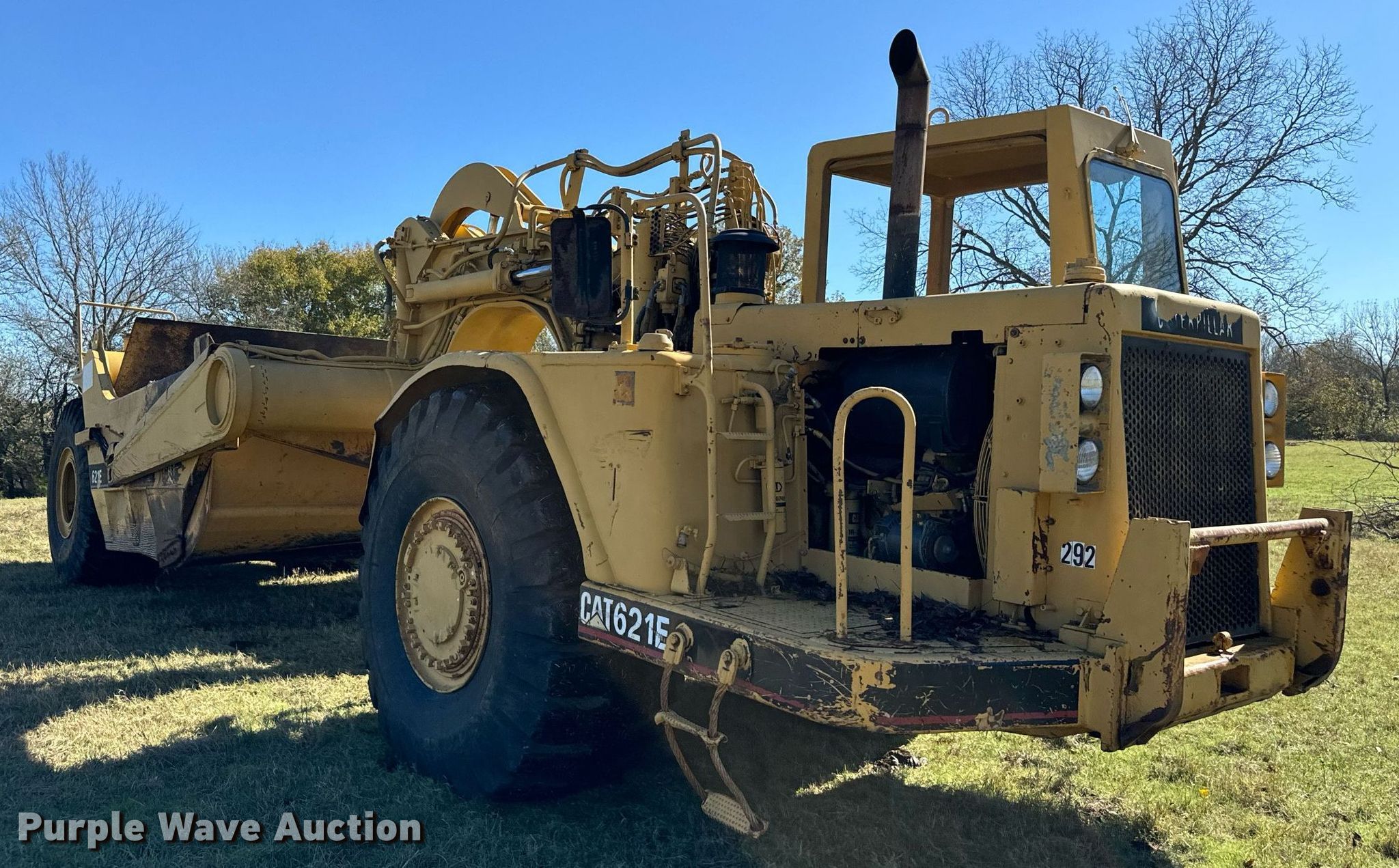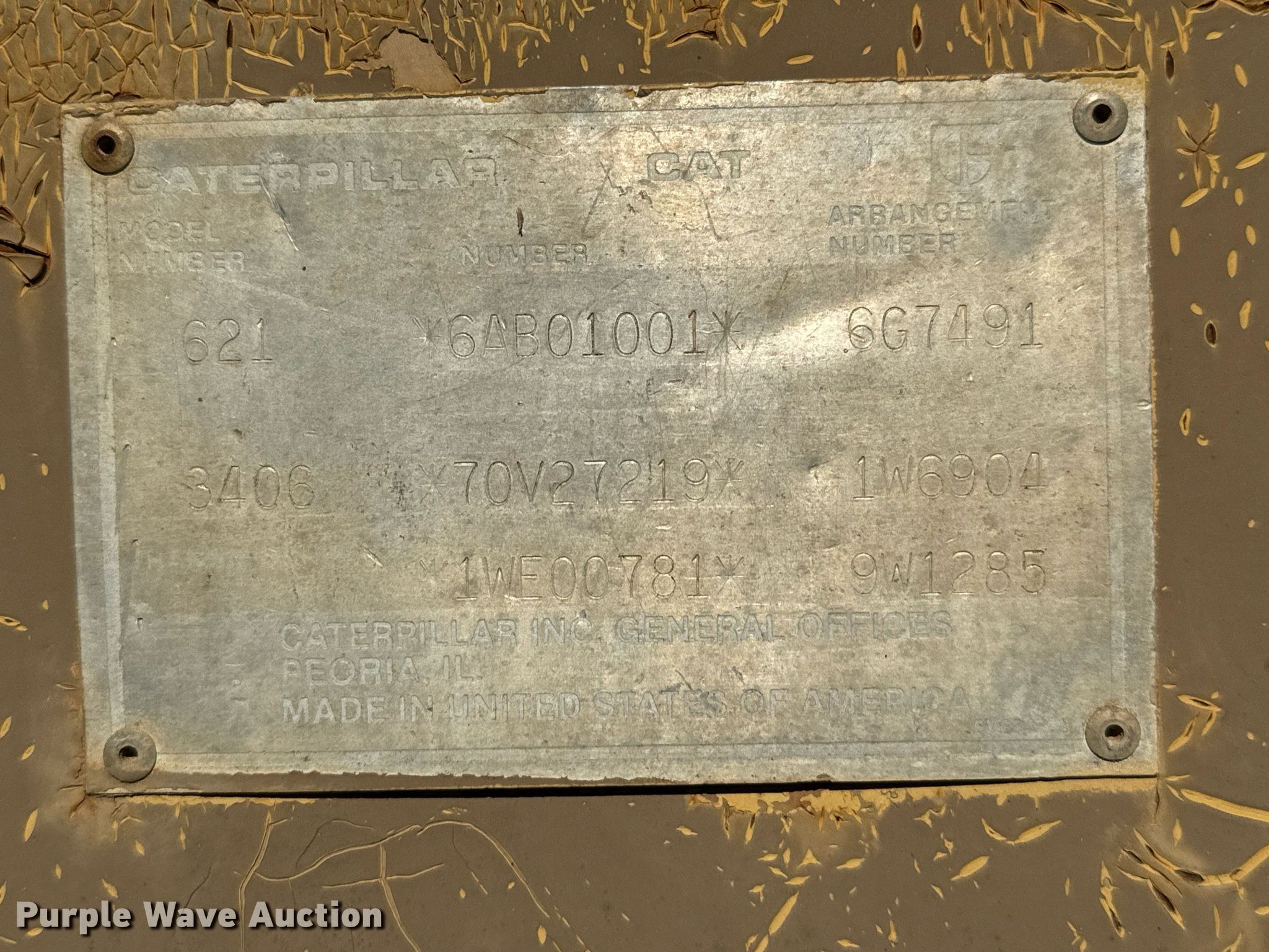 Purple Wave is selling a used Conventional Scraper in Oklahoma. This item is a 1988 Caterpillar 621E conventional scraper with the following: Hours: 1,268 on meter, Serial: 6AB01001