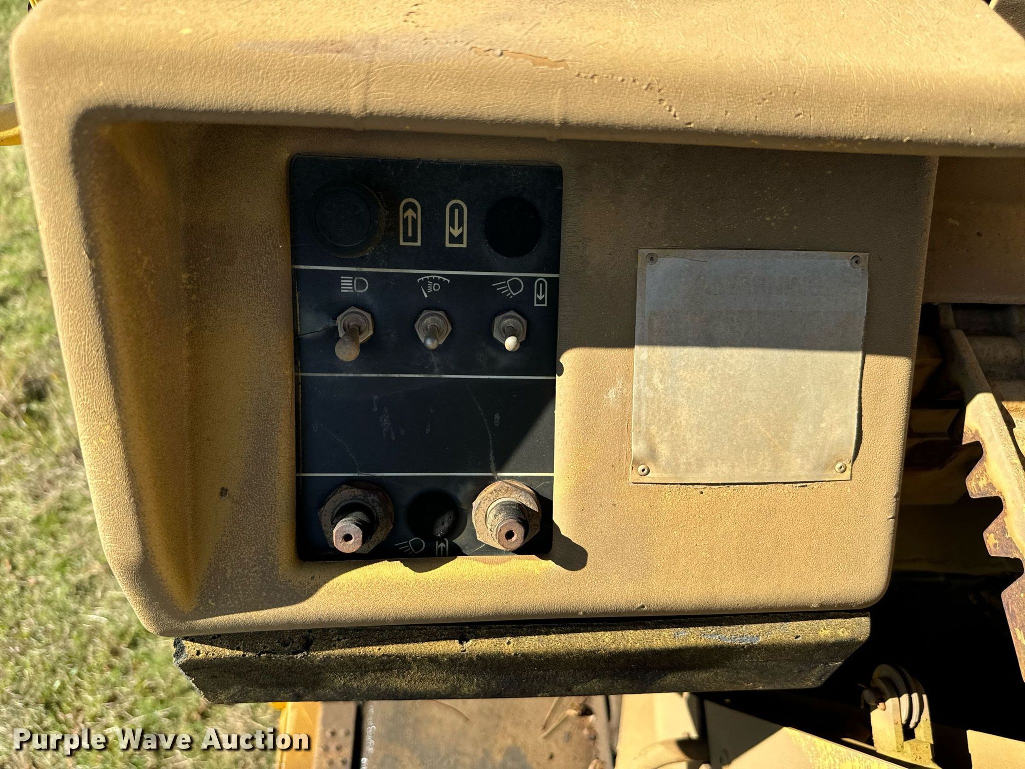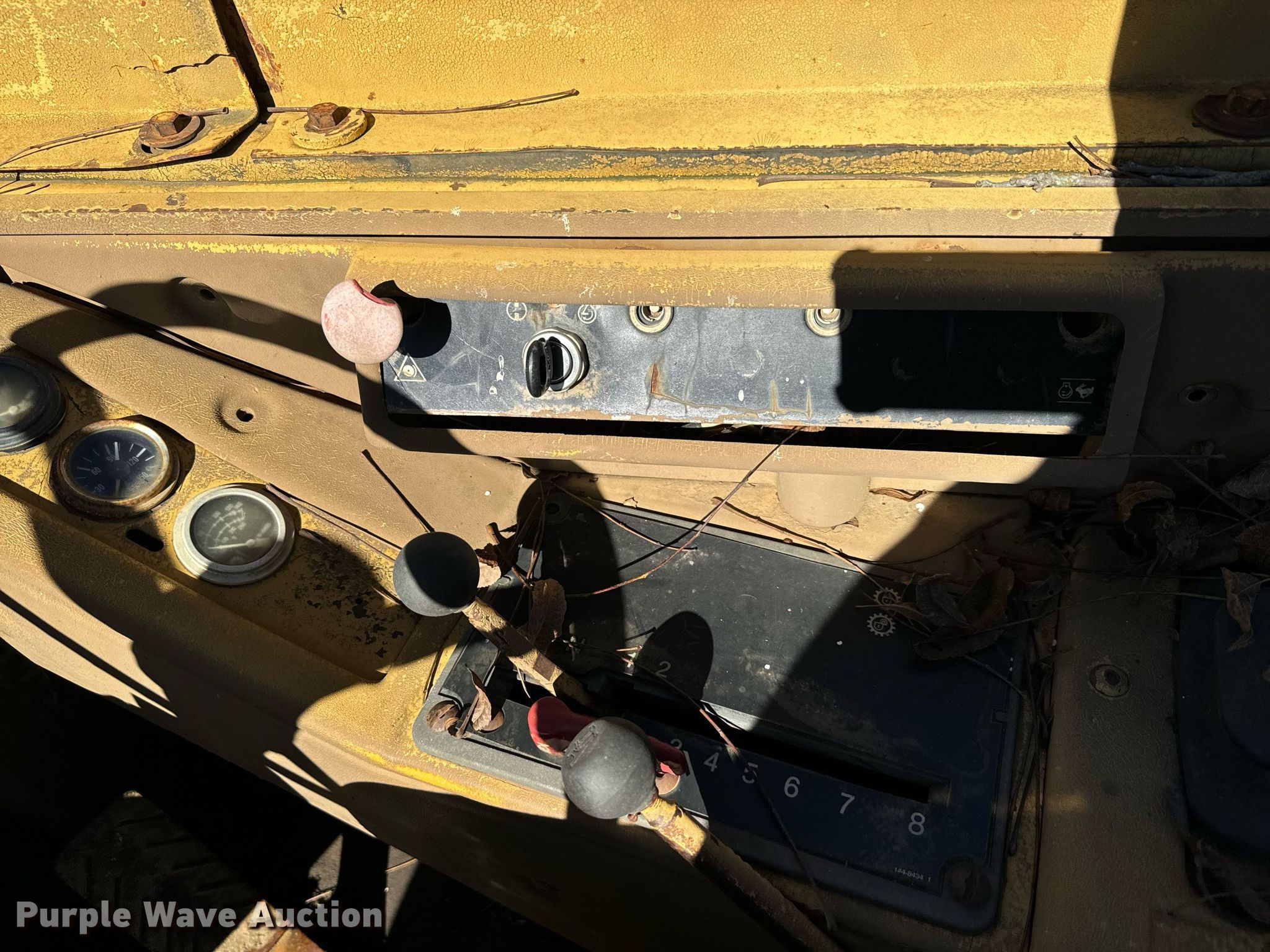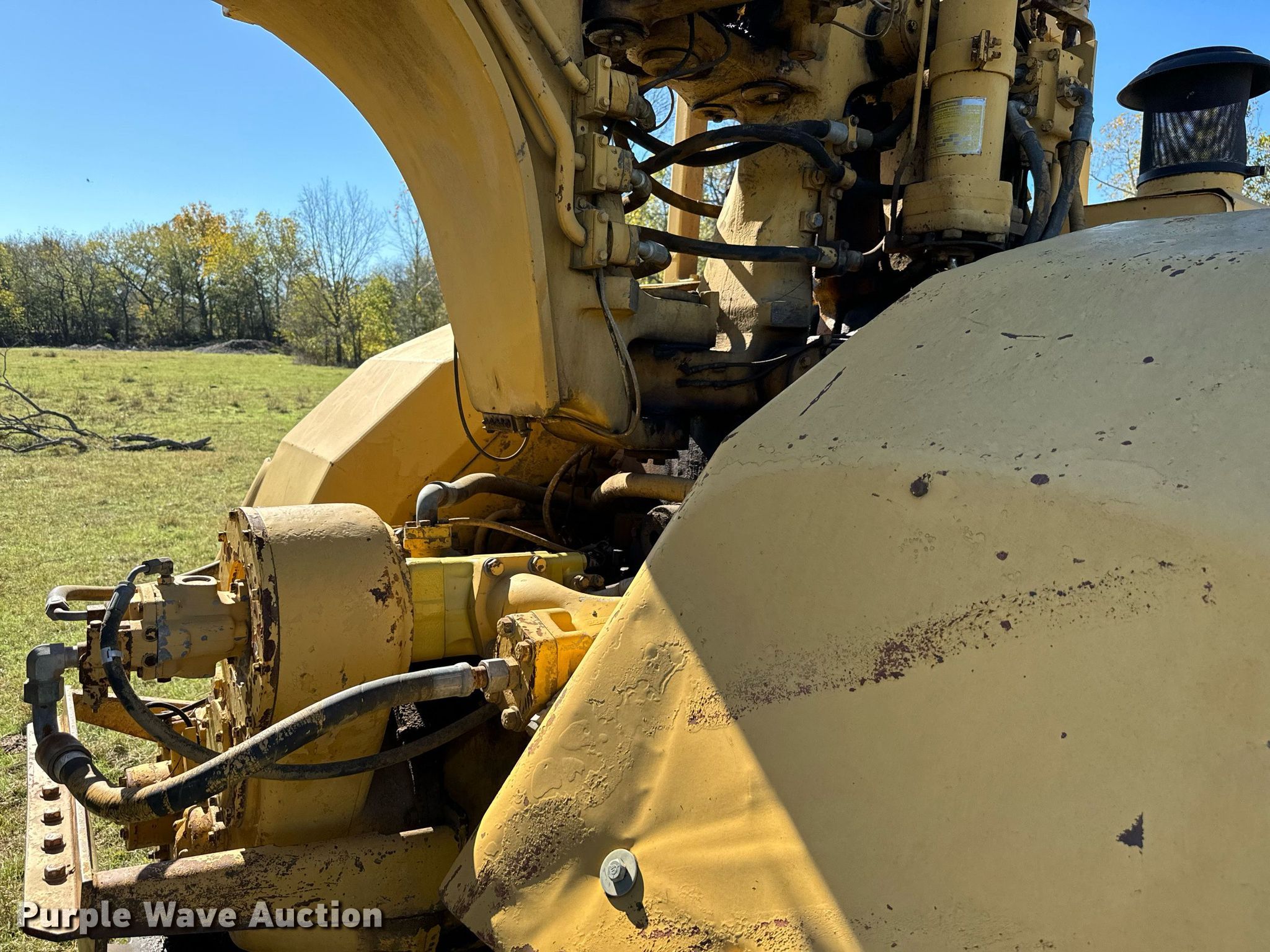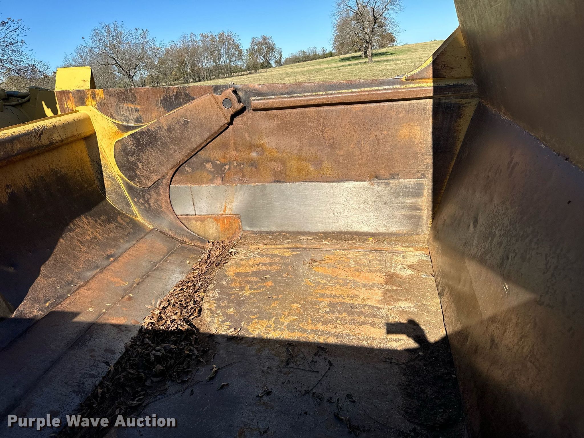 1988 Caterpillar 621E conventional scraper. Hours: 1,268 on meter, Serial: 6AB01001. Engine Caterpillar 3406, Serial: 70V27219, Cylinders: 6, Fuel type: Diesel. Transmission Powershift, 8F - 1R. Chassis Brakes: Air. Features Cushion hitch, Hydraulic lift, Scraper controls: Lever controls No. of controls: 3. Tires Size: 33.25-29. Notes Cushion hitch cylinder leak Cylinder bypassed. Bokchito, OK 74726