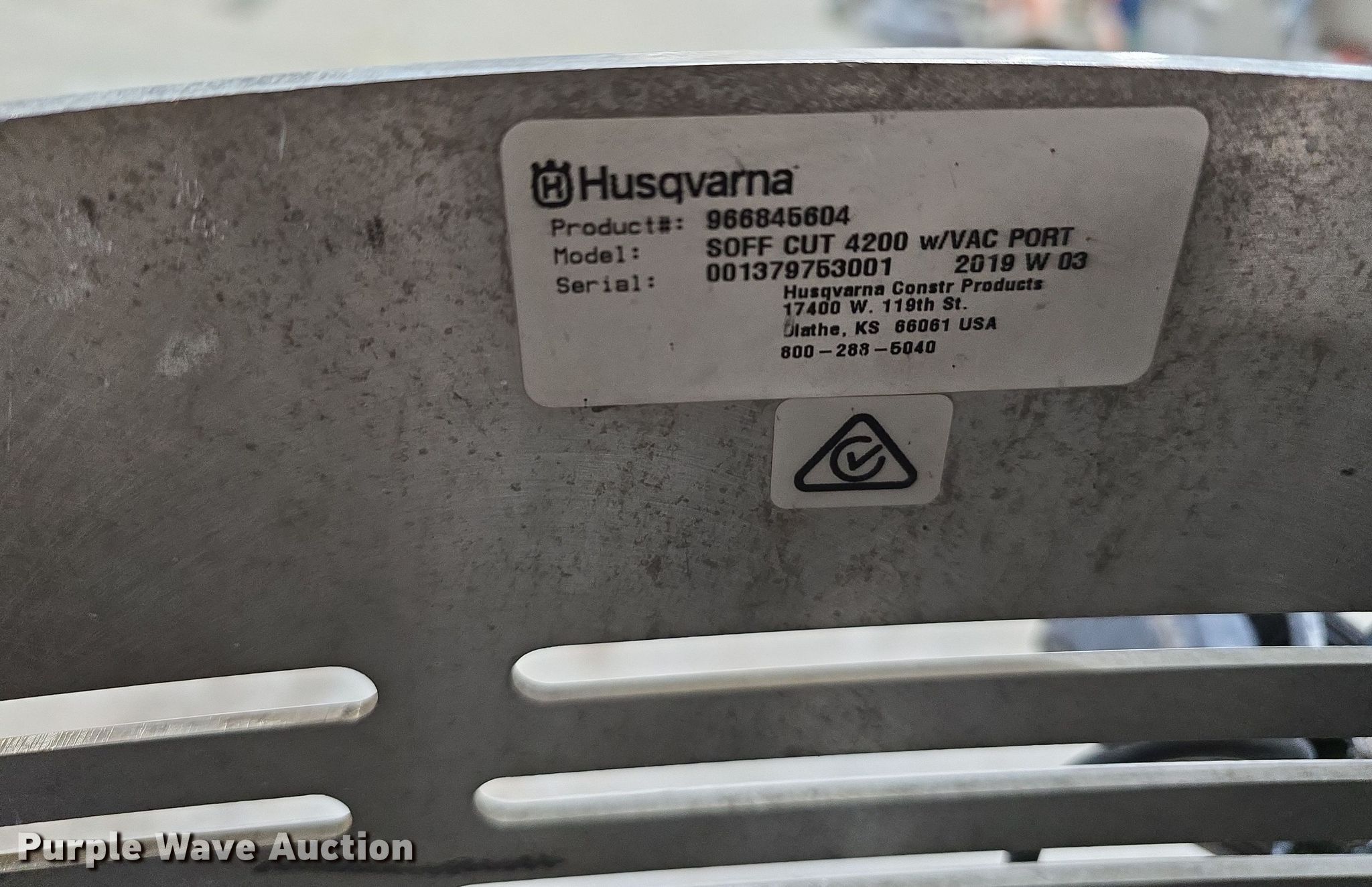 Purple Wave is selling a used Concrete Equip. or Acces. in Nebraska. This item is a 2019 Husqvarna Soff-Cut 4200 concrete saw with the following: Hours: 891 on meter, Serial: 001379763001