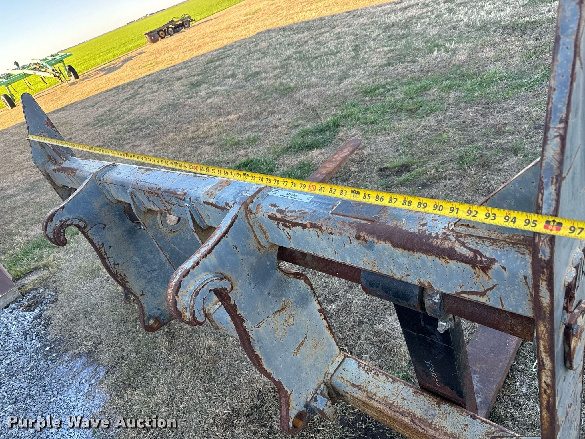 Tag wheel loader forks. Serial: 218694-01, Length: 72". Notes Fits John Deere 544/624 wheel loader. Precision Dirtwork. McPherson, KS 67460