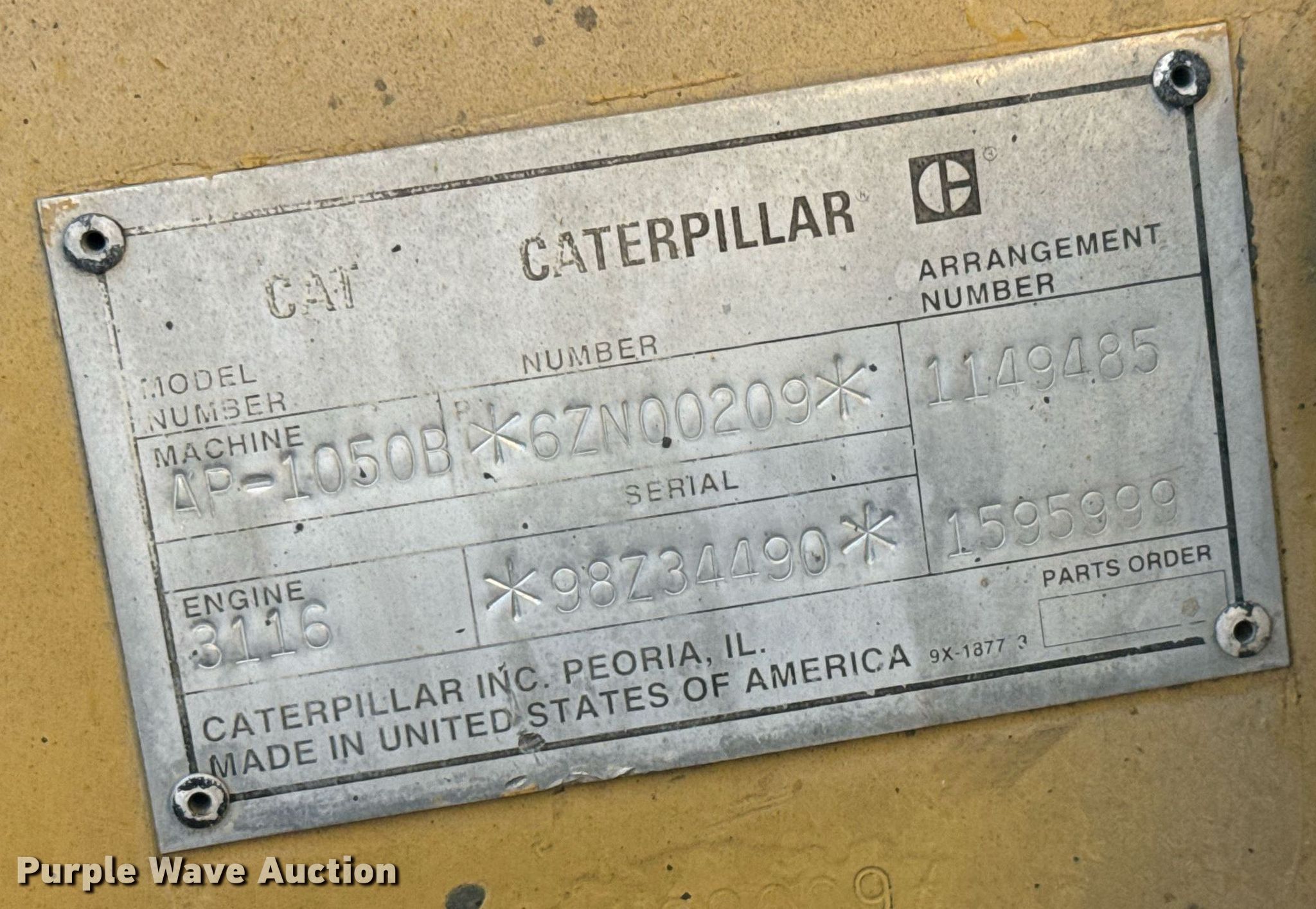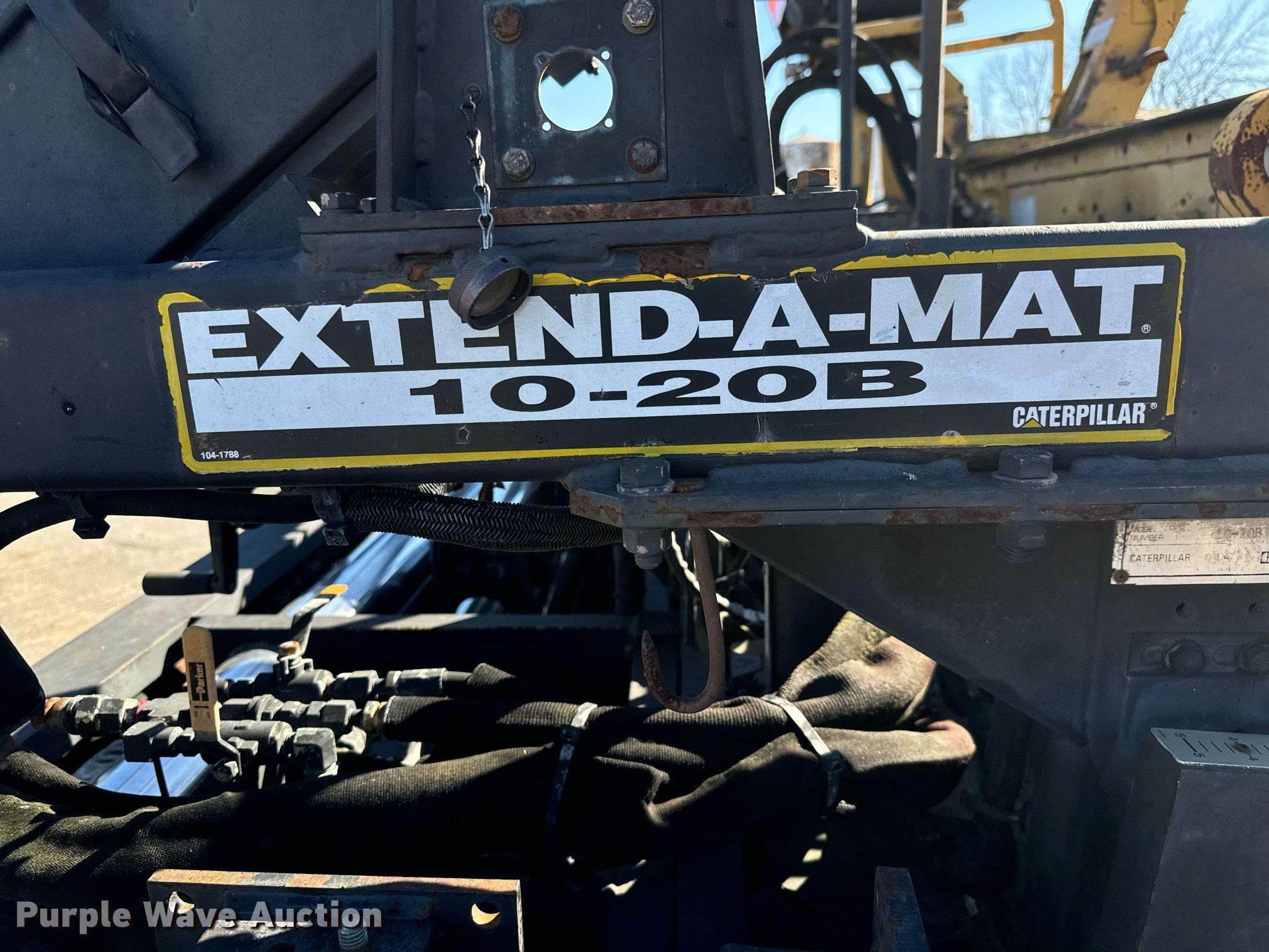 2001 Caterpillar AP-1050B paver. Hours: 14,000 on meter Actual hours unknown, Serial: 6ZN00209. Engine Caterpillar 3116, Cylinders: 6, Fuel type: Diesel. Transmission Hydrostatic Two speed travel. Features Screed Extend-A-Mat 10-20B, Serial: 2LN03624, Paving width: 10' to 20', Extensions, Screed heater: Diesel, Sonic Topcon Sonic Tracker II, Material conveyor Width: 48", Grade and slope controls. Tracks Width: 14". Notes Unknown operating condition of hour meter, Topcon cables not included. Blevins Asphalt Construction Company Inc.. Mount Vernon, MO 65712