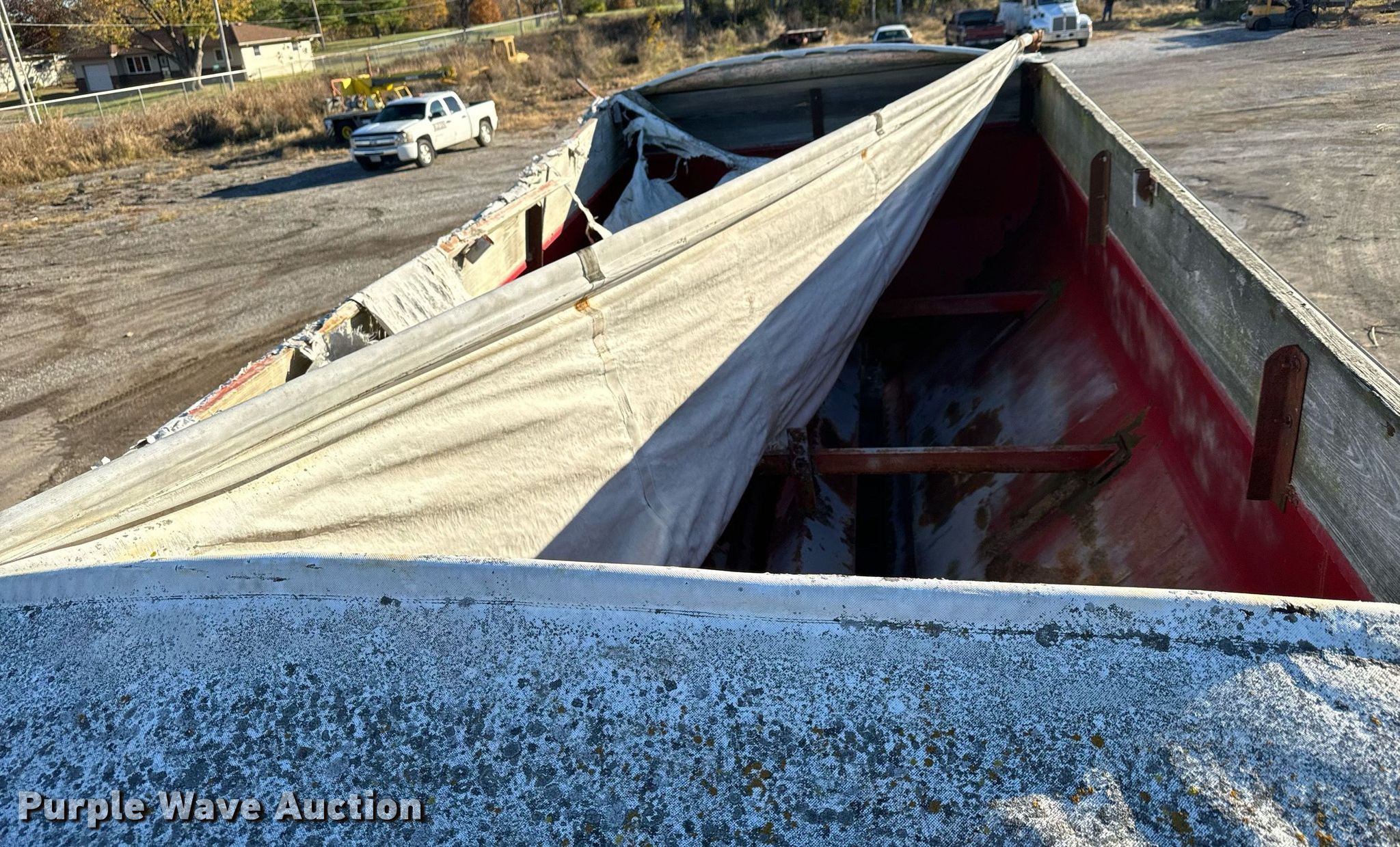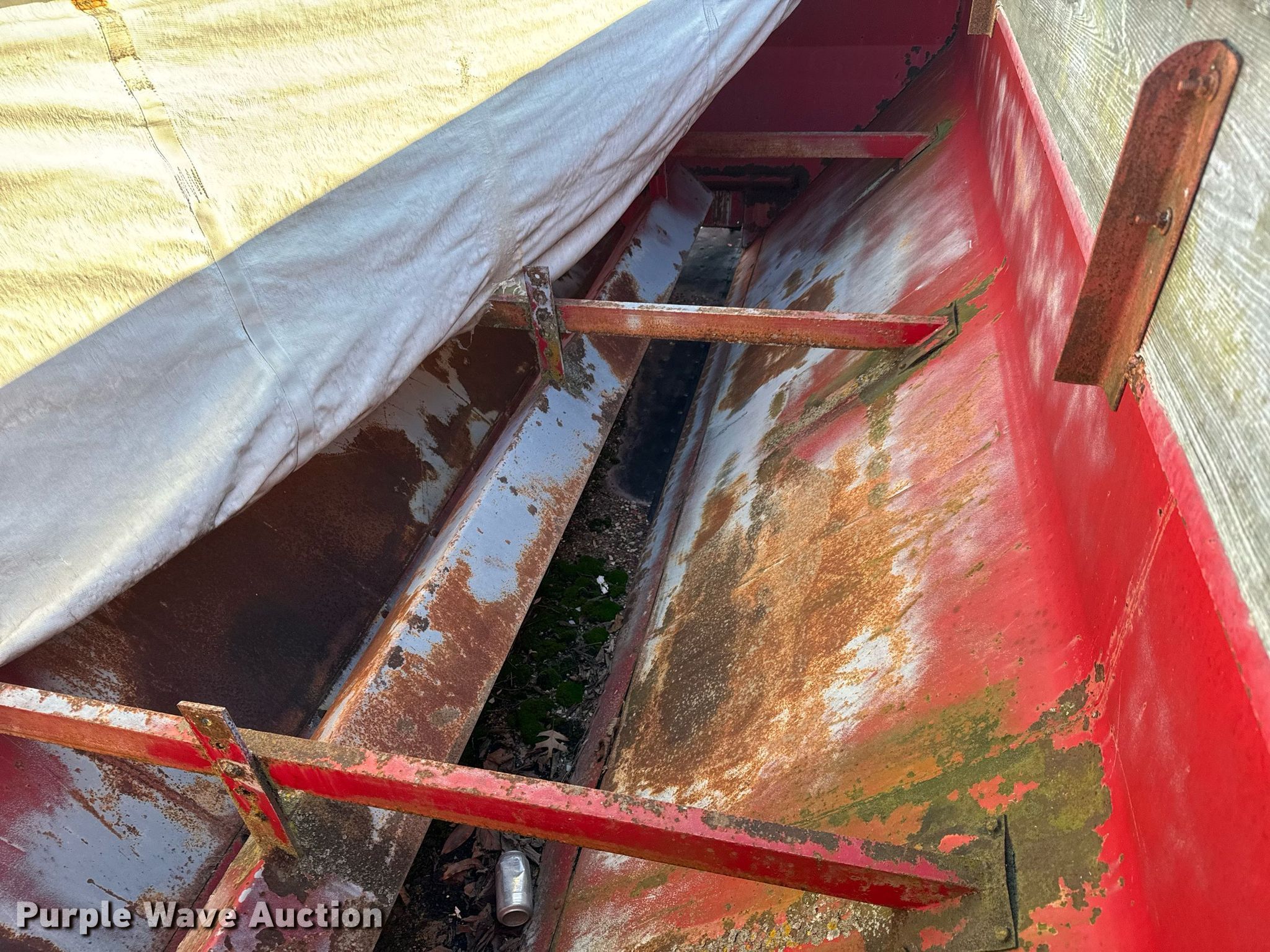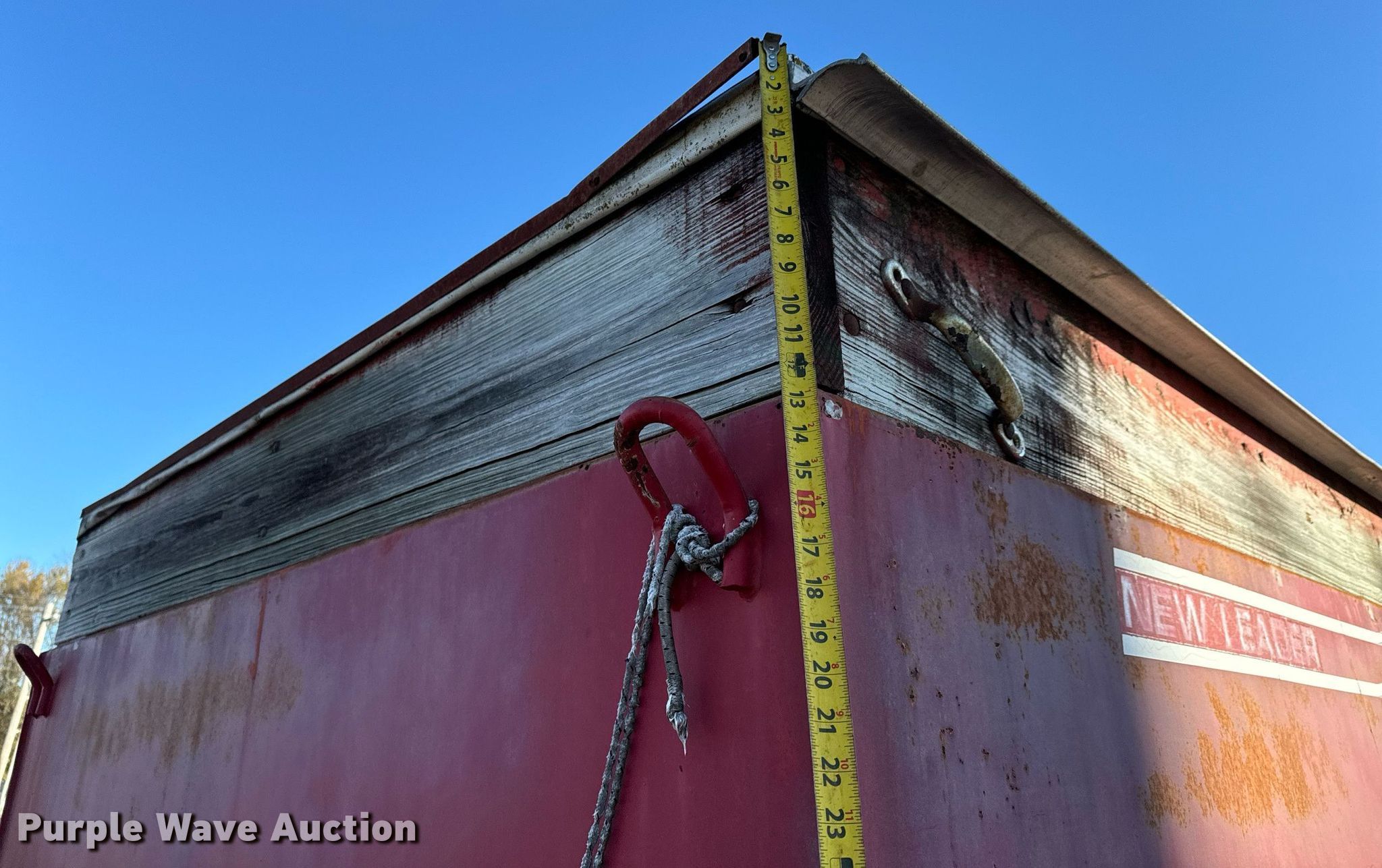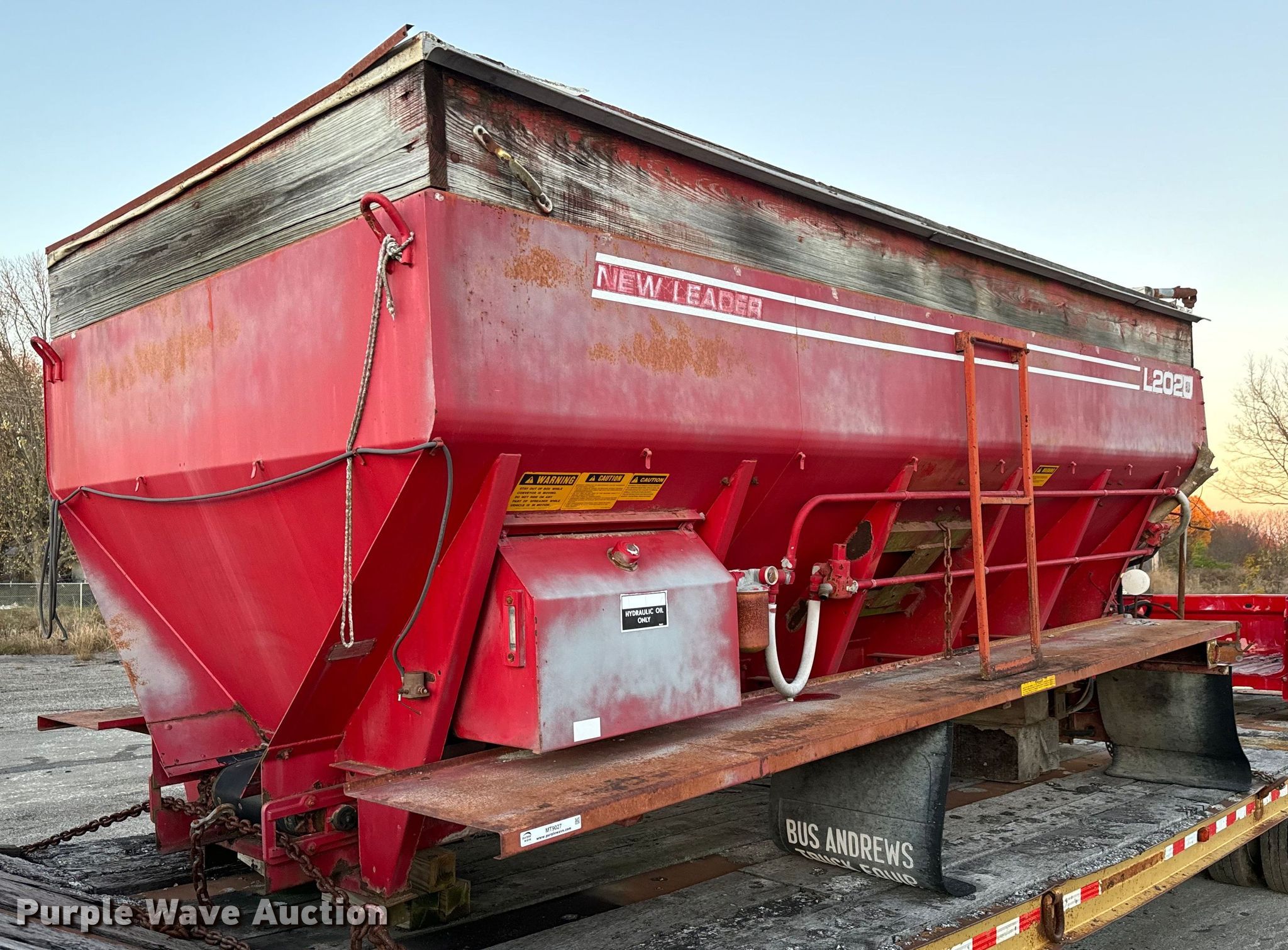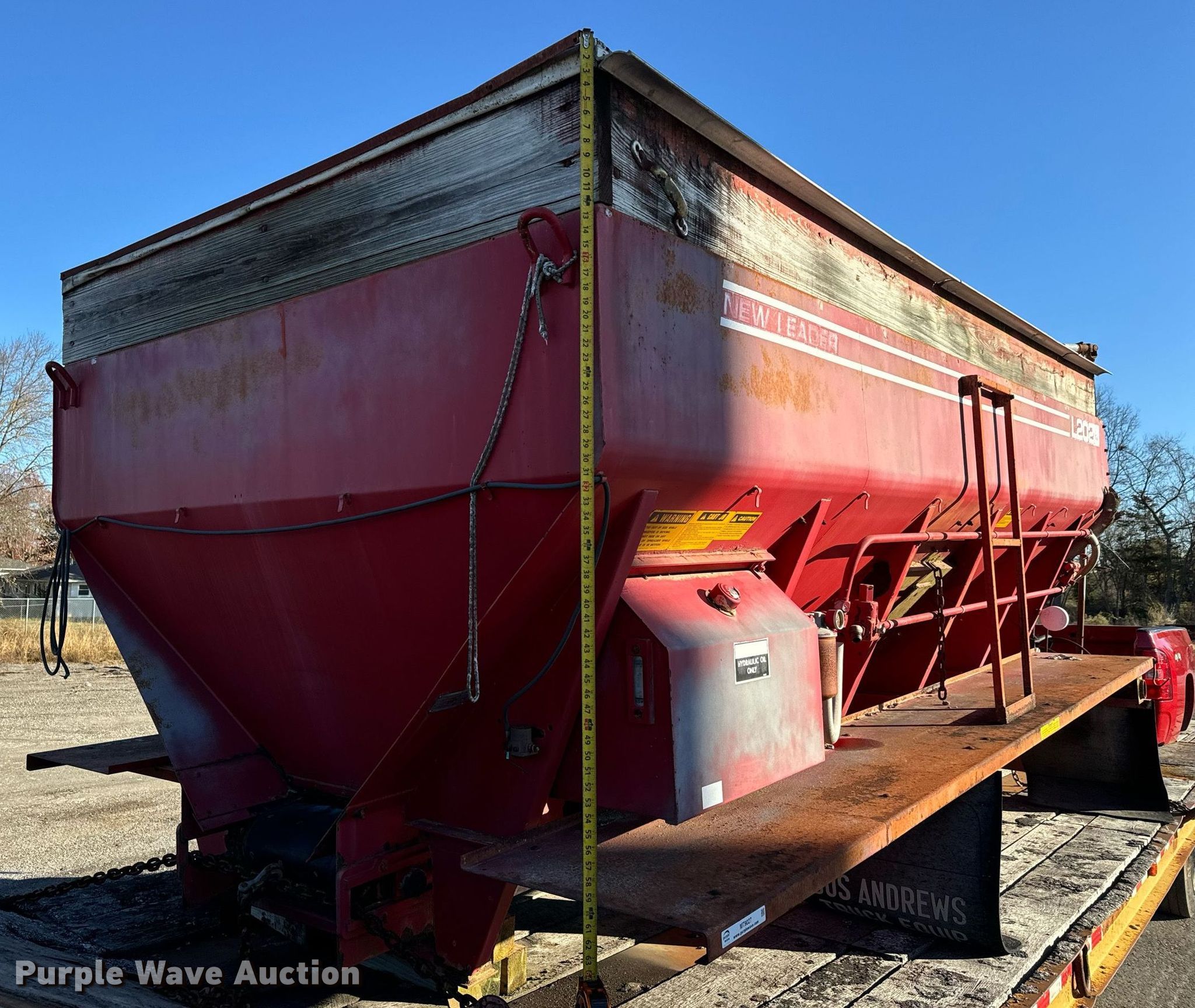 New Leader L2020-15 spreader. Serial: 87431. Features 17' L x 95" W, Bed type: Steel, Roll tarp. Notes Trailer not included, Damaged roll tarp, Unknown operating condition. Blevins Asphalt Construction Company Inc.. Mount Vernon, MO 65712