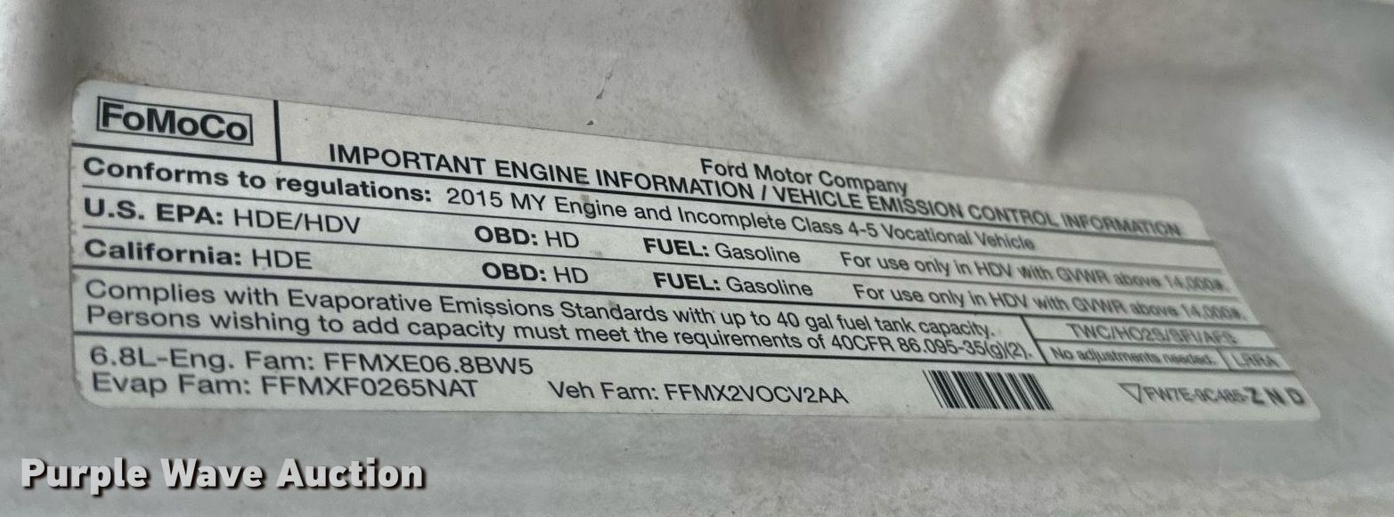 2015 Ford F550 Super Duty XL flatbed truck. Miles: 121,787 on odometer, Hours: 12,926 on meter, VIN: 1FD0W5GY1FEC35201. Engine Displacement: 6.8L, Fuel type: Gas. Transmission Automatic. Chassis Axles: Single, Suspension: Spring, Brakes: Hydraulic, GVWR: 19,500 lbs, Wheelbase: 200". Interior AC, Heat, Heated mirrors, Power windows, Power locks, Cruise control, Auxiliary controls, Brake controller. Features Flatbed 11' L x 92" W. Tires Size: 225/70R19.5. Notes Arrow board, Dash warning indicator: Check engine, Engine issues, idles rough , Electrical issue, arrow board will not raise. Illinois title. Title distribution may be delayed up to 14 days from verification of funds. Complete Landscaping. Itasca, IL 60143