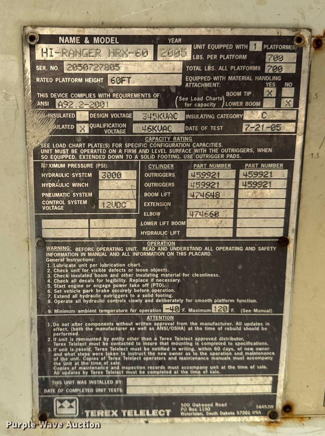 - 2005 Terex Hi-Ranger HRX-60