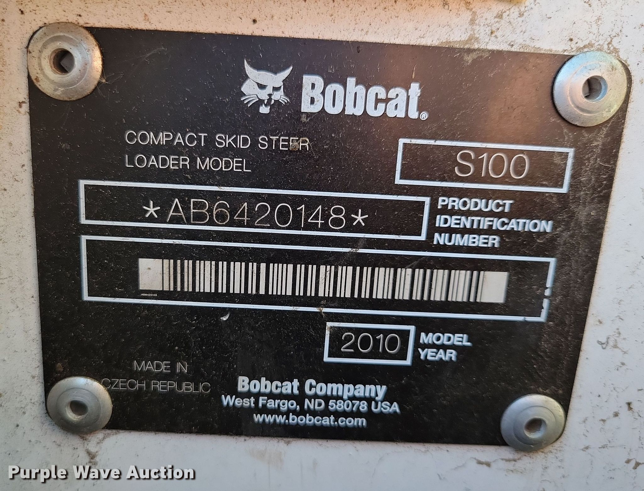 Purple Wave is selling a used Skid Steer Loader in South Dakota. This item is a 2010 Bobcat S100 skid steer loader with the following: Hours: 653 on meter, Serial: AB6420148