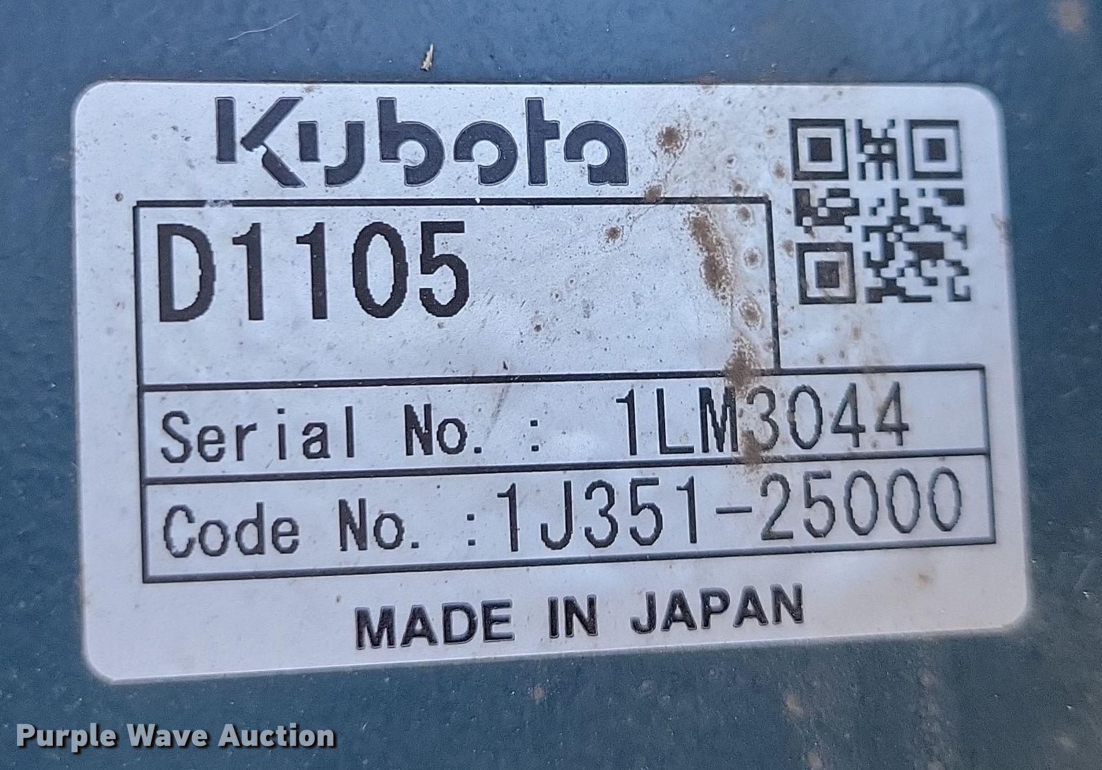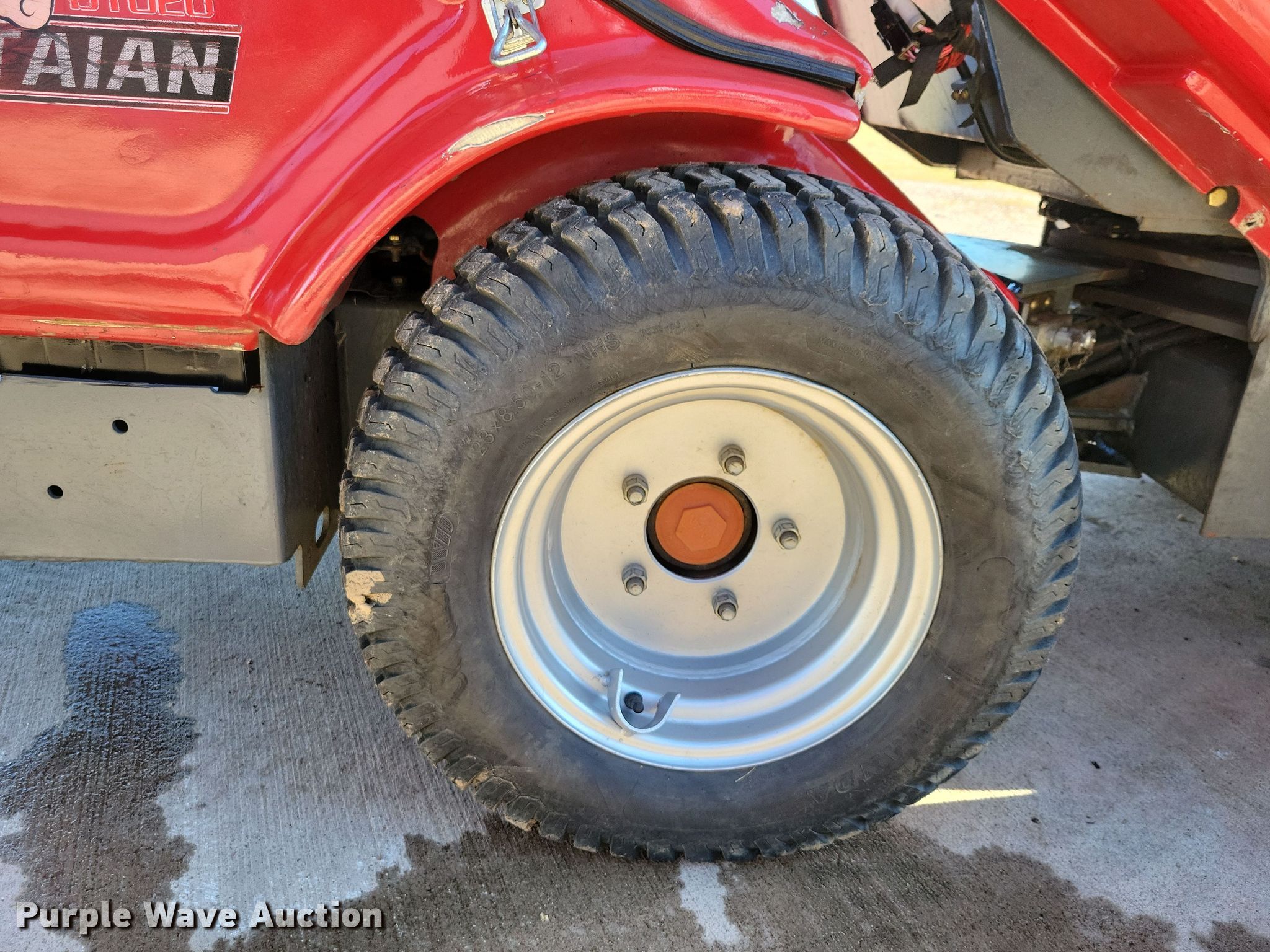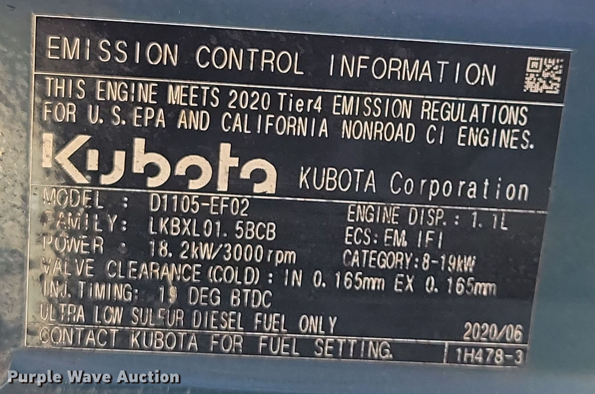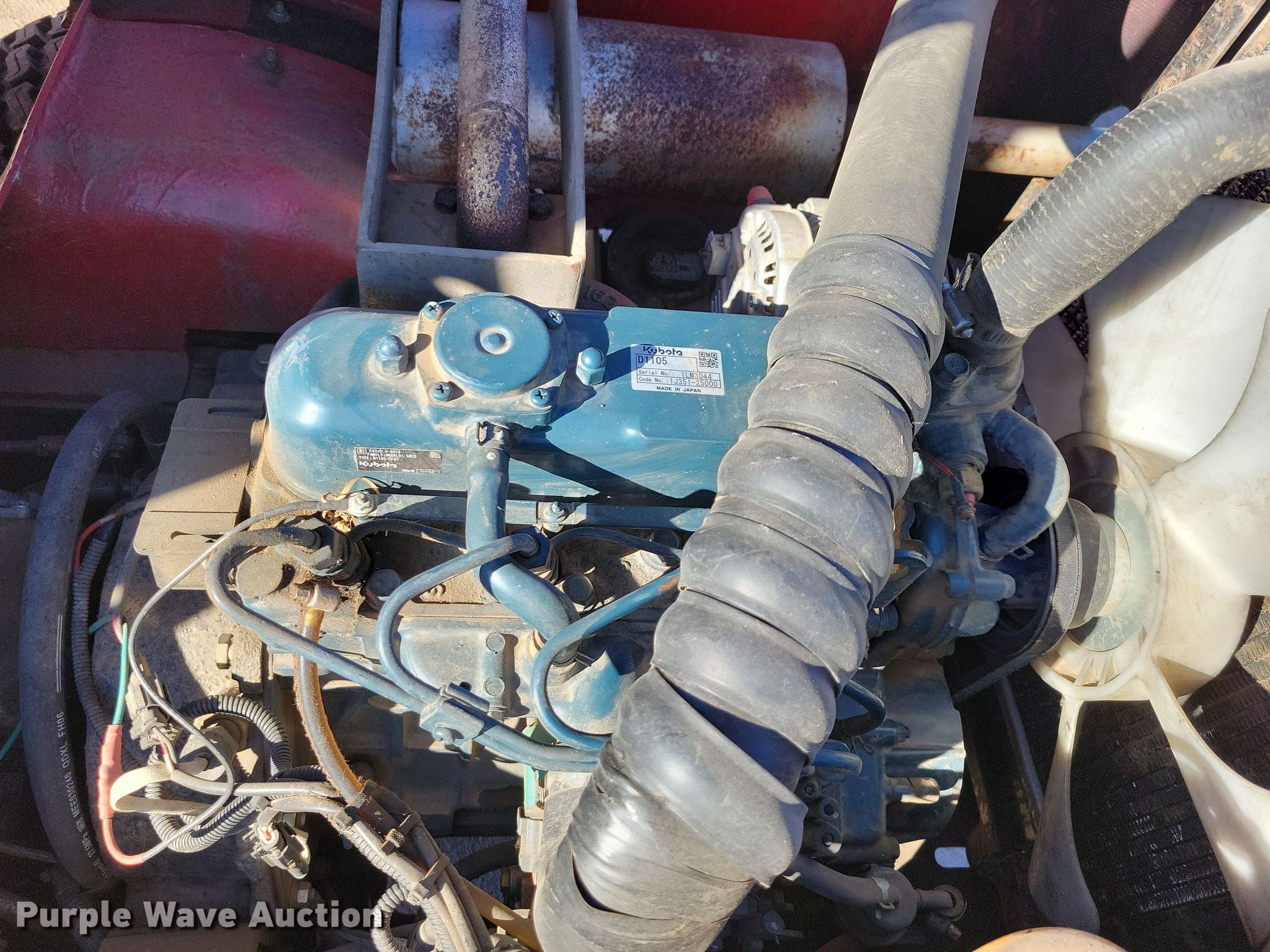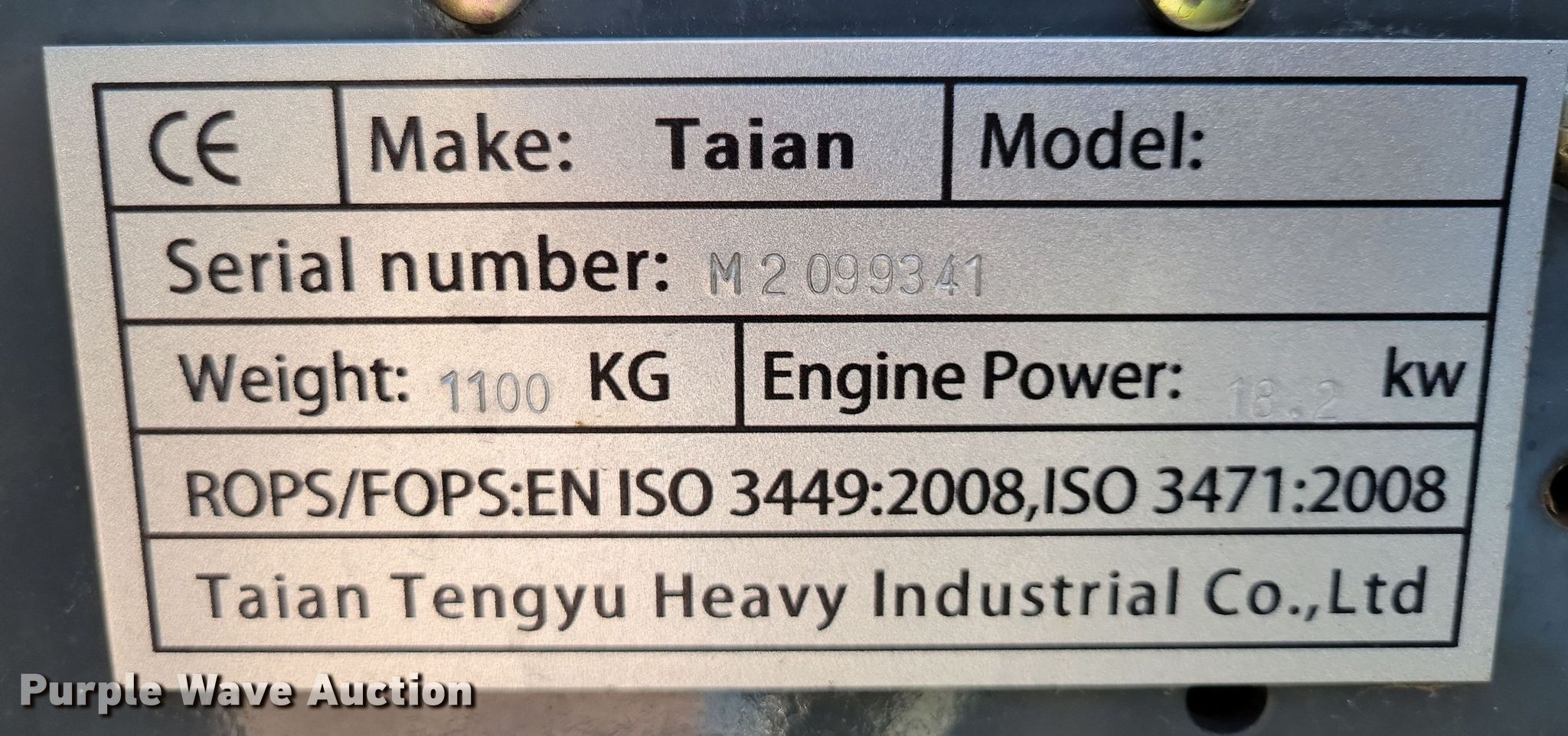 Taian DY620 compact wheel loader. Hours: 577 on meter, Serial: M2099341. Engine Kubota D1105, Displacement: 1.1L, Cylinders: 3, Fuel type: Diesel. Transmission Hydrostatic. Operators station Bucket control: Hand. Features Auxiliary hydraulics, Quick coupler: Manual, Counter weights, Bucket Width: 40", Teeth: Bolt-on. Tires Size: 23x8.50-12. Brandon, SD 57005