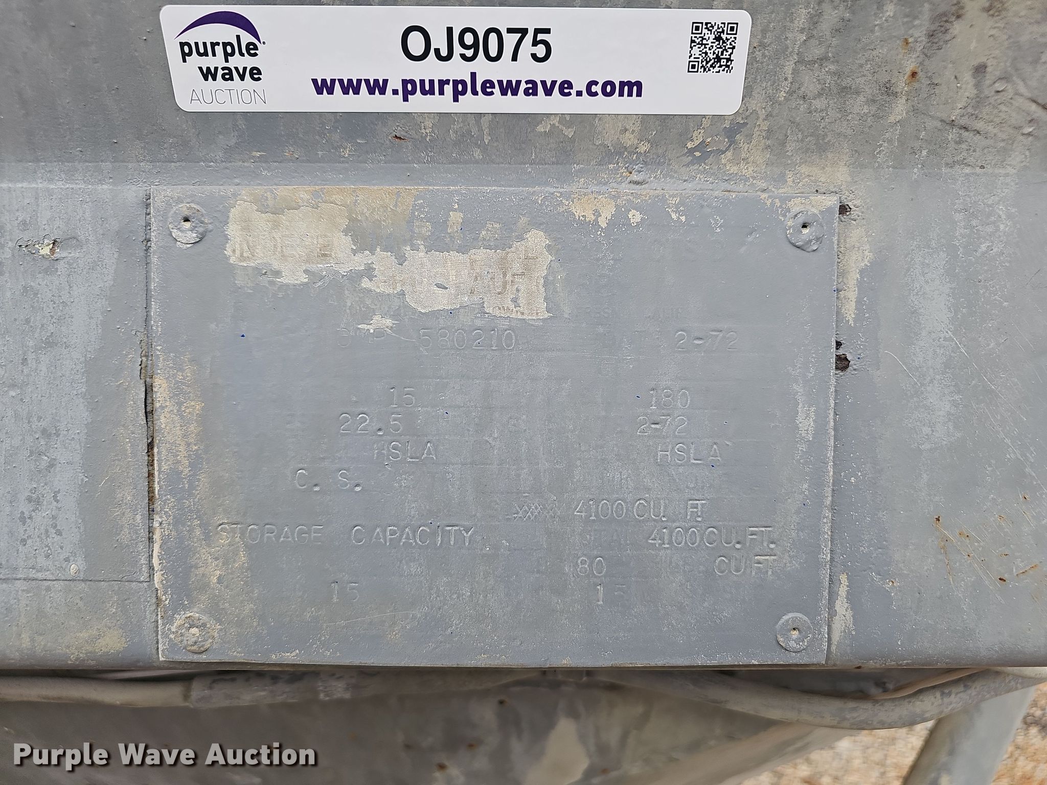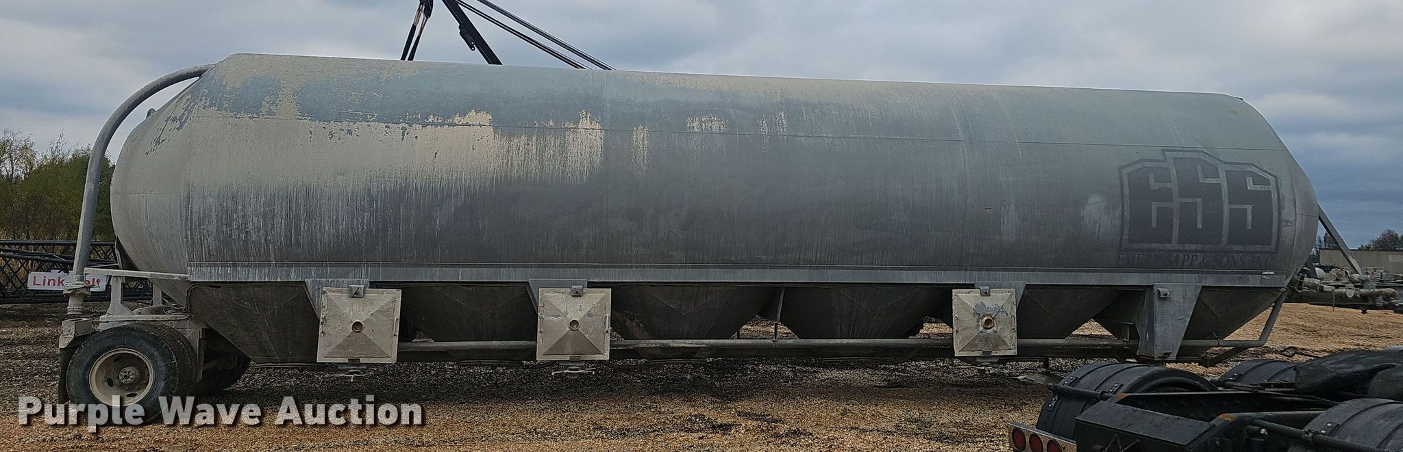 Pneumatic dry bulk trailer. Serial: OMP580210. Features Capacity: 4100 cu. ft. Tires Size: 10.00R20. Notes Motor not included. This is worksite support equipment and will not come with a title. Transfer of ownership documentation will be a bill of sale. Emery Sapp & Sons, Inc.. Springdale, AR 72764