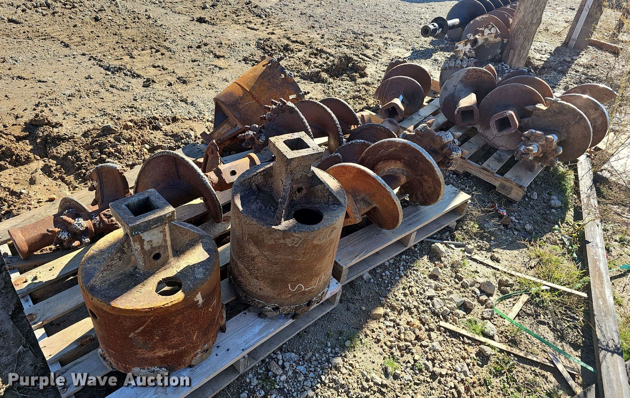 Purple Wave is selling a used Drill or Drilling Rig Attach. in Missouri. This item is a Rock auger bits with the following: (7) 18" rock bits, (3) 16" barrel rock bits, (2) 9" rock bits