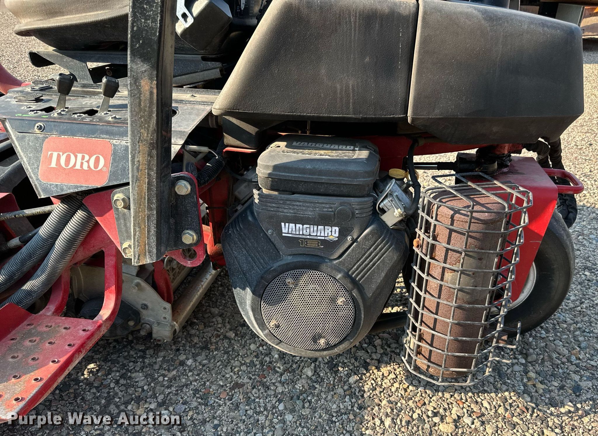 2009 Toro Greensmaster 3150 reel mower. Hours: 2,890 on meter, Cutting width: 60", Serial: 290000330. Engine Briggs & Stratton Vanguard, Cylinders: 2, Fuel type: Gas, HP: 18. Transmission Hydrostatic. Operators station OROPS. Features Hydraulic front deck lift. Tires Size: 18x9.5-8. Akron, NY 14001