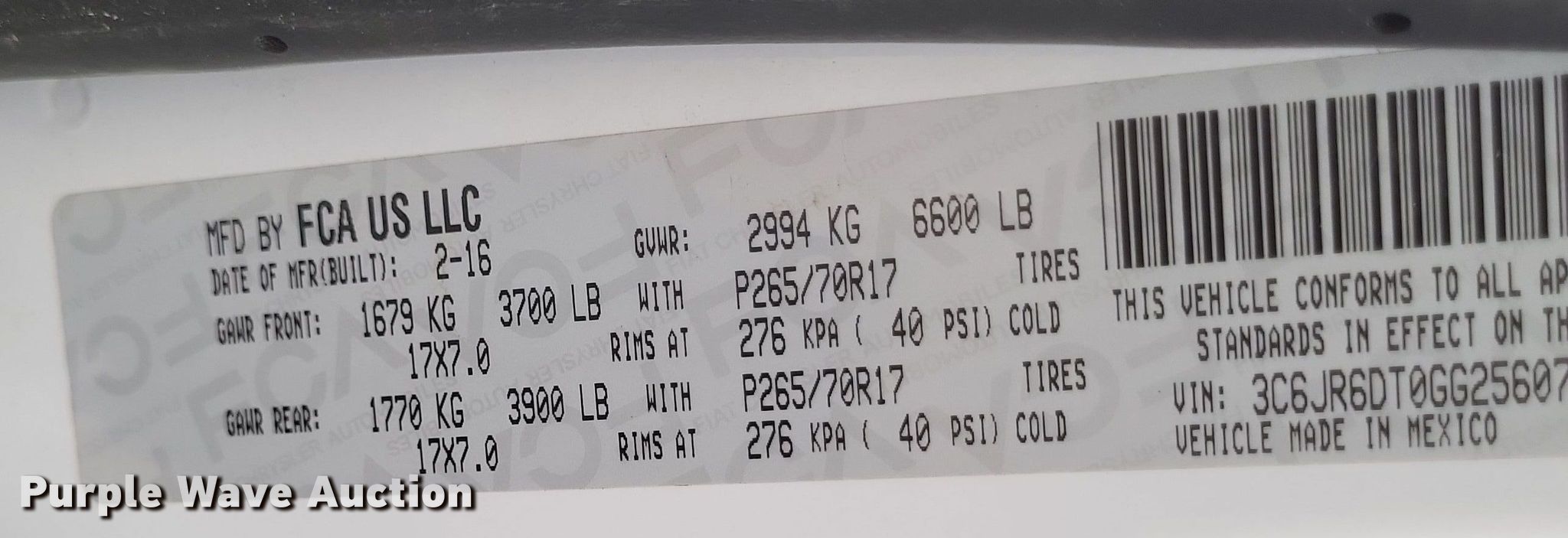 Purple Wave is selling a used 1/2 Ton Pickup or Van in Indiana. This item is a 2016 Dodge Ram 1500 pickup truck with the following: Miles: Unknown, VIN: 3C6JR6DT0GG256072, Unit #: T806