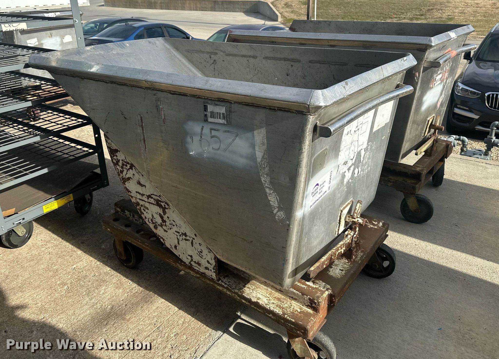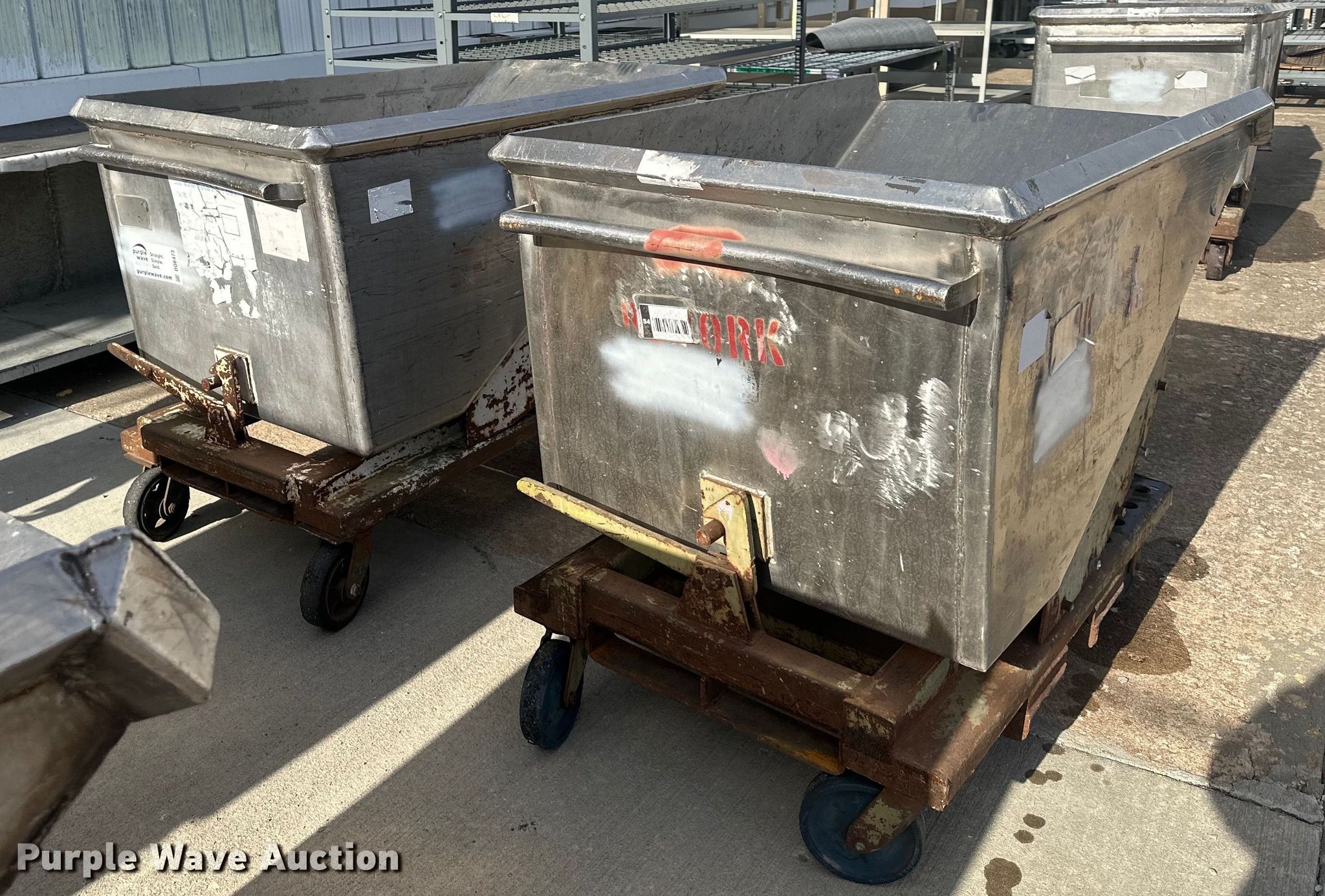 Purple Wave is selling a used Forklift Attach. in Kansas. This item is a (2) forklift dump hoppers with the following: 60" L x 36" W, Stainless steel