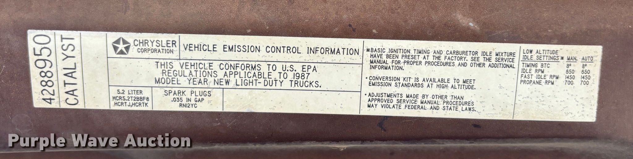 Purple Wave is selling a used 1/2 Ton Pickup or Van in Texas. This item is a 1987 Dodge Power Ram pickup truck with the following: Miles: 90,840 on odometer, VIN: 1B7HW04T4HS414419
