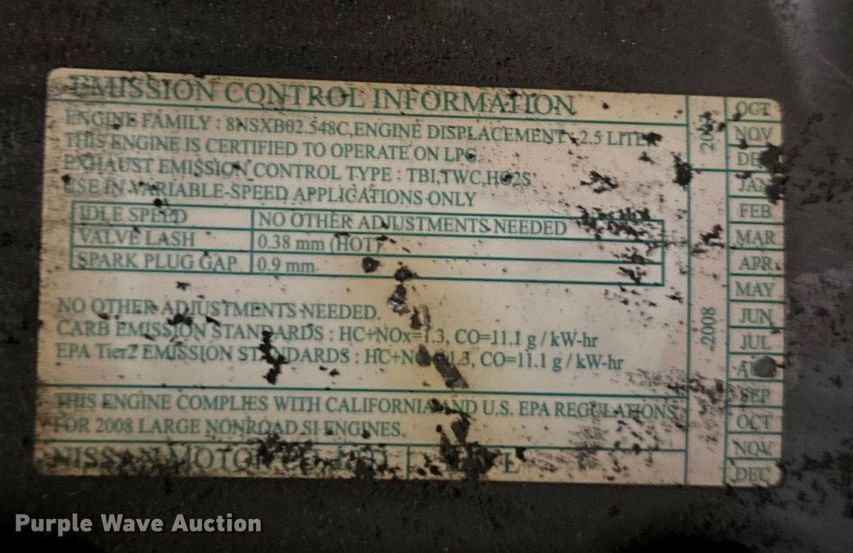 Caterpillar C6000 forklift. Hours: 14,023 on meter, Serial: AT83F20425. Engine Model: 8NSXB02.548C, Displacement: 2.5L, Cylinders: 4, Fuel type: LPG LP bottle: Not included. Transmission Powershift. Operators station OROPS. Features Maximum lift capacity: 5,750 lbs, Maximum lift height: 185", Mast stages: 3, Side shift, Mast tilt, Fork length: 42". Tires Front: 21x8x15, Rear: 16x6x10.5, Solid, Non-marking. BC & R Storage Company, Inc.. Lawrence, KS 66044