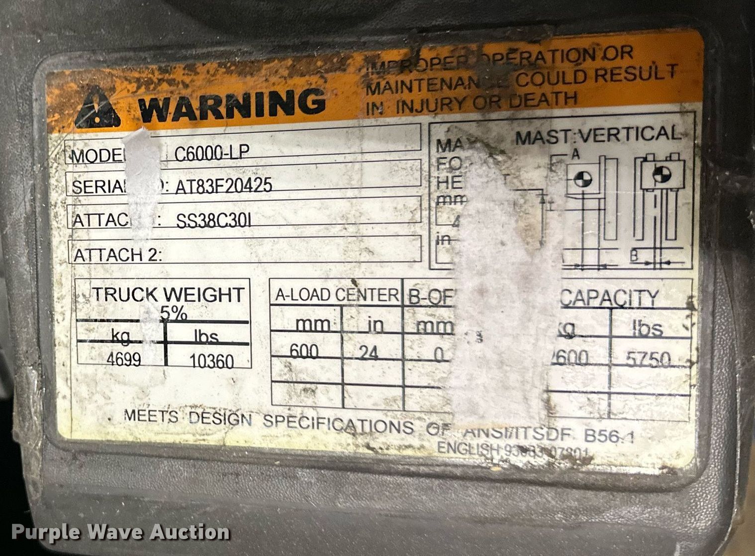 Purple Wave is selling a used Warehouse Forklift in Kansas. This item is a Caterpillar C6000 forklift with the following: Hours: 14,023 on meter, Serial: AT83F20425