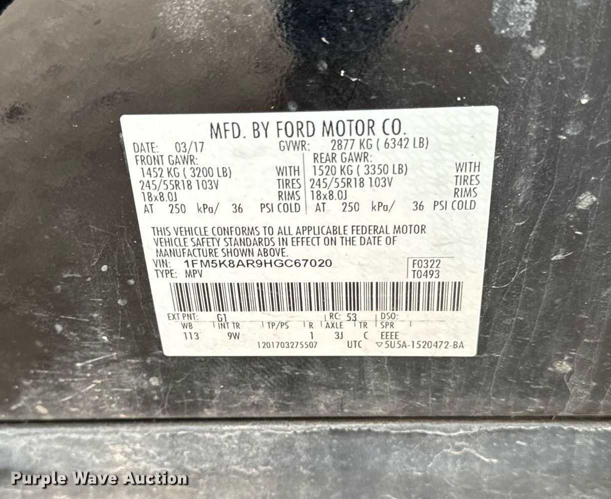 - VIN: 1FM5K8AR9HGC67020