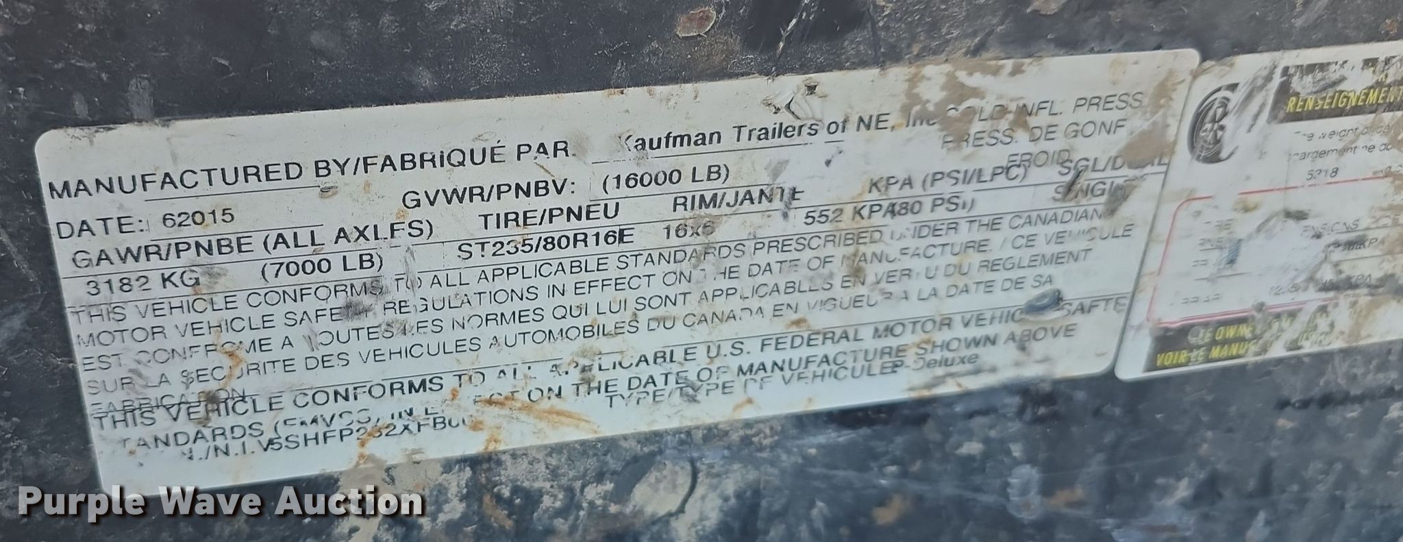 Purple Wave is selling a used Equip. Trailer in Nebraska. This item is a 2015 Kaufman equipment trailer with the following: VIN: 5SHFP232XFB001575