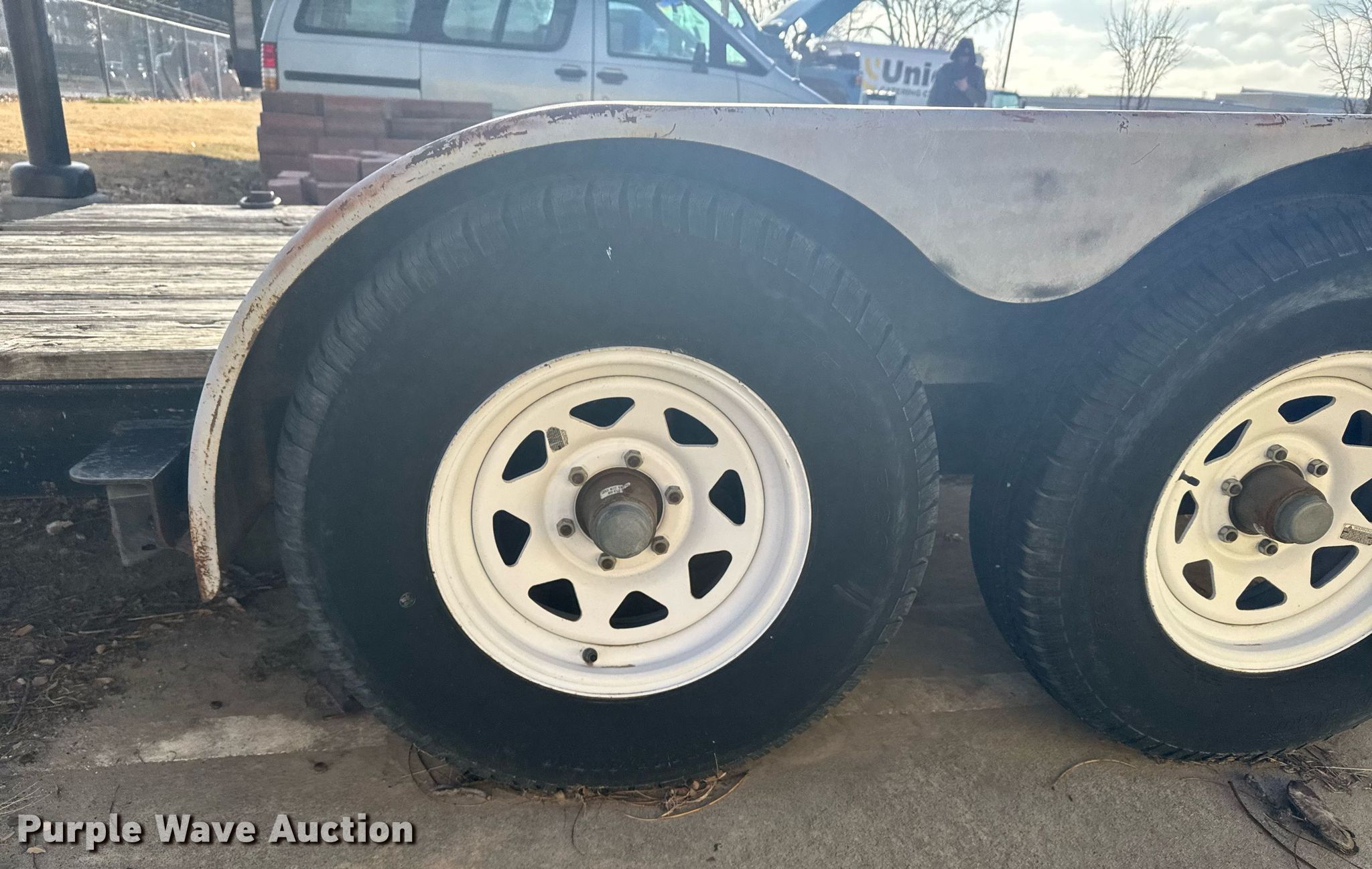 2001 Shop built utility trailer. VIN: KS121906. Dimensions Overall: 17' 7" L x 91" W, Deck: 13' 7" L x 77" W. Features Deck type: Wood. Chassis Ball hitch: 2", Landing gear: Single, Suspension: Spring, Axles: Tandem. Tires Steel wheels, Size: 235/89R16. Kansas title. Fort Hays State University - Construction Department. Hays, KS 67601