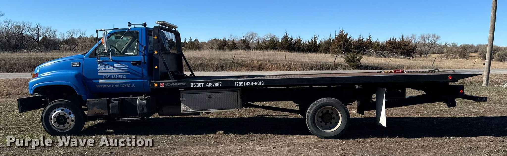 Purple Wave is selling a used Rollback or Tow Truck in Kansas. This item is a 1999 GMC C6500 rollback truck with the following: Miles: 309,908 on odometer, VIN: 1GDJ6H1C5XJ505932