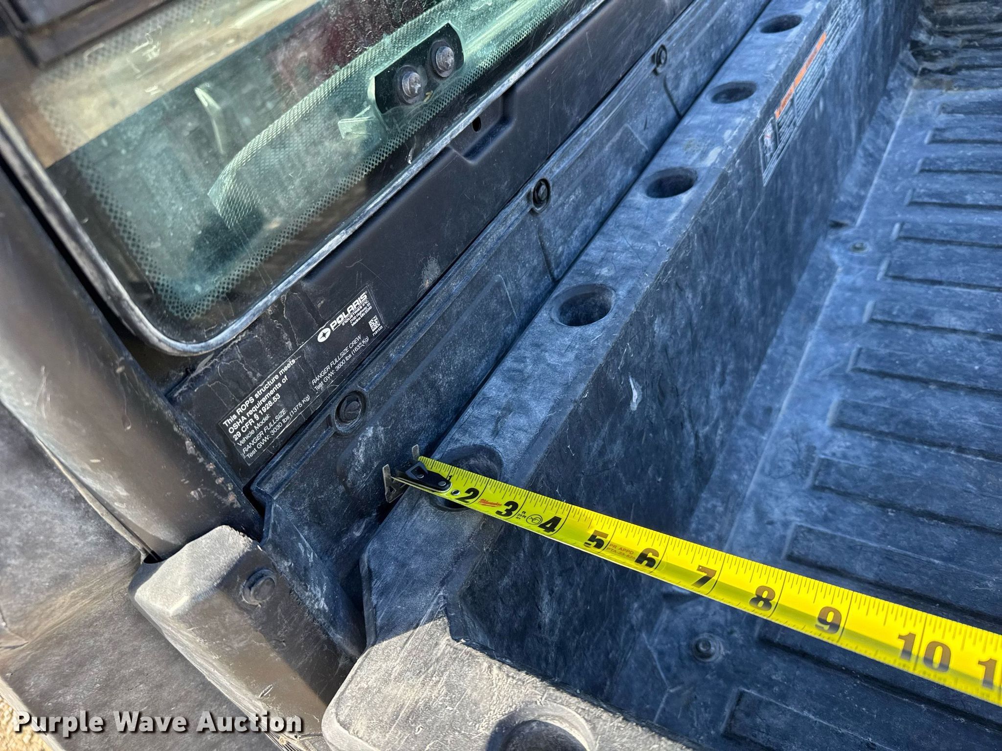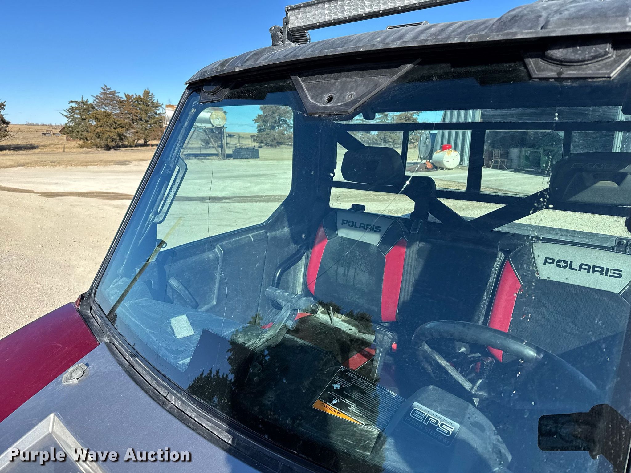 2015 Polaris Ranger XP EPS utility vehicle. Miles: 6,212 on odometer, Hours: 727 on meter, VIN: 4XARTE879FB317423. Engine Polaris, Cylinders: 2, Fuel type: Gas, Electric start. Transmission Automatic. Chassis Four wheel drive/ All wheel drive. Operators station Enclosed cab. Features Power windows, Receiver hitch, Dump bed 42" L x 59" W, Dump bed type: Manual. Tires Front: 26x9-12, Rear: 26x11.00-12. Notes Windshield chipped or cracked. Transfer of ownership documentation will be a bill of sale. L&N Farming LLC. Victoria, KS 67671