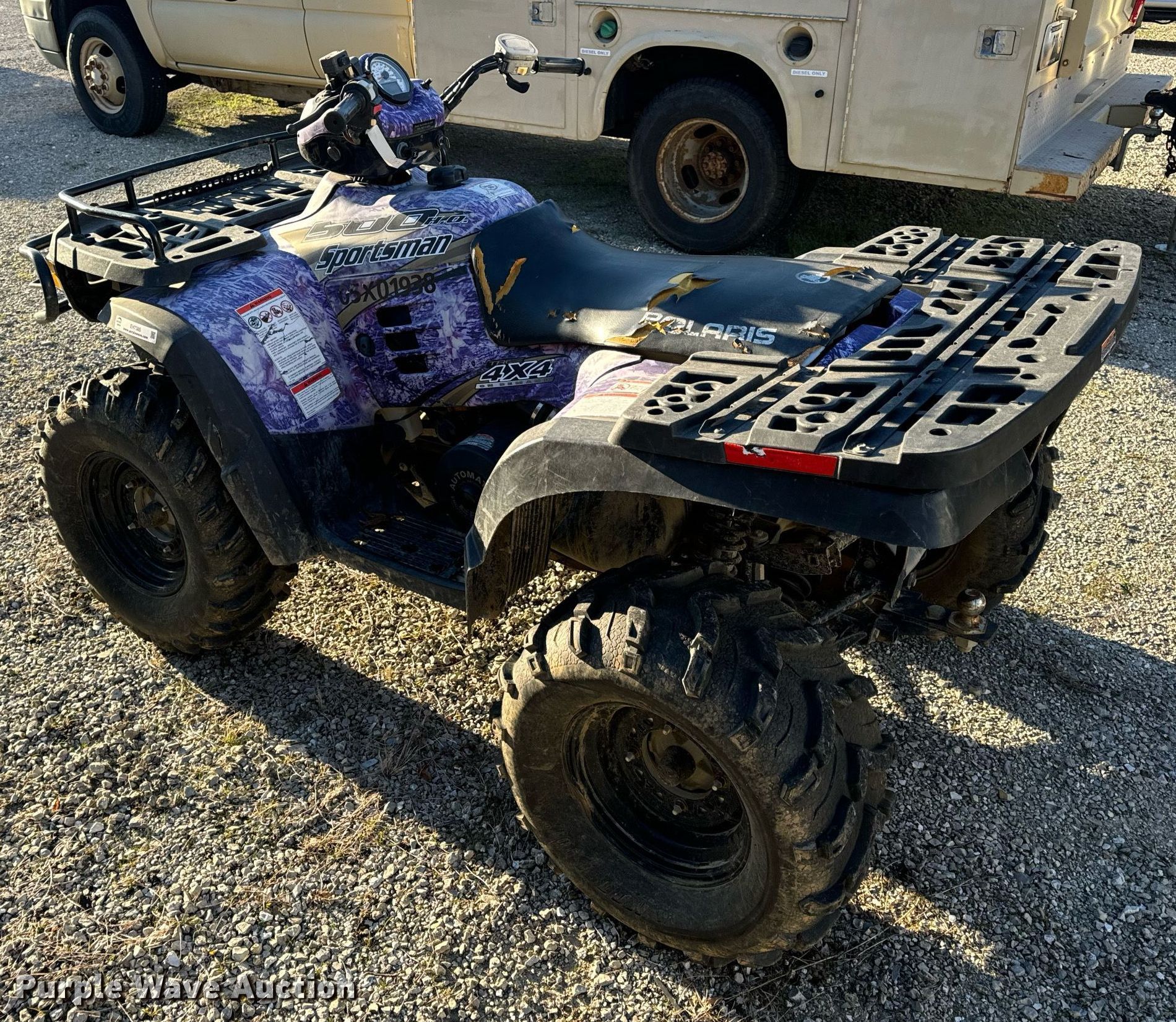 Purple Wave is selling a used ATV in Missouri. This item is a 2004 Polaris Sportsman 500 H.O. ATV with the following: Hours: 118 on meter, VIN: 4XACH50A24A052605
