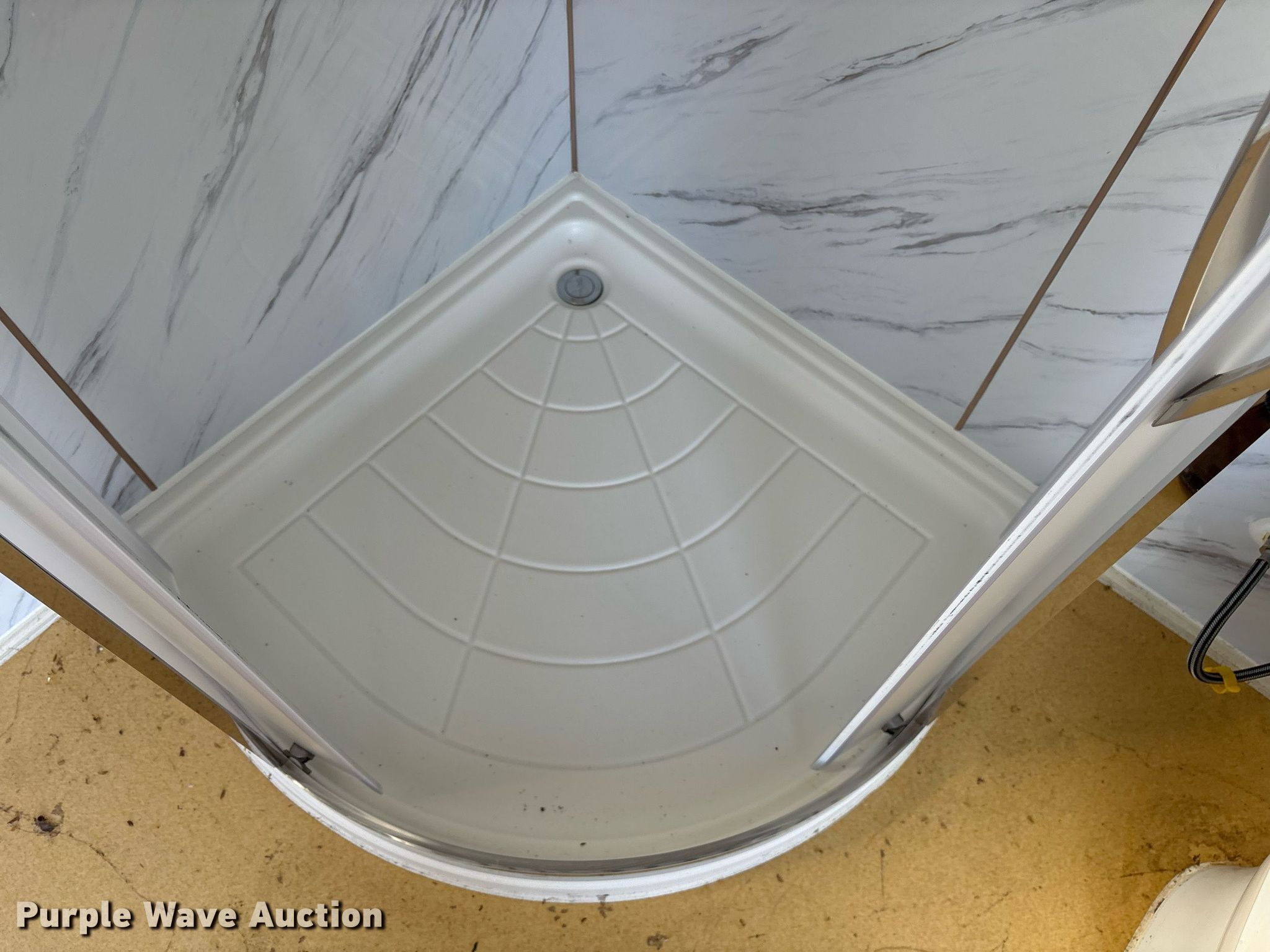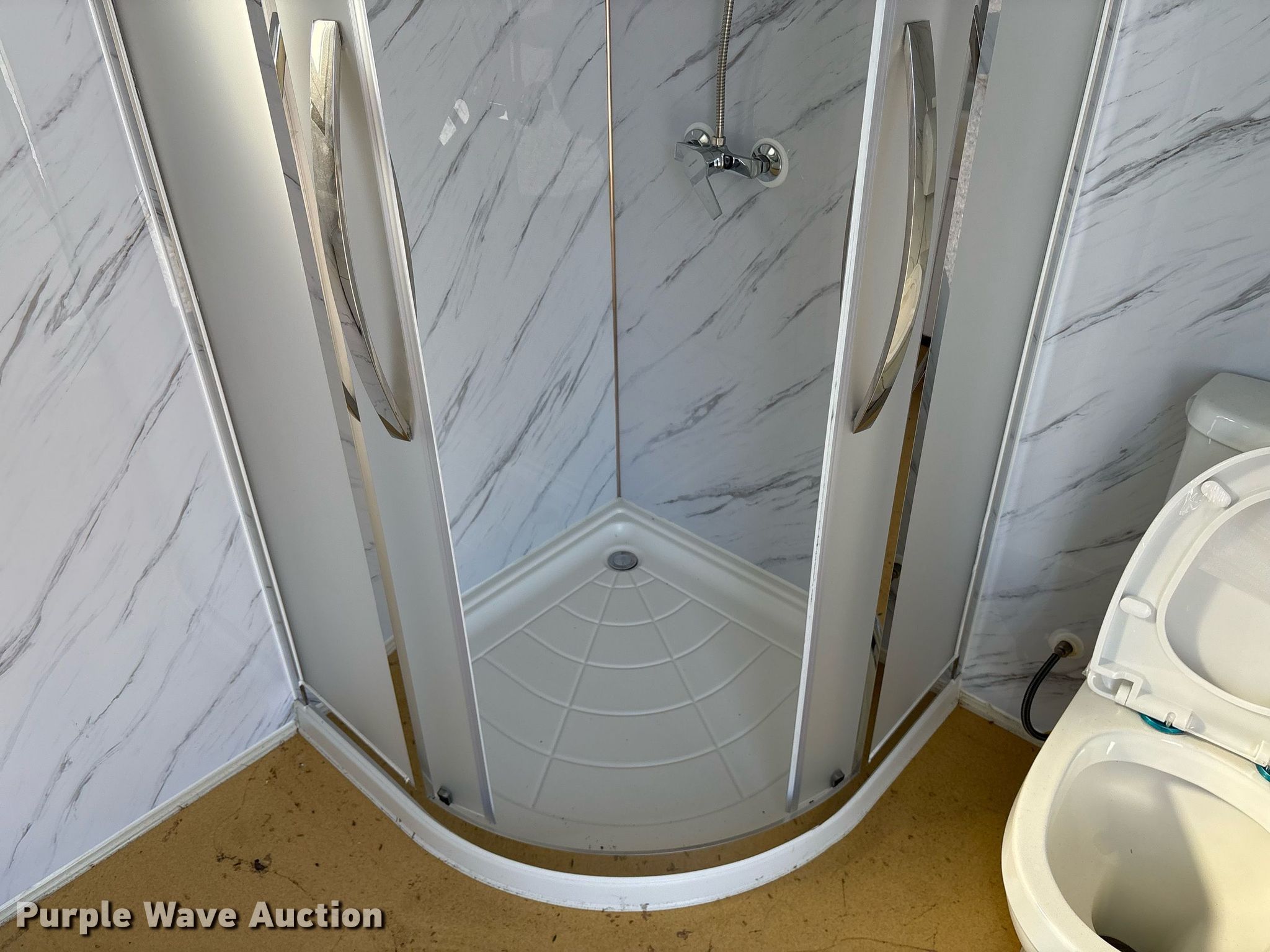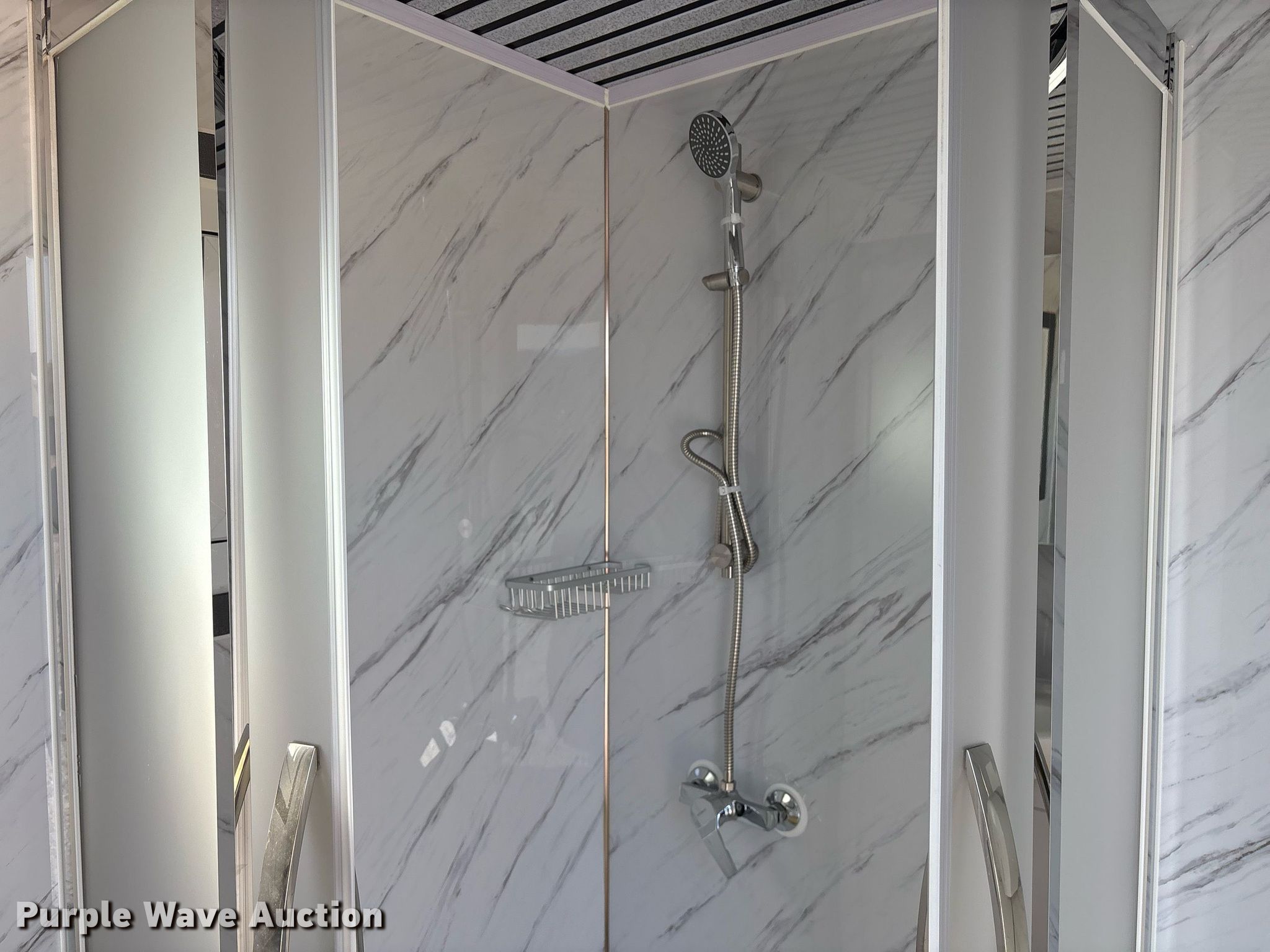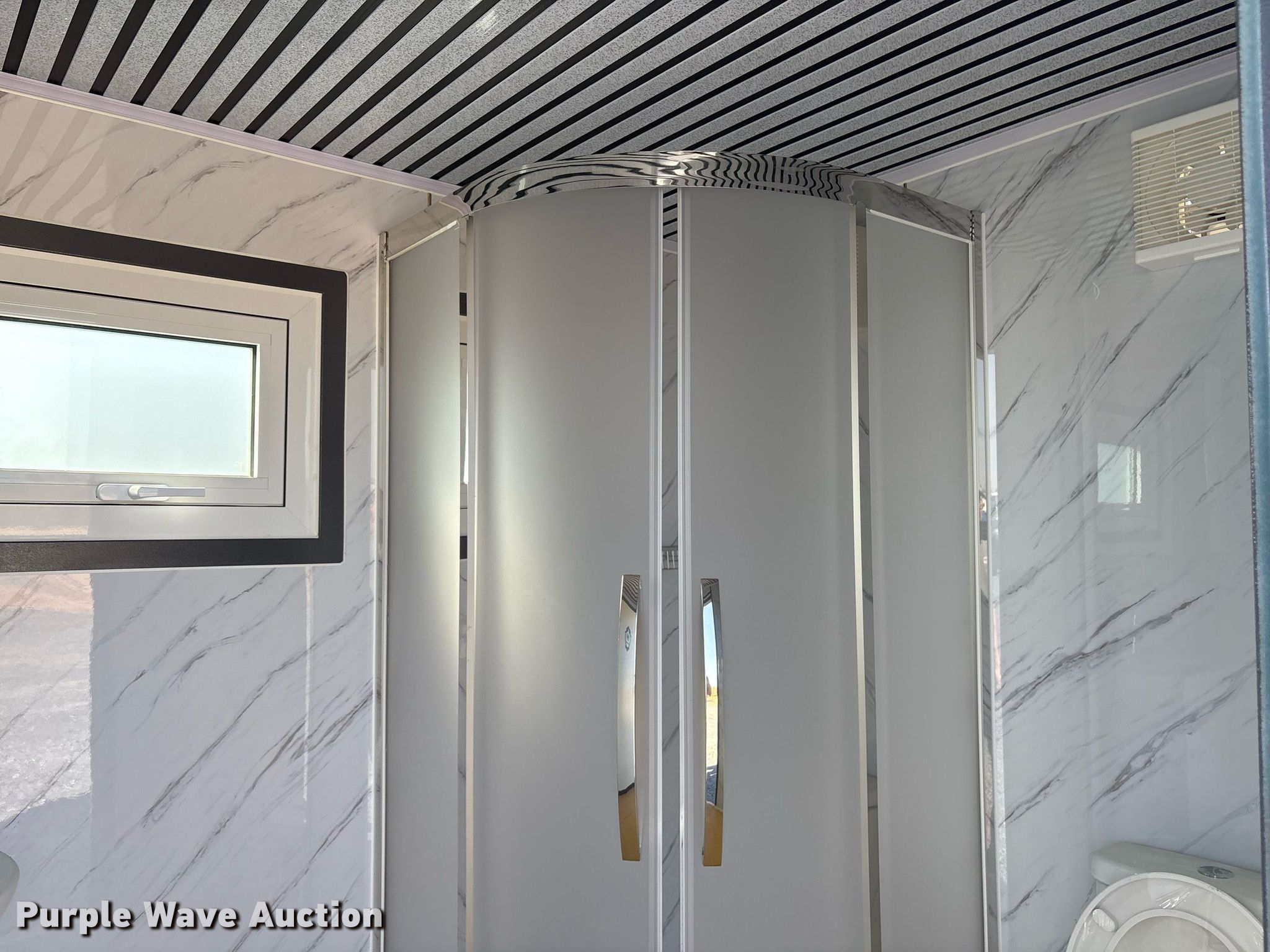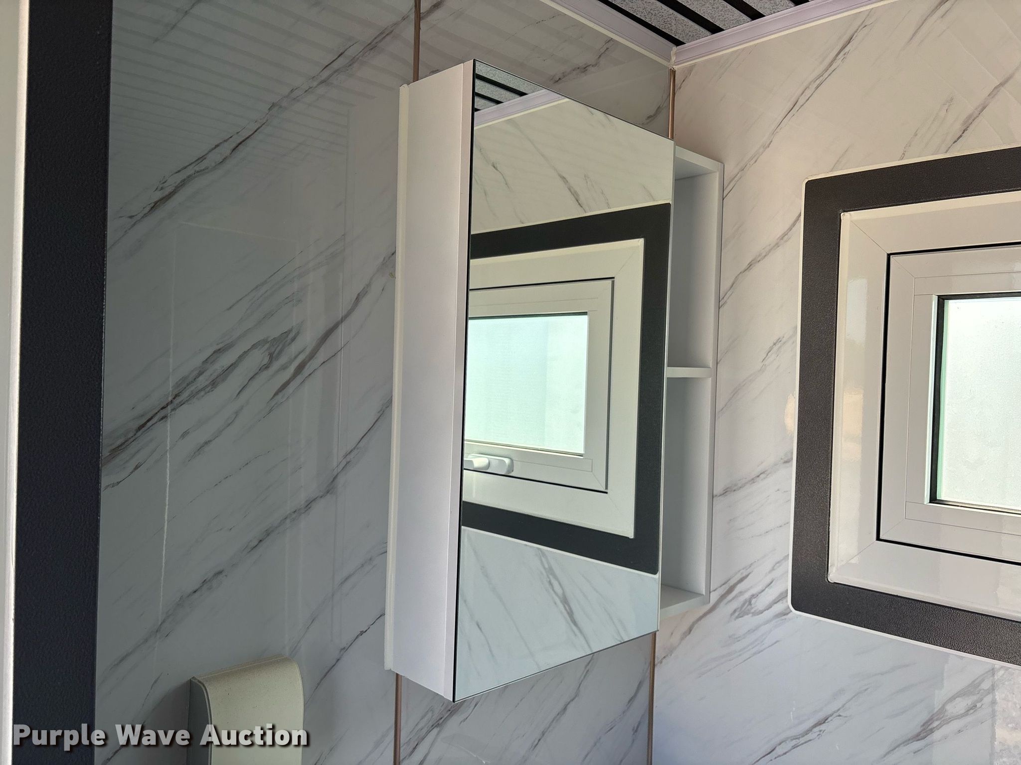 Purple Wave is selling a used Other Industrial or Business in Texas. This item is a Portable restroom with the following: Sink, Vanity mirror, Toilet, Exhaust fan, Shower