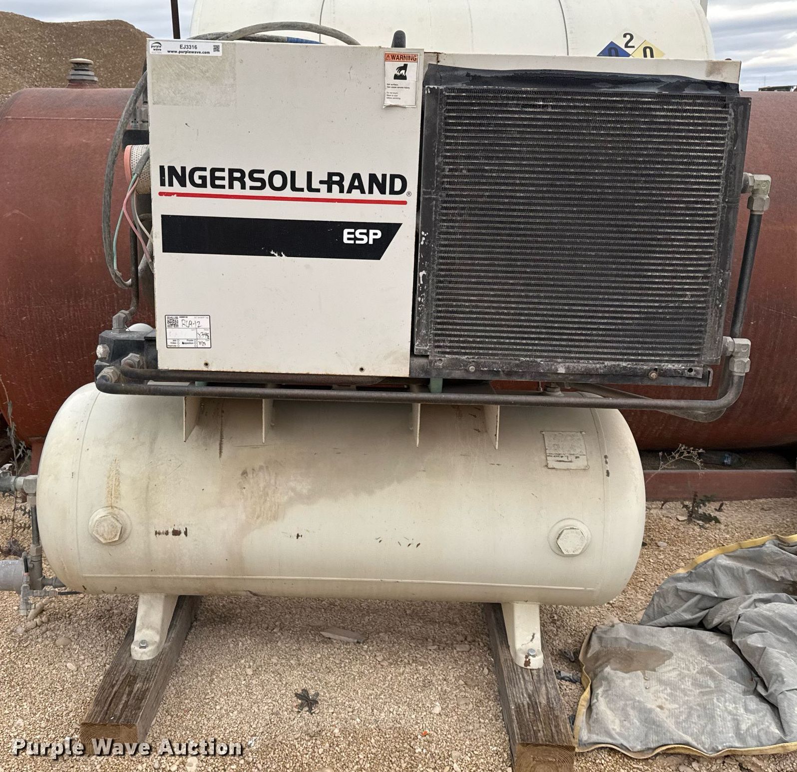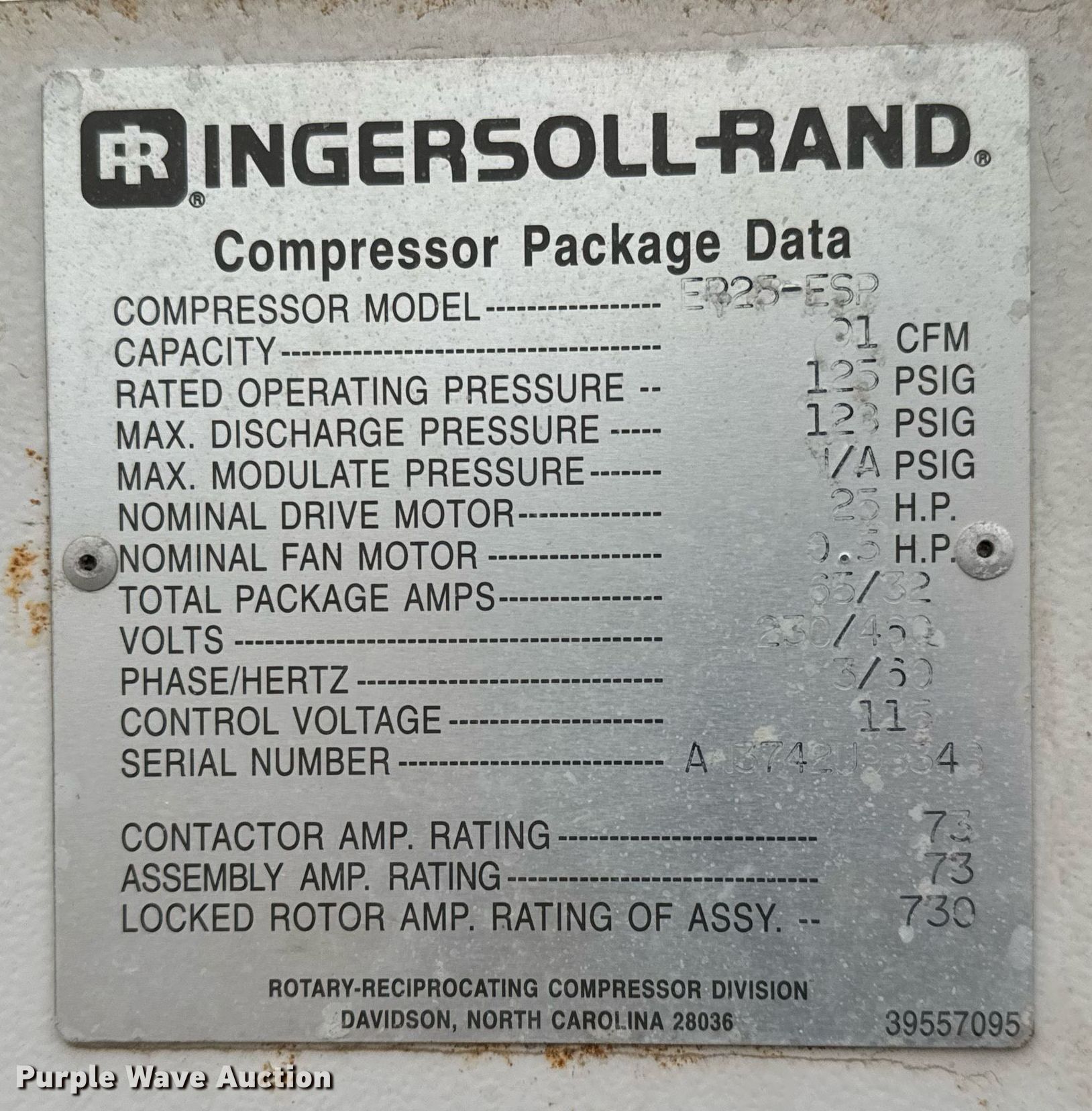 Purple Wave is selling a used Air Compressor in Texas. This item is a Ingersoll-Rand EP-25 air compressor with the following: Hours: 25,249 on meter