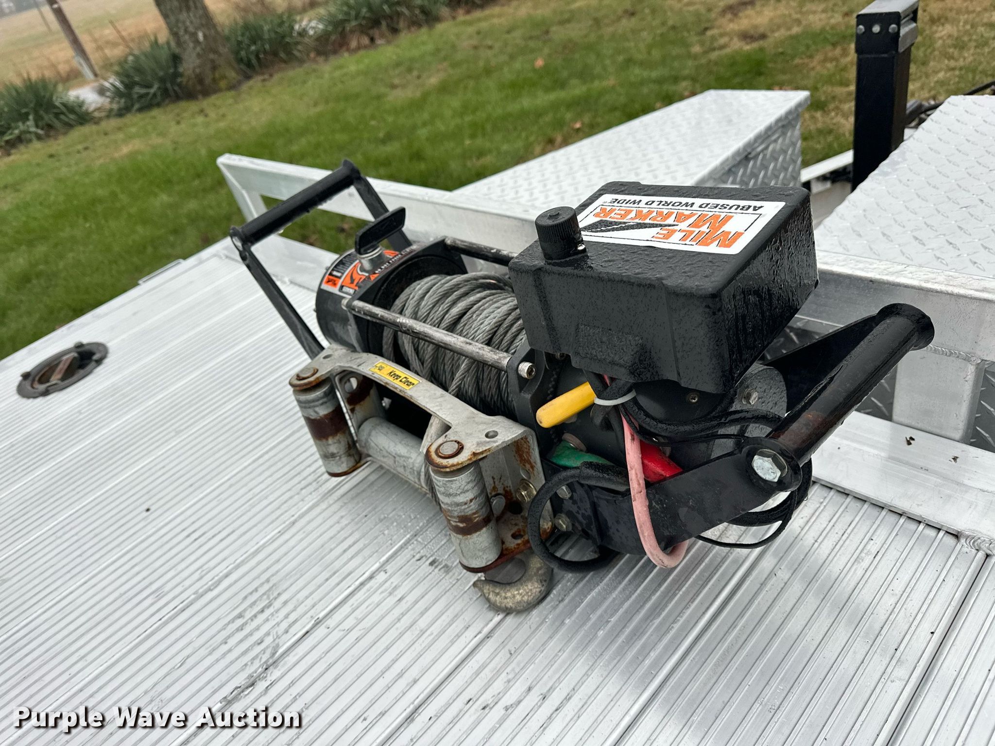 2019 H&H trailers H8222EXA-100 tilt deck equipment trailer. VIN: 5JWA32221KN520522. Dimensions Overall: 27' L x 102" W, Deck: 22' L x 82" W. Features Deck type: Aluminum, Winch Mile Marker SEC8. Chassis Ball hitch: 2 5/16", Landing gear: Single, Suspension: Spring, Brakes: Electric, Axles: Tandem, GVWR: 9,900 lbs, GAWR: 5,200 lbs. Tires Aluminum wheels, Size: ST225/75R15. Arkansas title. Title distribution may be delayed up to 14 days from verification of funds. R. L. Sooter Transport. Berryville, AR 72616