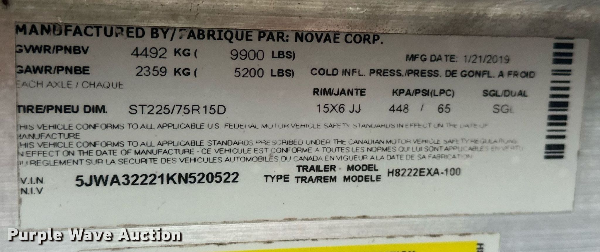 Purple Wave is selling a used Equip. Trailer in Arkansas. This item is a 2019 H&H trailers H8222EXA-100 tilt deck equipment trailer with the following: VIN: 5JWA32221KN520522