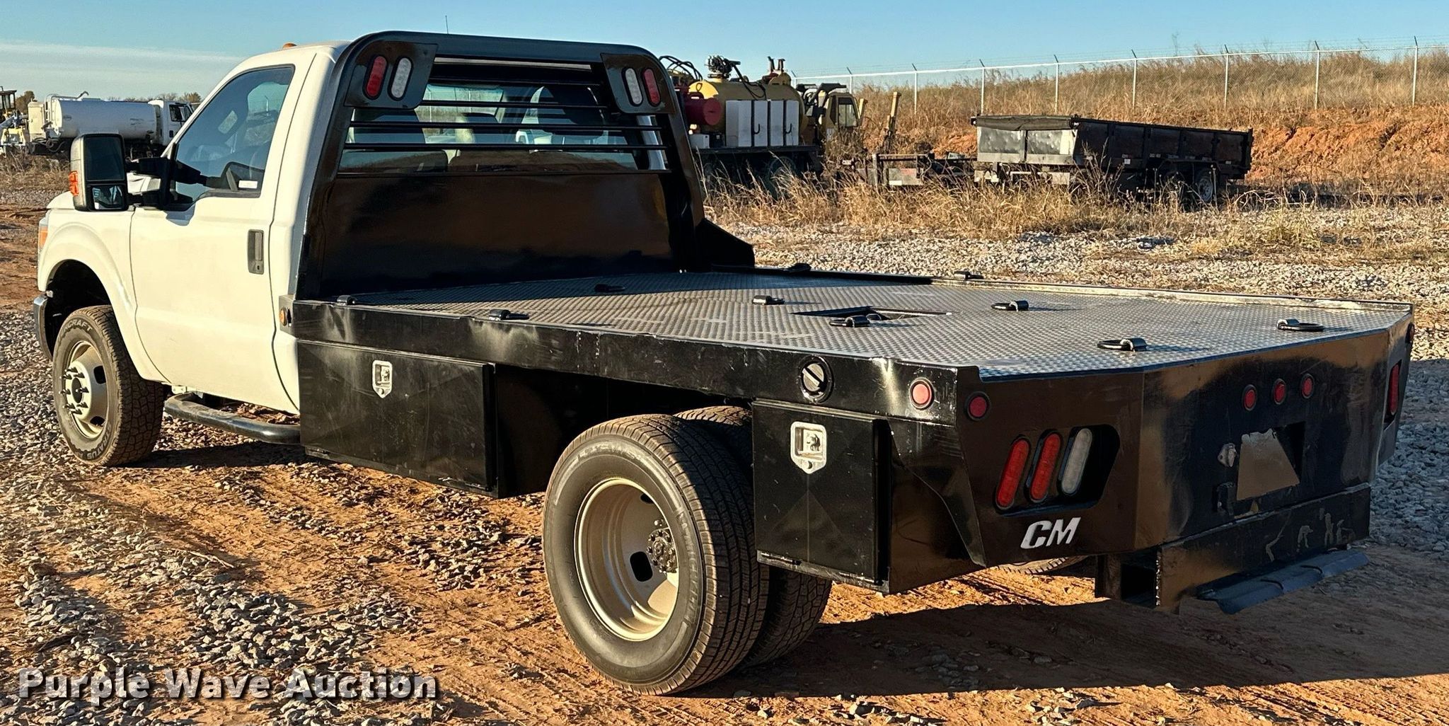 2016 Ford F350 Super Duty flatbed pickup truck. Miles: 206,188 on odometer, VIN: 1FDRF3H63GEB33490. Engine Displacement: 6.2L V8 OHV, Cylinders: 8, Fuel type: Gas. Transmission Automatic, Four wheel drive. Interior AC, Heat, Heated mirrors, Power windows, Power locks, Cruise control. Features Flatbed CM, 11' 4" L x 92" W, Hitch: Gooseneck. Tires Size: LT245/75R17. Notes Dash warning indicator: Check engine. Oklahoma title. Title distribution may be delayed up to 30 days from verification of funds. Norman, OK 73072