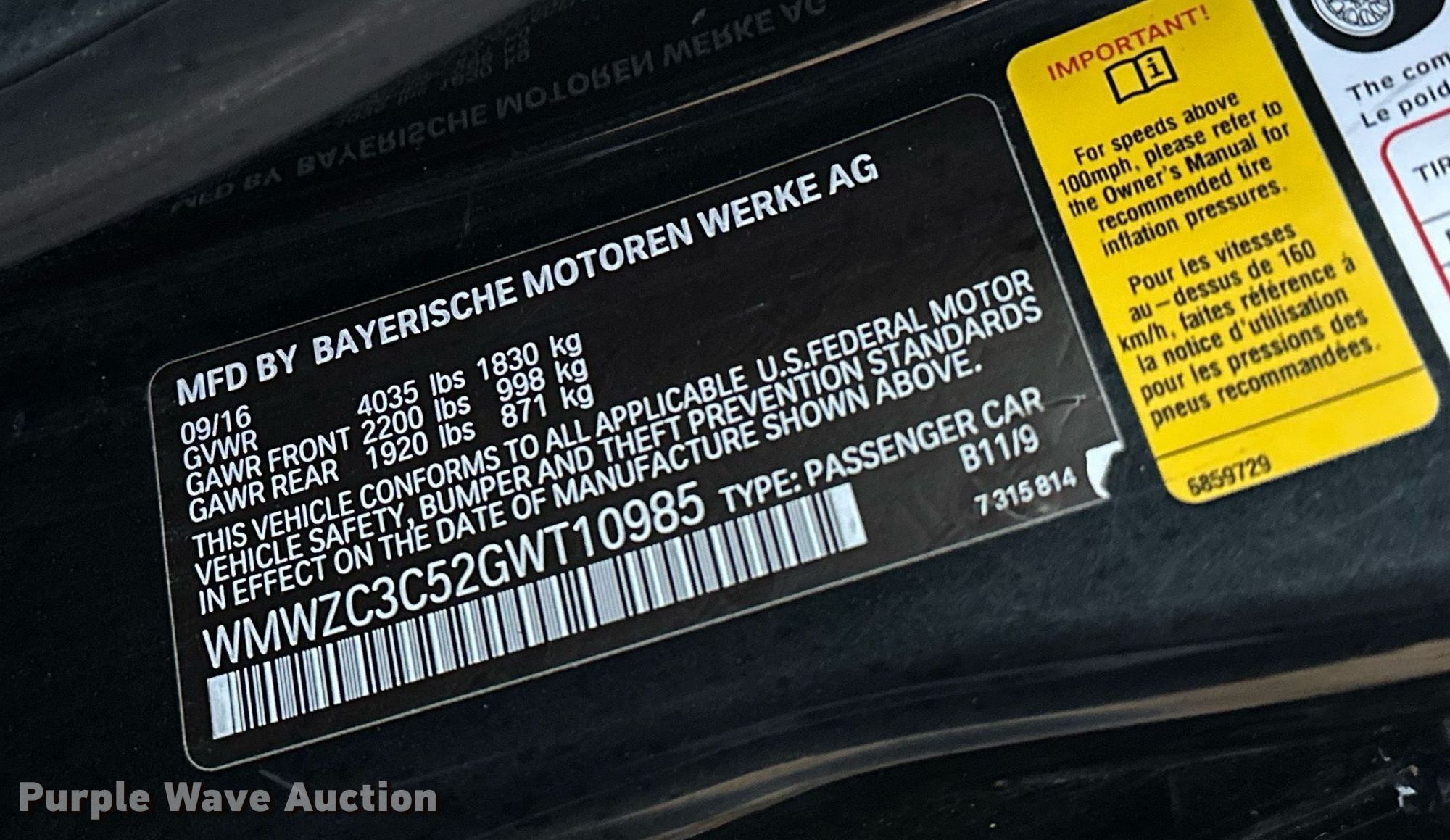 - VIN: WMWZC3C52GWT10985