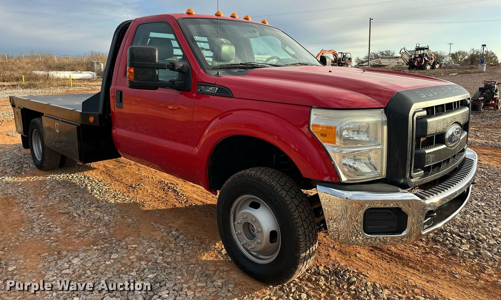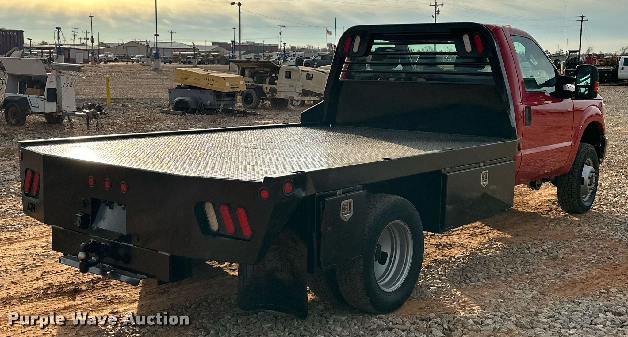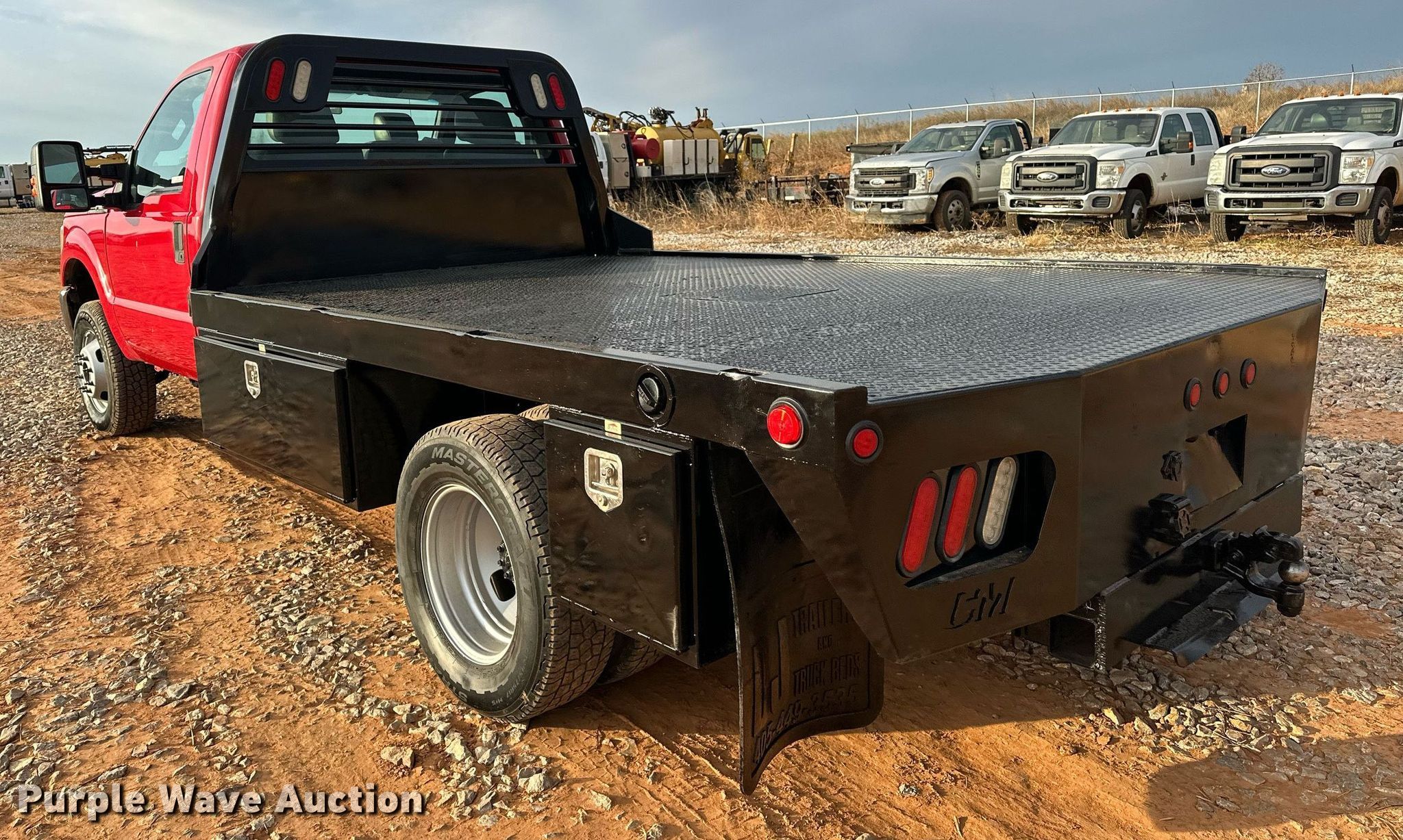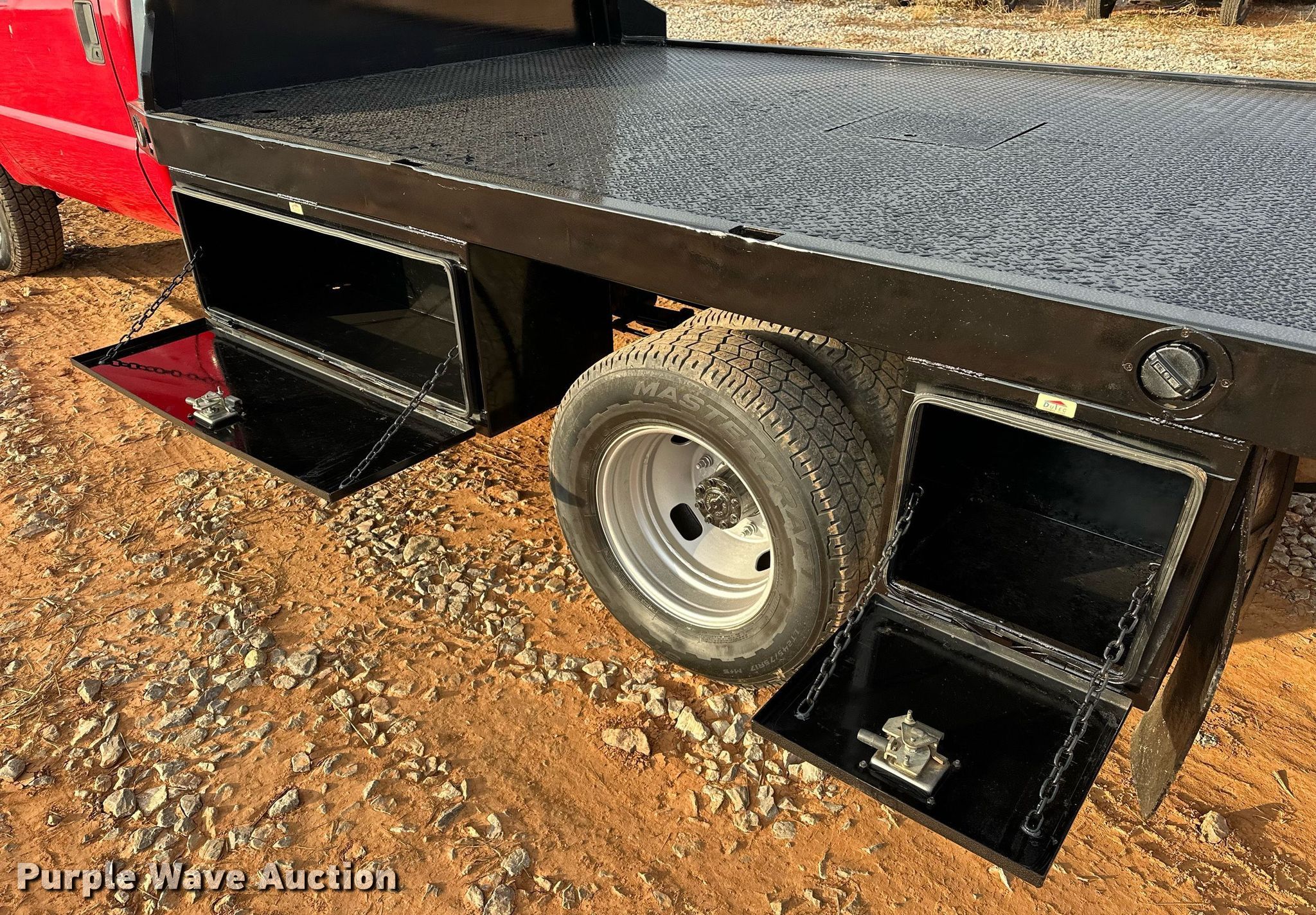 2015 Ford F350 Super Duty flatbed pickup truck. Miles: 176,228 on odometer, VIN: 1FDRF3H6XFED06565. Engine Displacement: 6.2L V8 OHV, Cylinders: 8, Fuel type: Gas. Transmission Automatic, Four wheel drive. Interior AC, Heat, Heated mirrors, Power windows, Power locks, Cruise control. Features Flatbed CM, 11' 4" L x 92" W, Hitch: Gooseneck. Tires Size: 245/75R17. Notes Dash warning indicator: Check engine, Airbag. Oklahoma title. Title distribution may be delayed up to 14 days from verification of funds. Norman, OK 73072