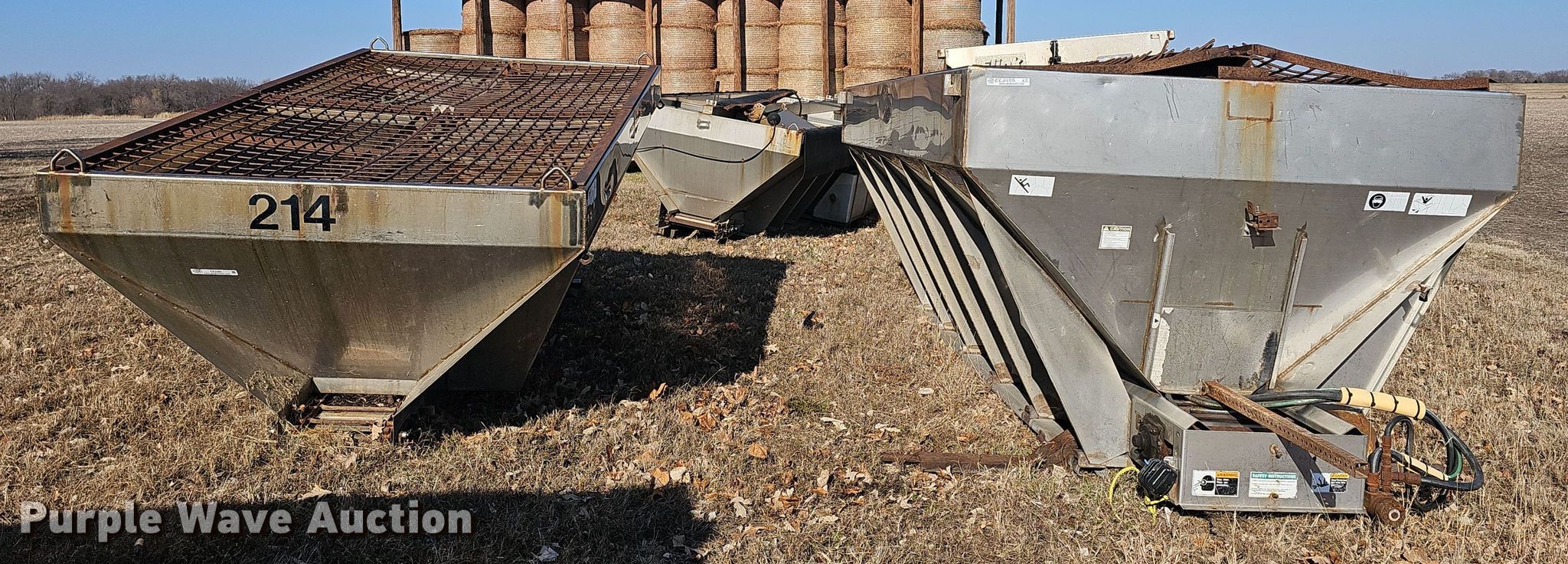 Purple Wave is selling a used Truck Part and Attach. in Kansas. This item is a (2) Swenson spreaders with the following: 11' x 80" x 64", 10' x 70" x 42"