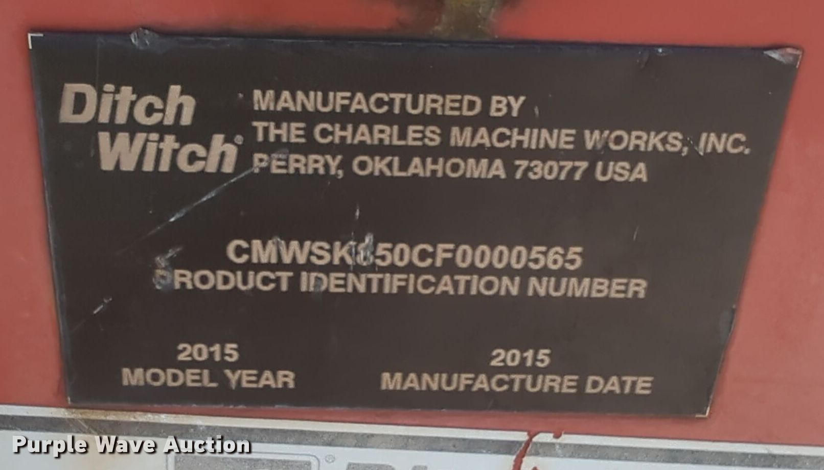 2015 Ditch Witch SK850 compact utility loader. An erroneous bid was placed in the last moments of bidding on this asset in our December 19 auction. At Purple Wave's discretion this asset has been moved here to allow a natural conclusion to the bidding. Serial: CMWSK850CF0000565. Engine Cylinders: 3, Fuel type: Diesel. Transmission Hydrostatic. Operators station Bucket control: Hand. Features Auxiliary hydraulics. Tracks Width: 8". Notes Unit starts, but does not move , Unknown operating condition. Vermeer Great Plains. Oklahoma City, OK 73131