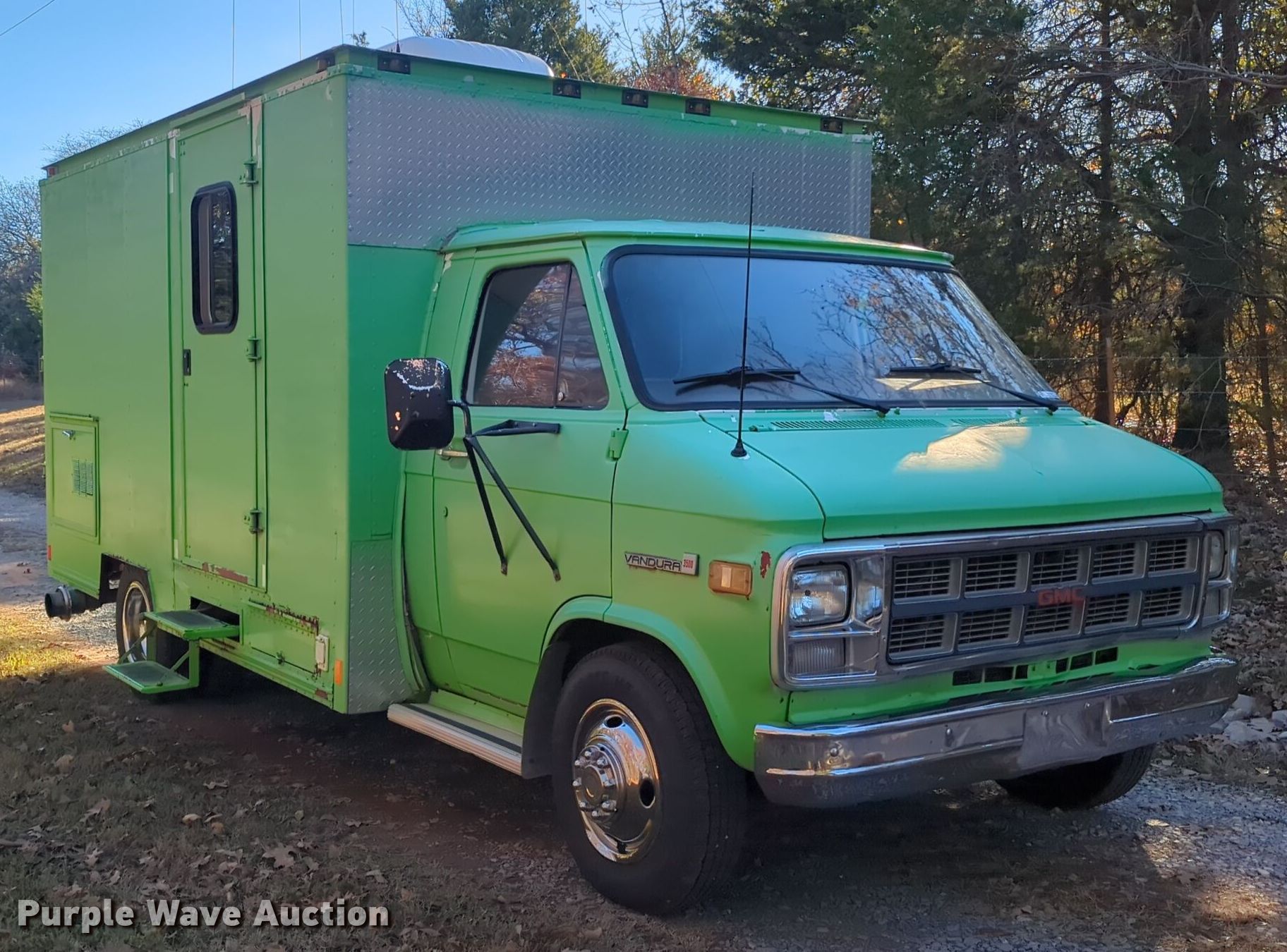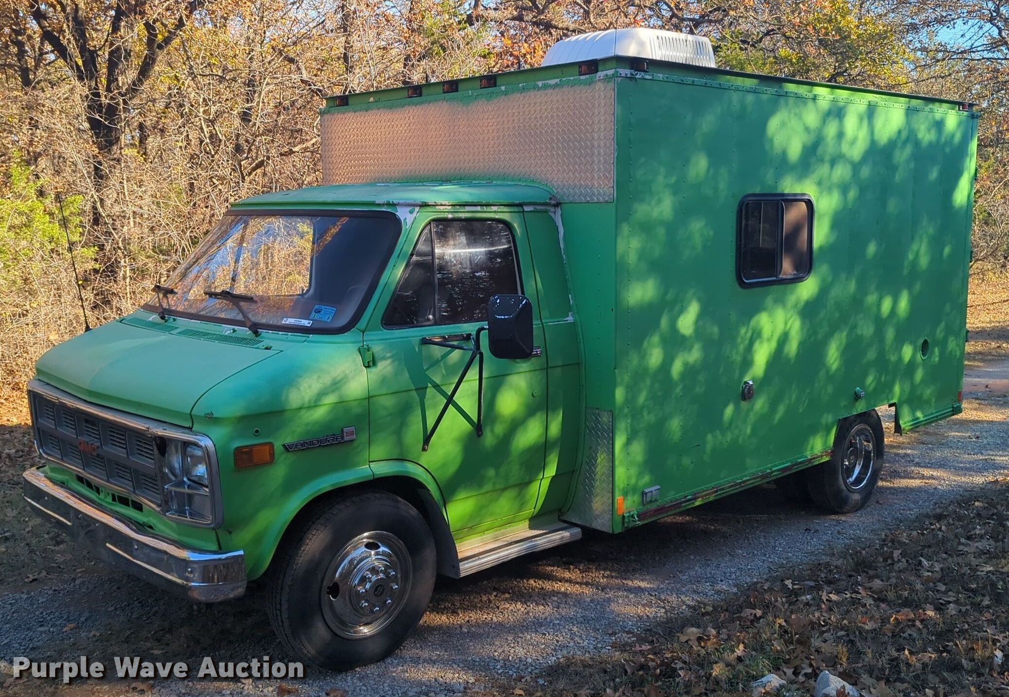 Purple Wave is selling a used Box Truck in Oklahoma. This item is a 1979 GMC Vandura 3500 mobile command center van with the following: Miles: 33,959 on odometer, Actual mileage unknown, VIN: TGR3290500781