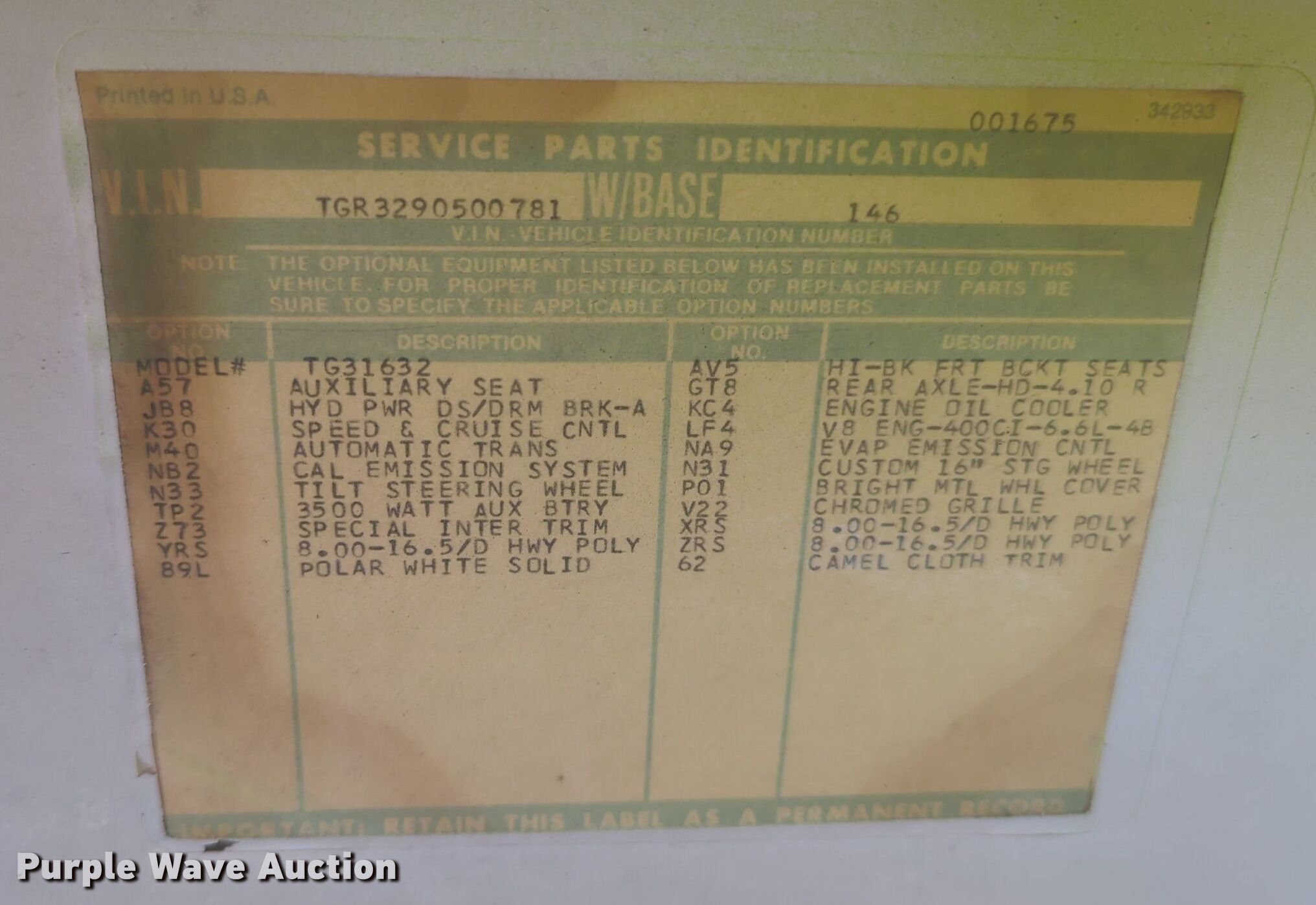 1979 GMC Vandura 3500 mobile command center van. Miles: 33,959 on odometer Actual mileage unknown, VIN: TGR3290500781. Engine Cylinders: 8, Fuel type: Gas. Transmission Automatic. Interior AC, Heat. Features Box bed 13' L x 96" W. Tires Size: 8.75R16.5LT. Oklahoma classic title. Mileage has not been verified. Exempt will be written in the odometer disclosure on the title. Title distribution may be delayed up to 30 days from verification of funds. TS Ranch. Luther, OK 73053