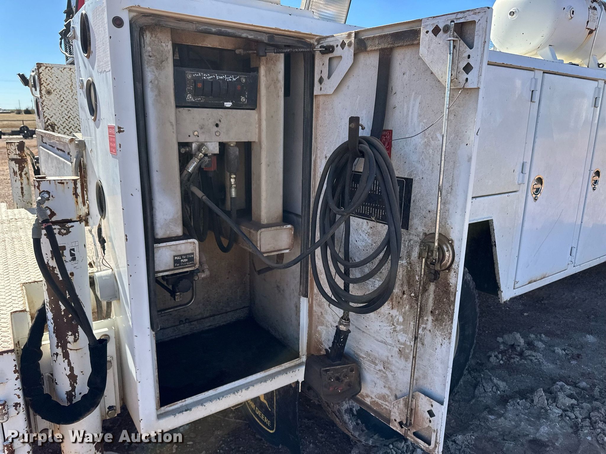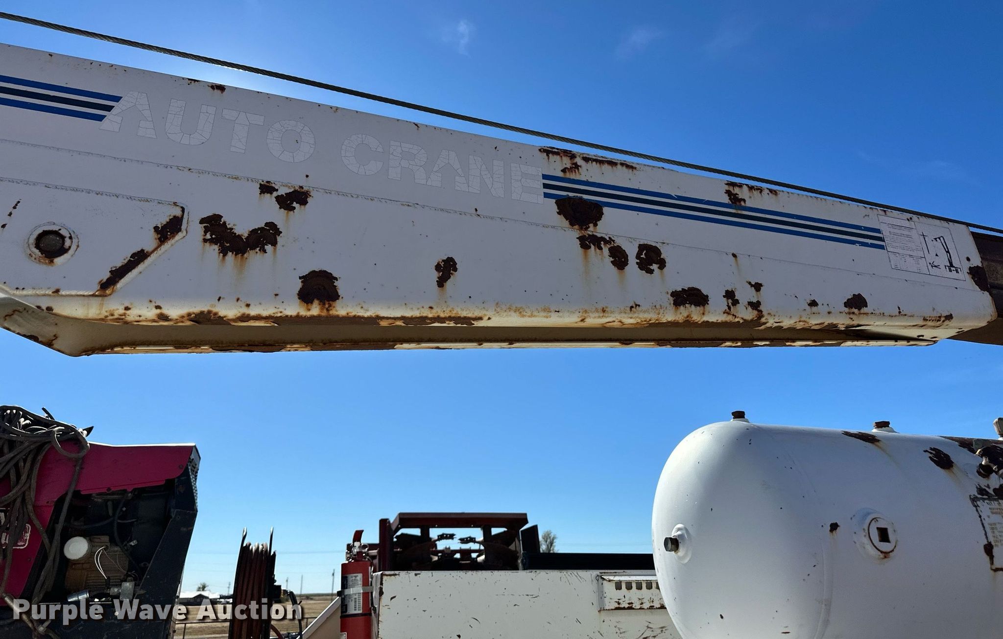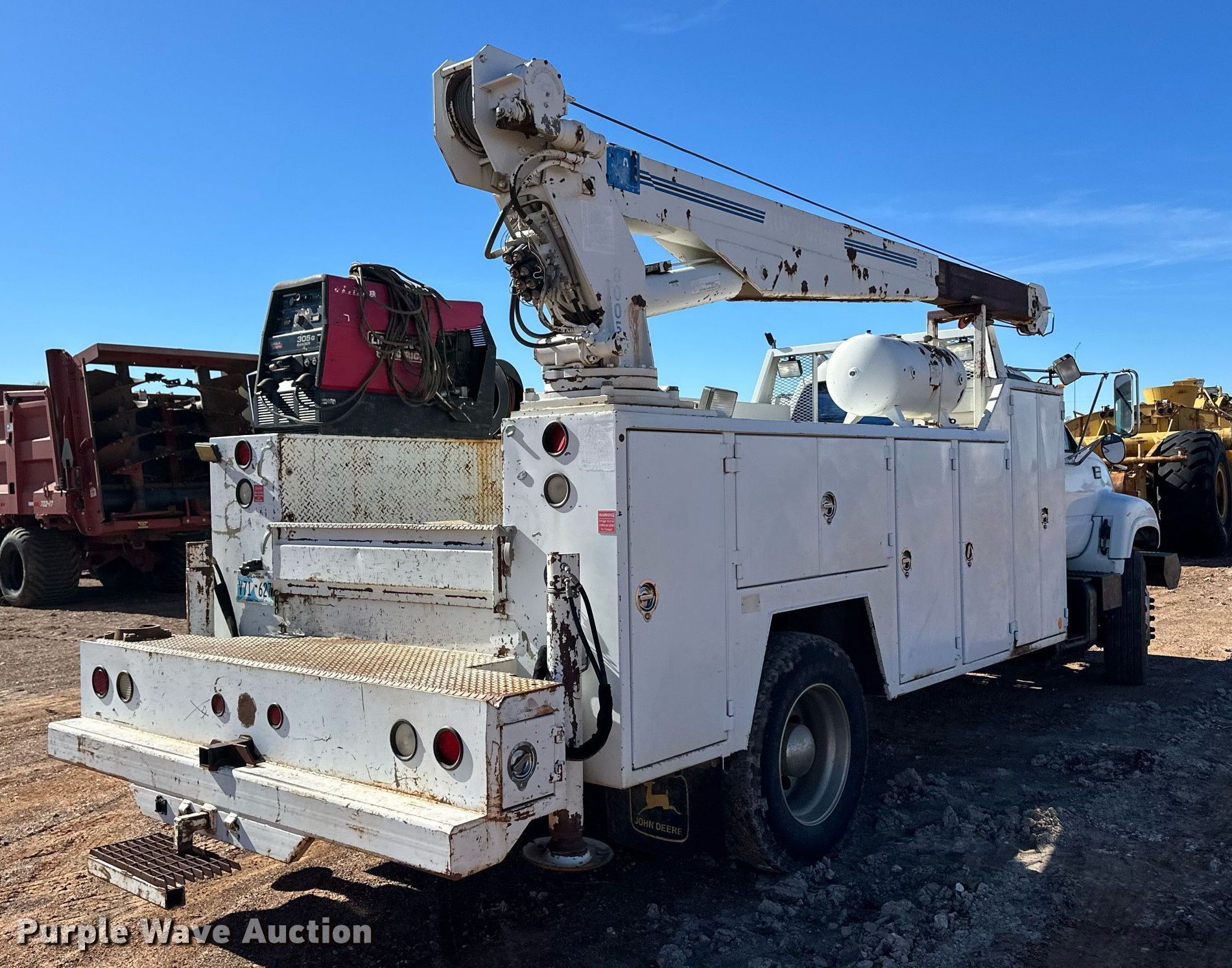 2000 GMC C7500 utility / service truck. Miles: 292,000 on odometer, VIN: 1GDK7H1C1YJ520432, Unit #: 401. Engine Caterpillar 3126, Displacement: 7.2L, Cylinders: 6, Fuel type: Diesel. Transmission Eaton Fuller, Manual, Speed: 7. Chassis Axles: Single, Suspension: Spring, Brakes: Air, PTO. Interior AC, Heat. Features Bed Seyller Custom Bodies, 14' L x 98" W, Welder/generator Lincoln Electric 305G Ranger, Fuel type: Gas, Watts: 9,500, Fuel type: Gas, Welder type: Leads, Stick (AC/DC), Crane Auto Crane 8005H, Maximum boom length: 28' Maximum lift capacity: 8,000 lbs.. Tires Size: 295/75R22.5. Notes Crane hydraulic leak. Oklahoma title. Title distribution may be delayed up to 30 days from verification of funds. Blue Sage Services. Knowles, OK 73844