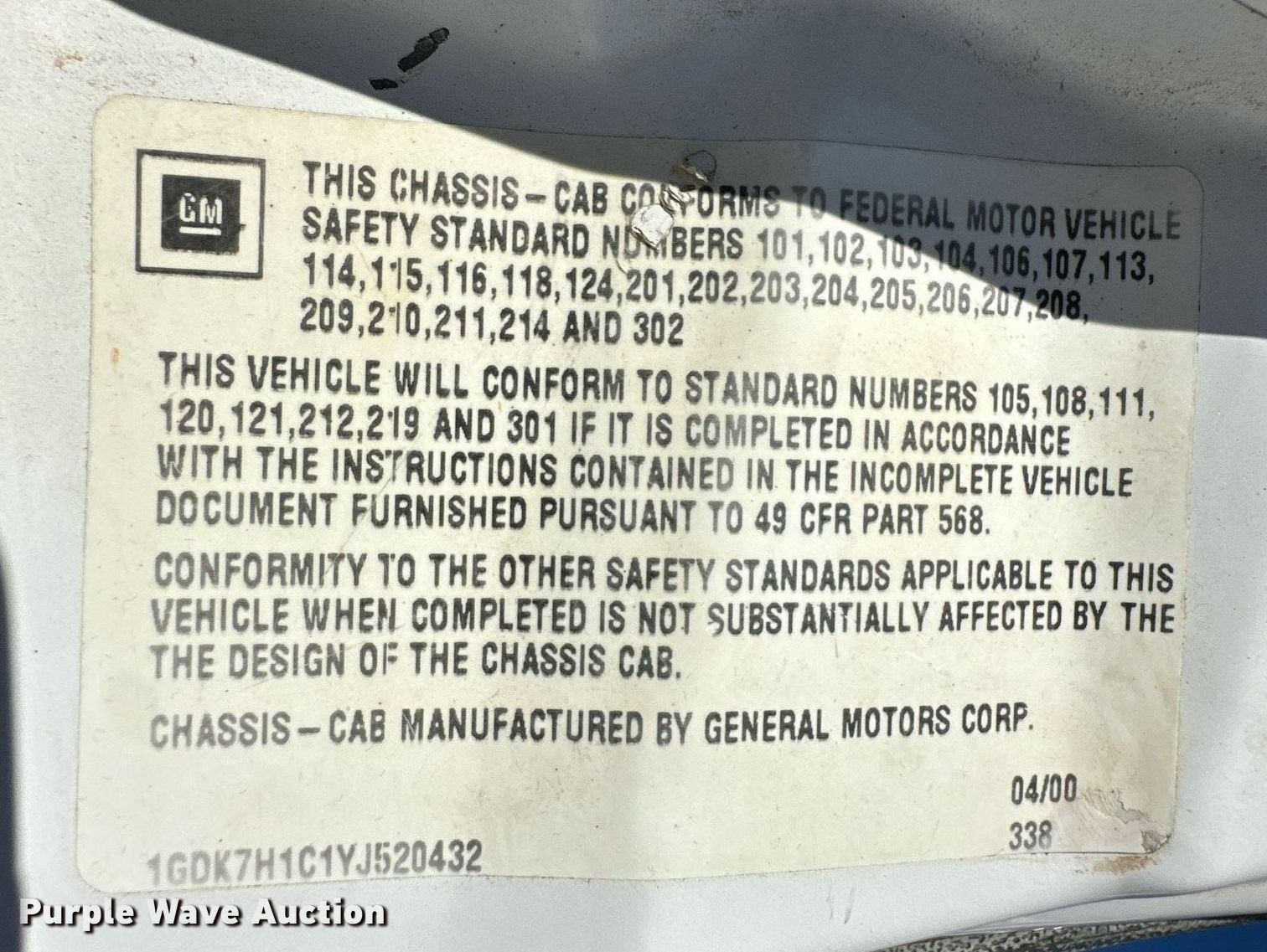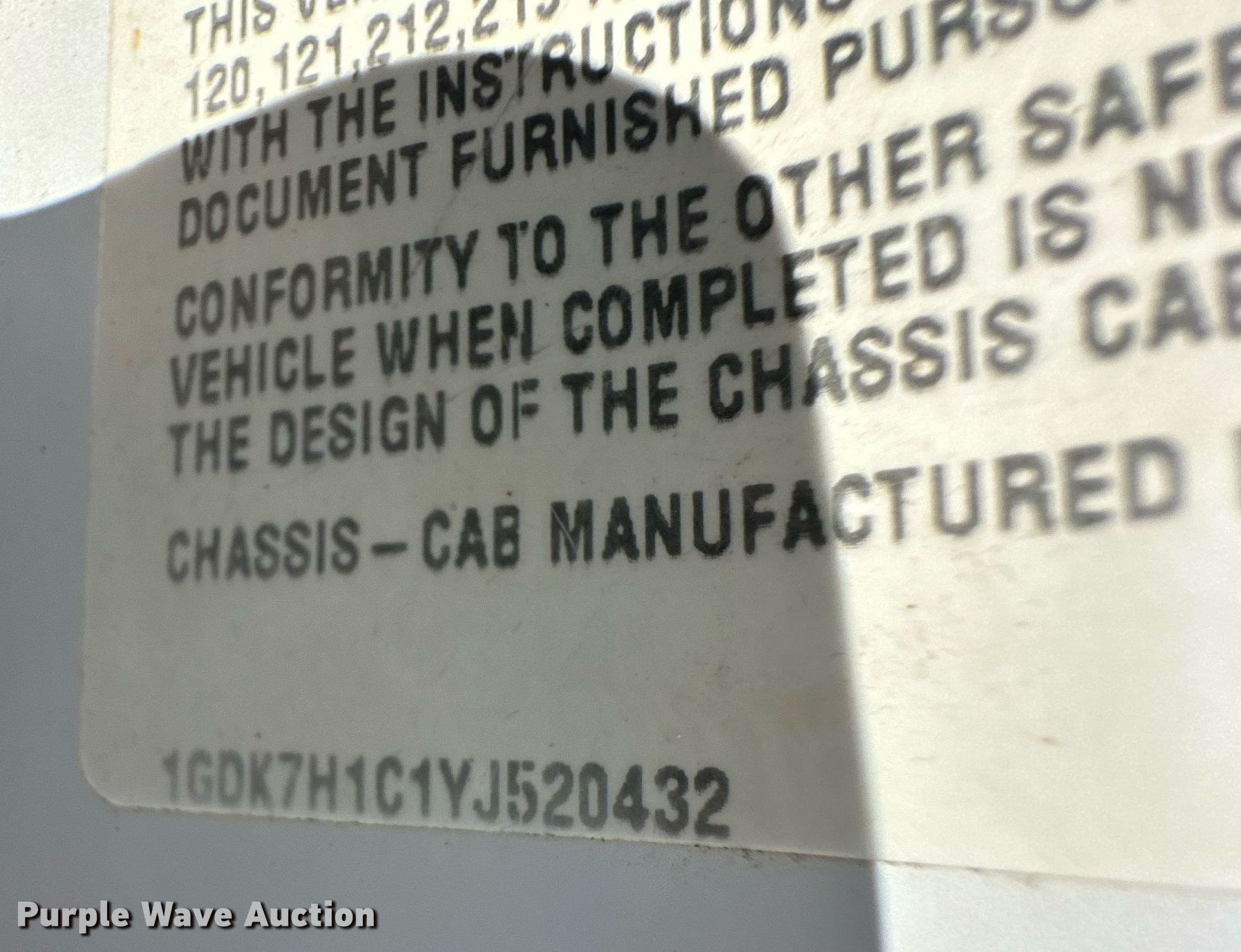 - VIN: 1GDK7H1C1YJ520432