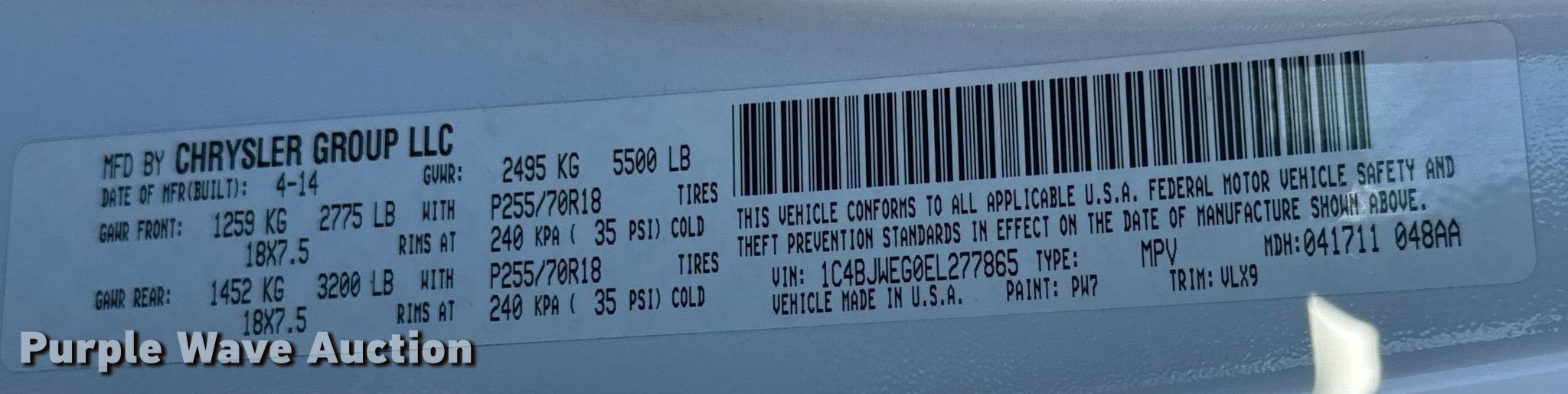 Purple Wave is selling a used Passenger Vehicle in Kansas. This item is a 2014 Jeep Wrangler Unlimited SUV with the following: Miles: 202,208 on odometer, Miles or hours may vary, unit still in use, VIN: 1C4BJWEG0EL277865