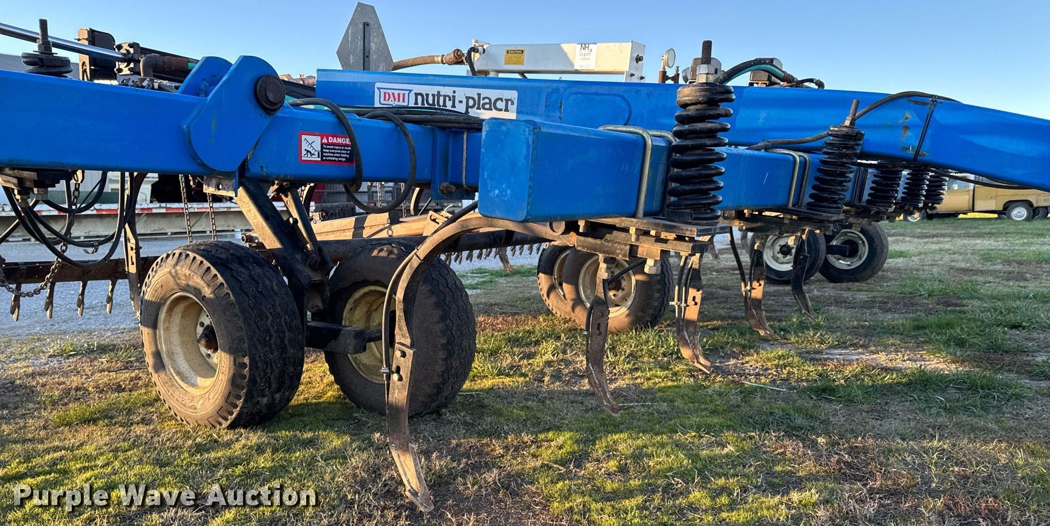Purple Wave is selling a used Applicator Pull Type in Kansas. This item is a DMI Nutri-Placr 4300 NH3 applicator with the following: Liquid/NH3 applicator, Rows: 22, Spacing: 20", Delivery type: Knife, NH3 hookups, Raven NH3 Supercooler,, Electronics, Rate controller, Raven SCS 440,