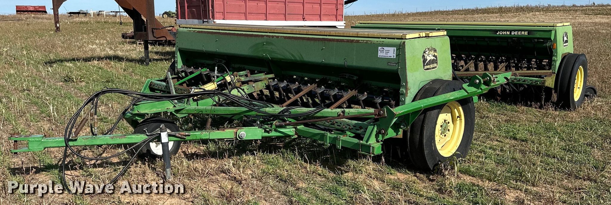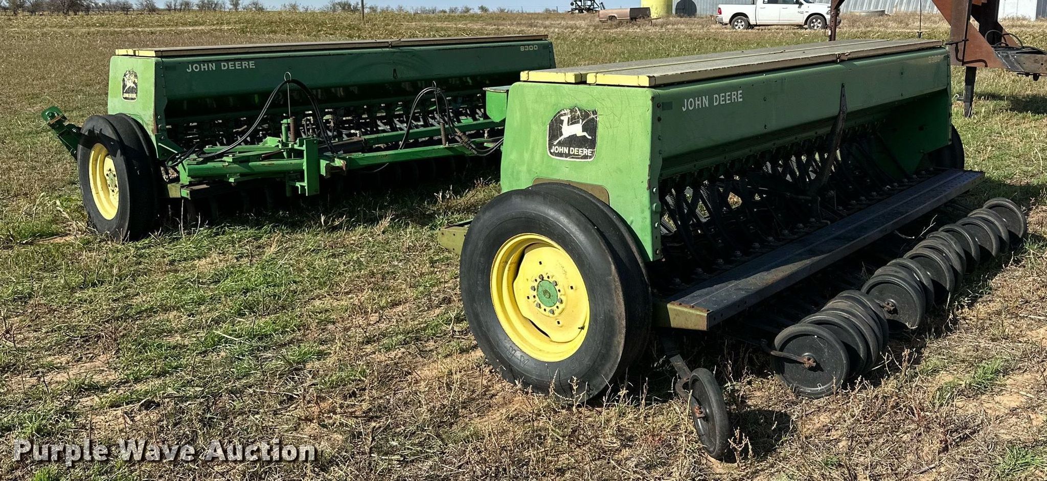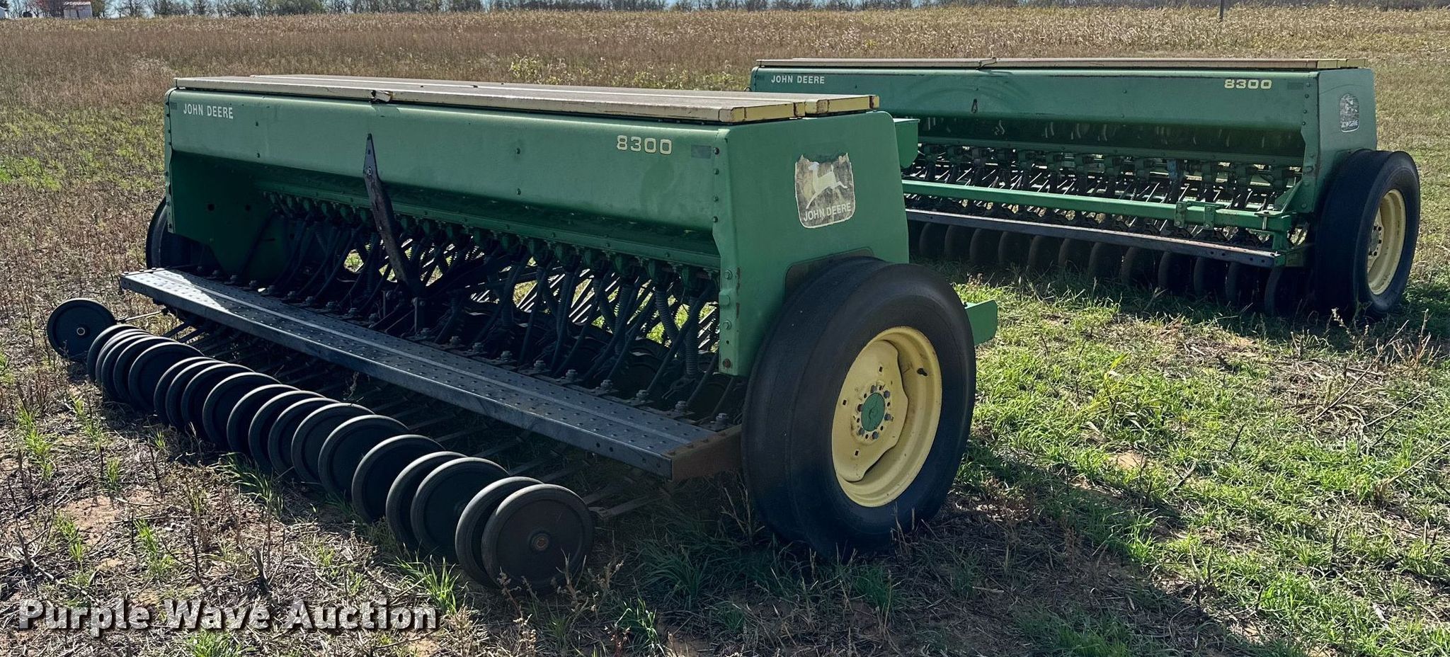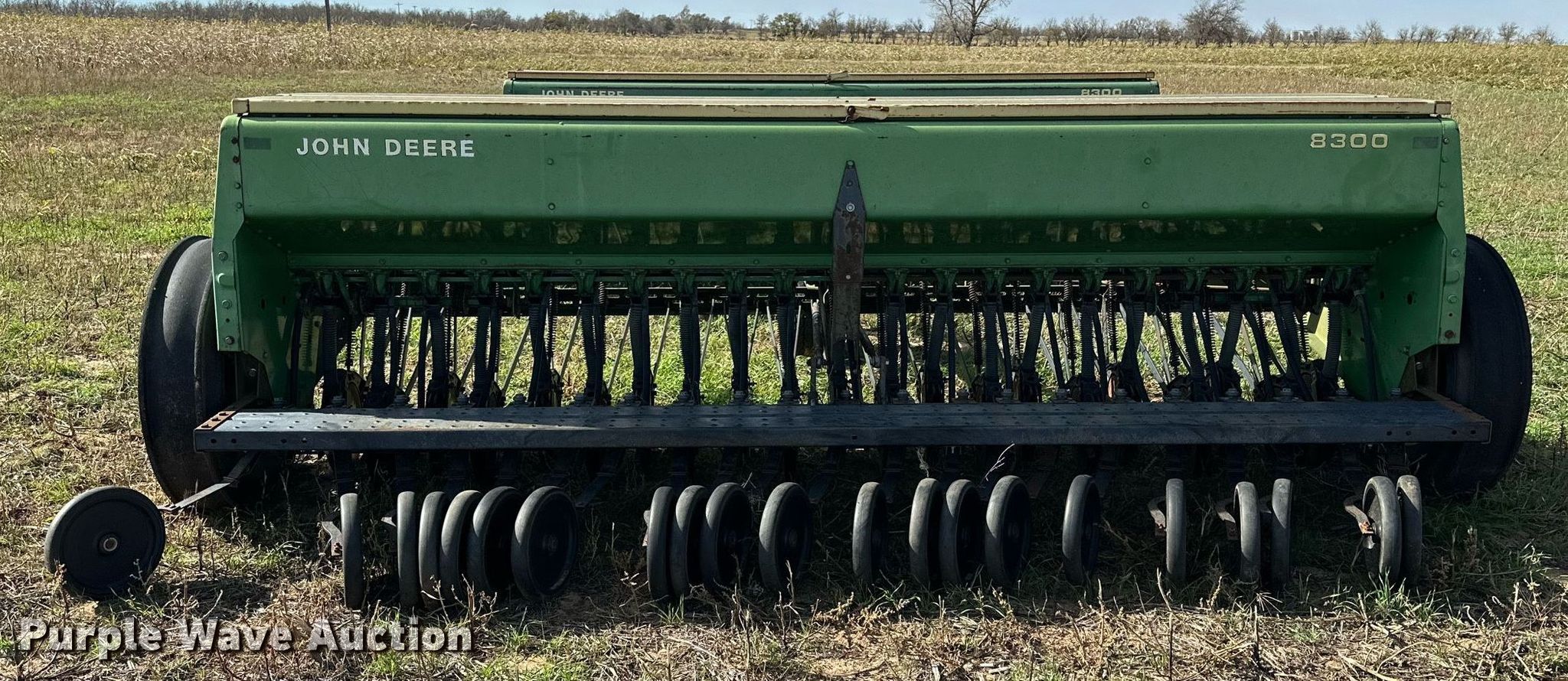 Purple Wave is selling a used Grain Drill or Seeder in Texas. This item is a (2) John Deere 8300 grain drills with the following: Width: 25', Row units: 20, Row spacing: 8", Serial: N08000X060546