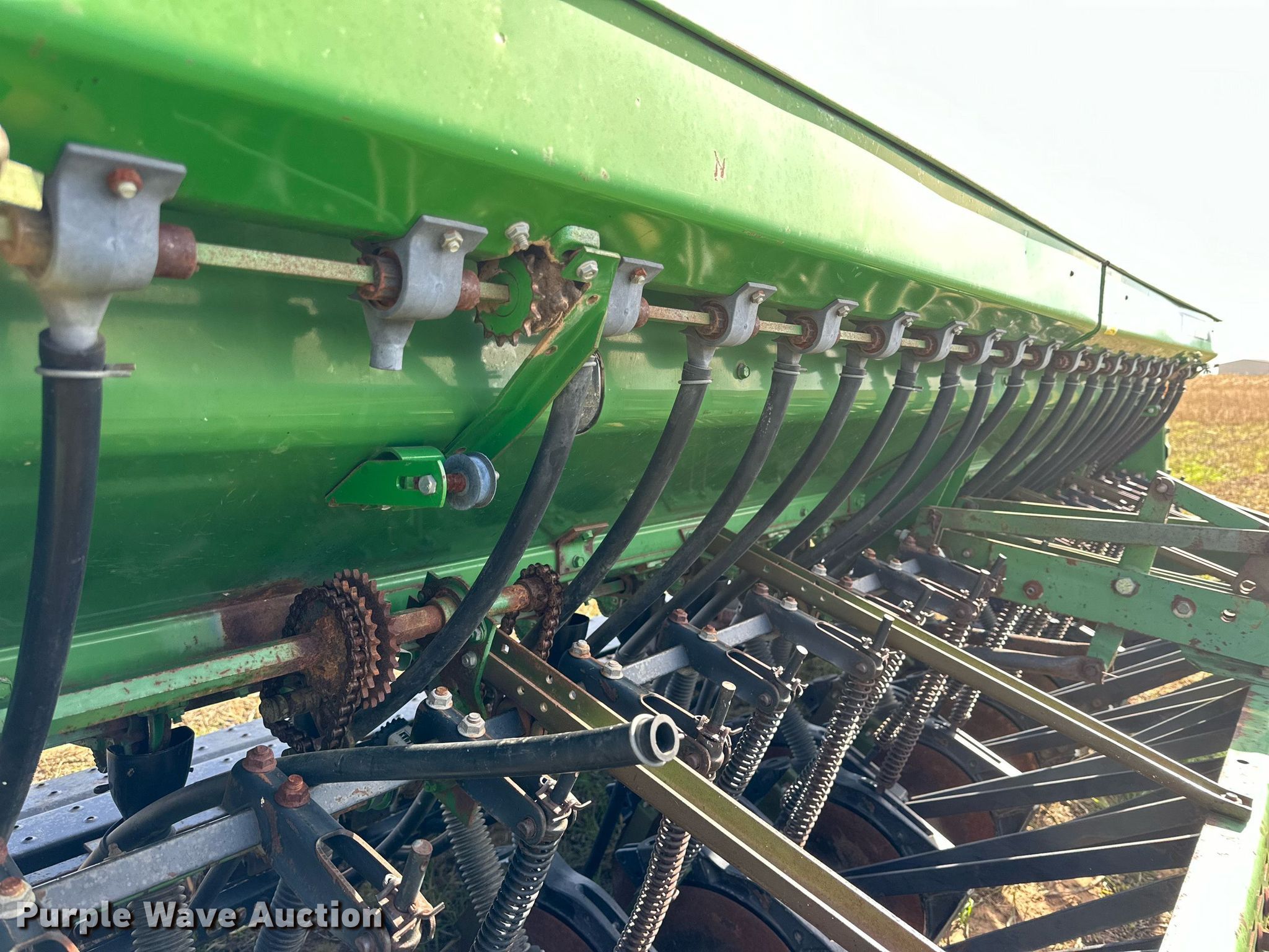 (2) John Deere 8300 grain drills. Width: 25', Row units: 20, Row spacing: 8", Serial: N08000X060546. Features Seed delivery Bulk fill system, Row units Meter drive: Ground, Down pressure: Spring, Disk openers: Double, Closing system: Single Type: Rubber.. Tires Drive/ outside tire size: 7.50-20 Quantity: 4. Canadian, TX 79014