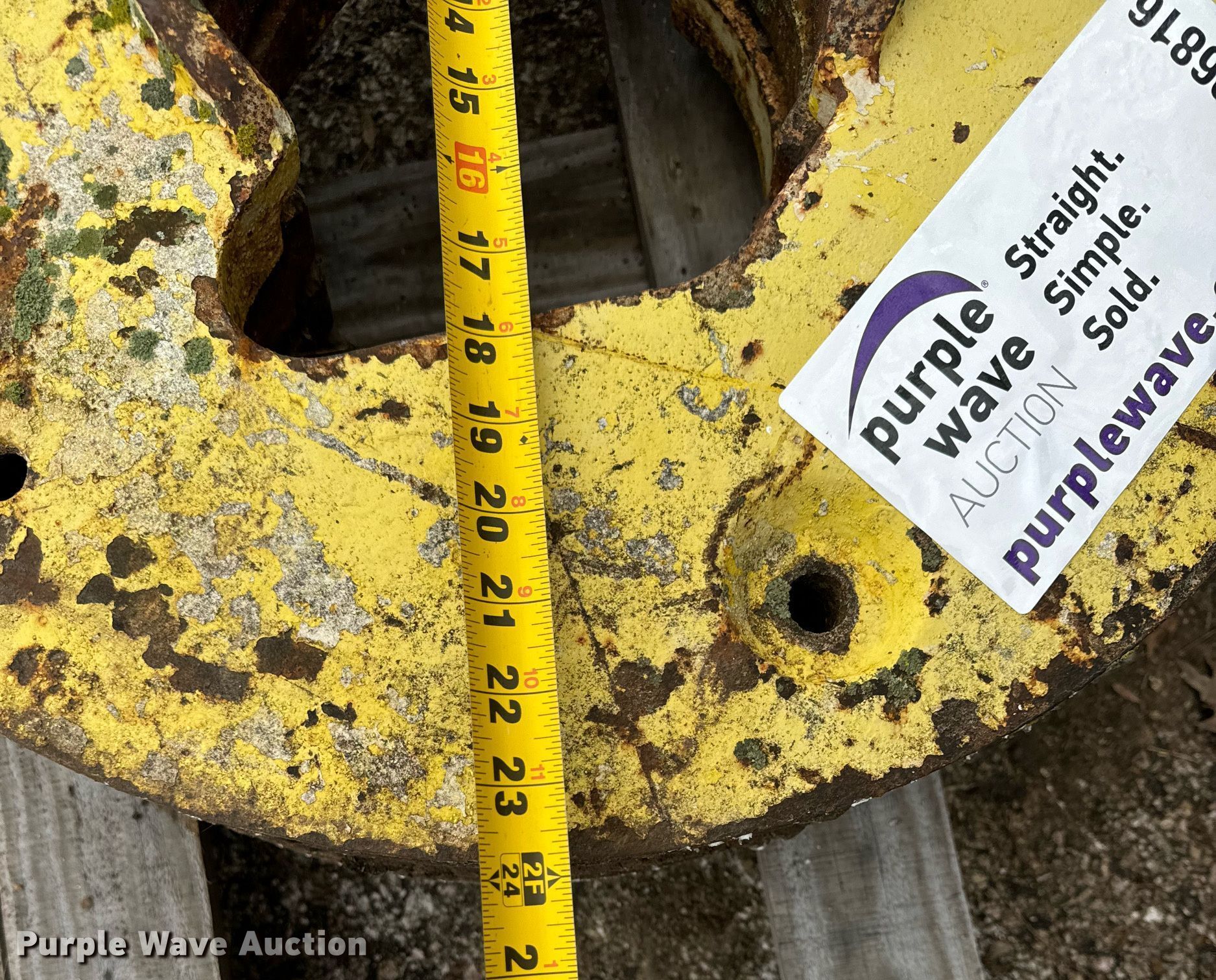 Purple Wave is selling a used Ag Equip. or Header Trailer in Missouri. This item is a (4) John Deere wheel weights with the following: Diameter: 24"