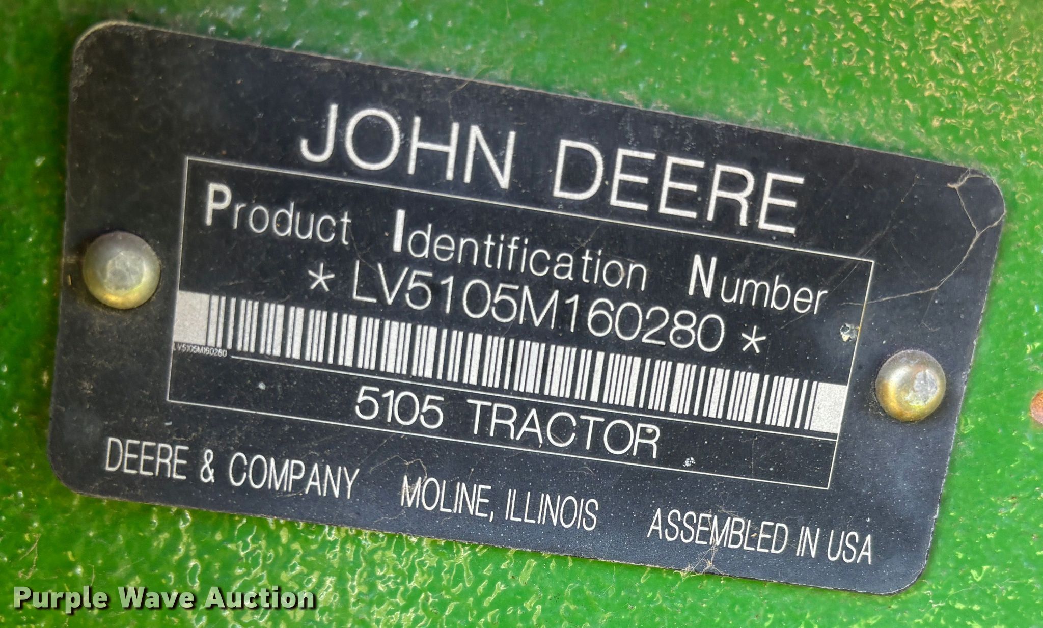 Purple Wave is selling a used Tractor in Oklahoma. This item is a 2009 John Deere 5105M MFWD tractor with the following: Hours: 1,543 on meter, Serial: LV5105M160280