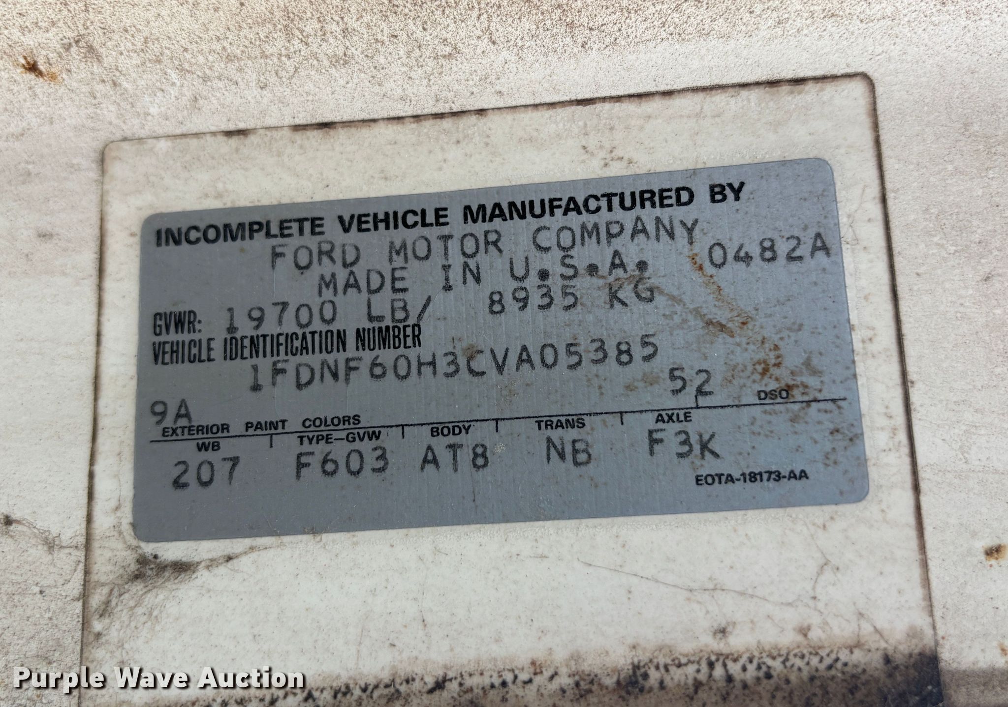 • VIN: 1FDNF60H3CVA05385