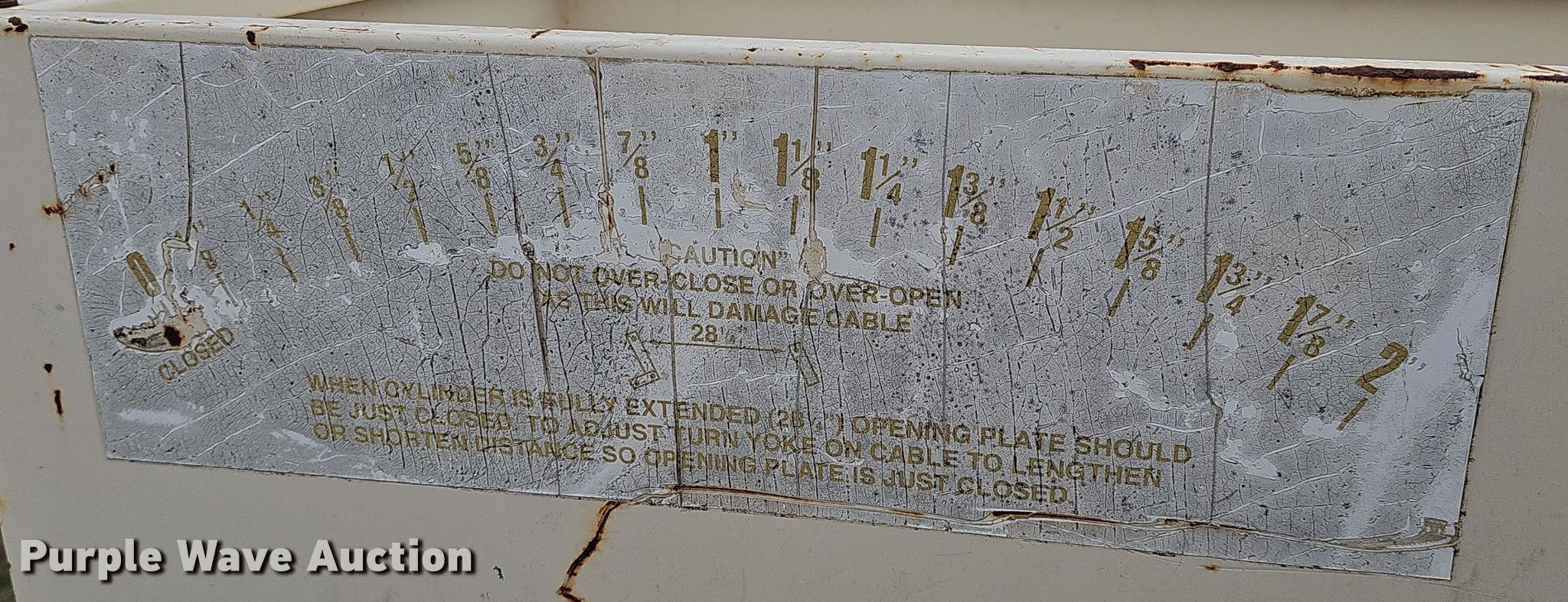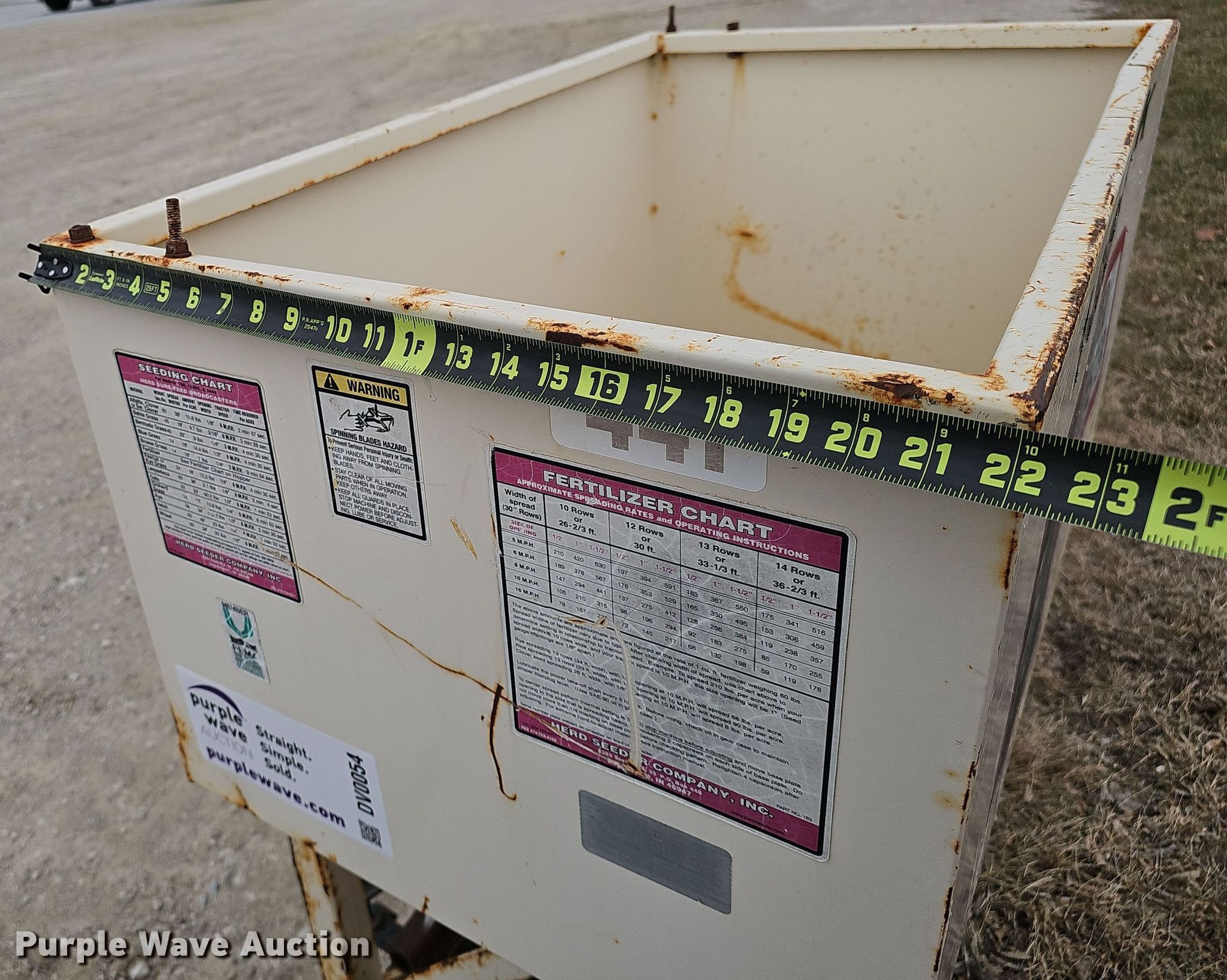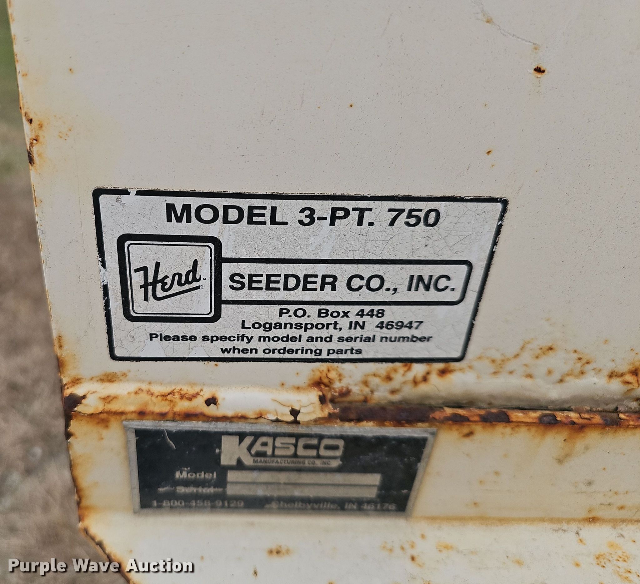 Kasco 750 broadcast spreader. Serial: 6412, 22" L x 36" W, Hitch: Three point. High Plains Erosion. Hickman, NE 68372