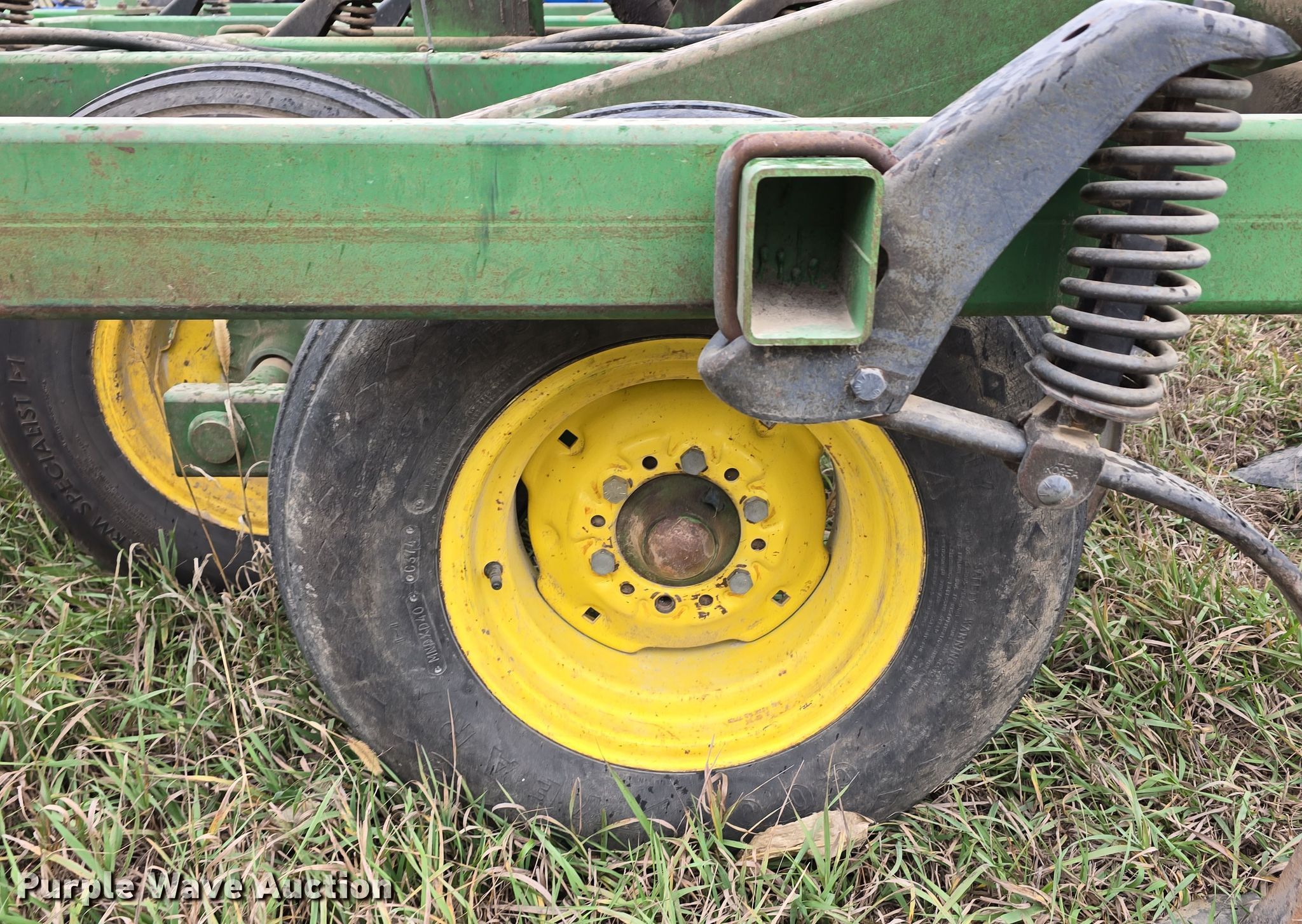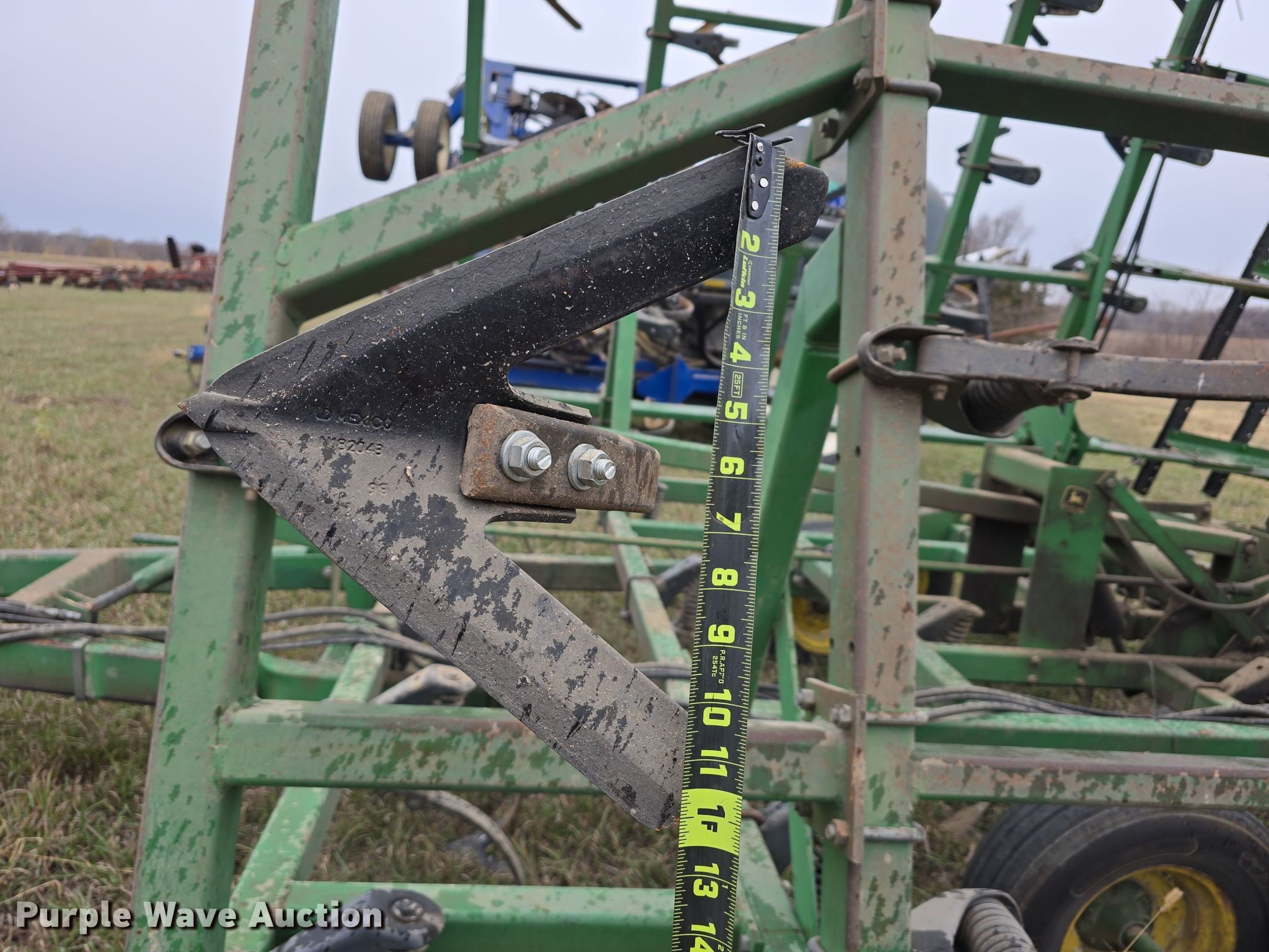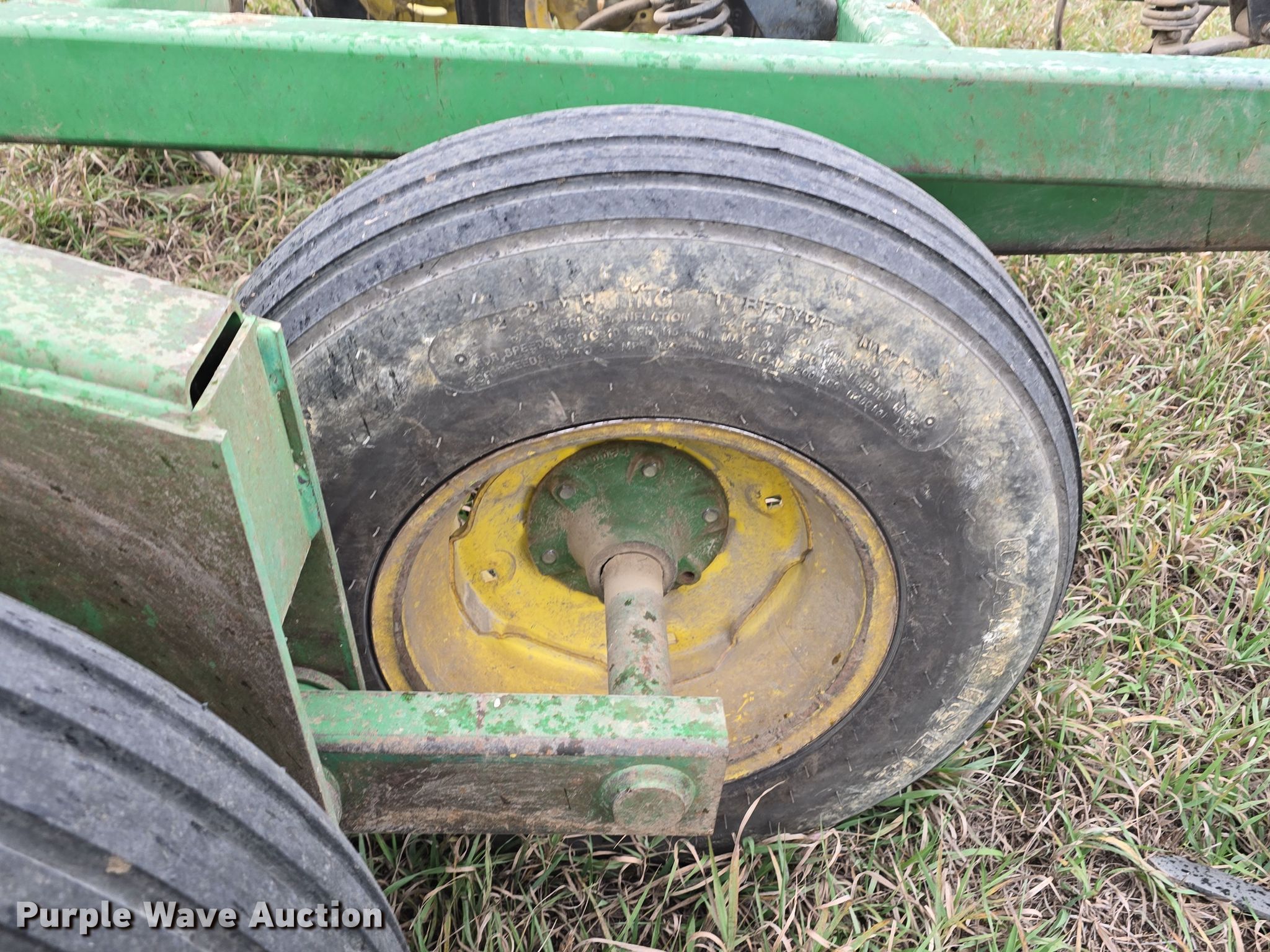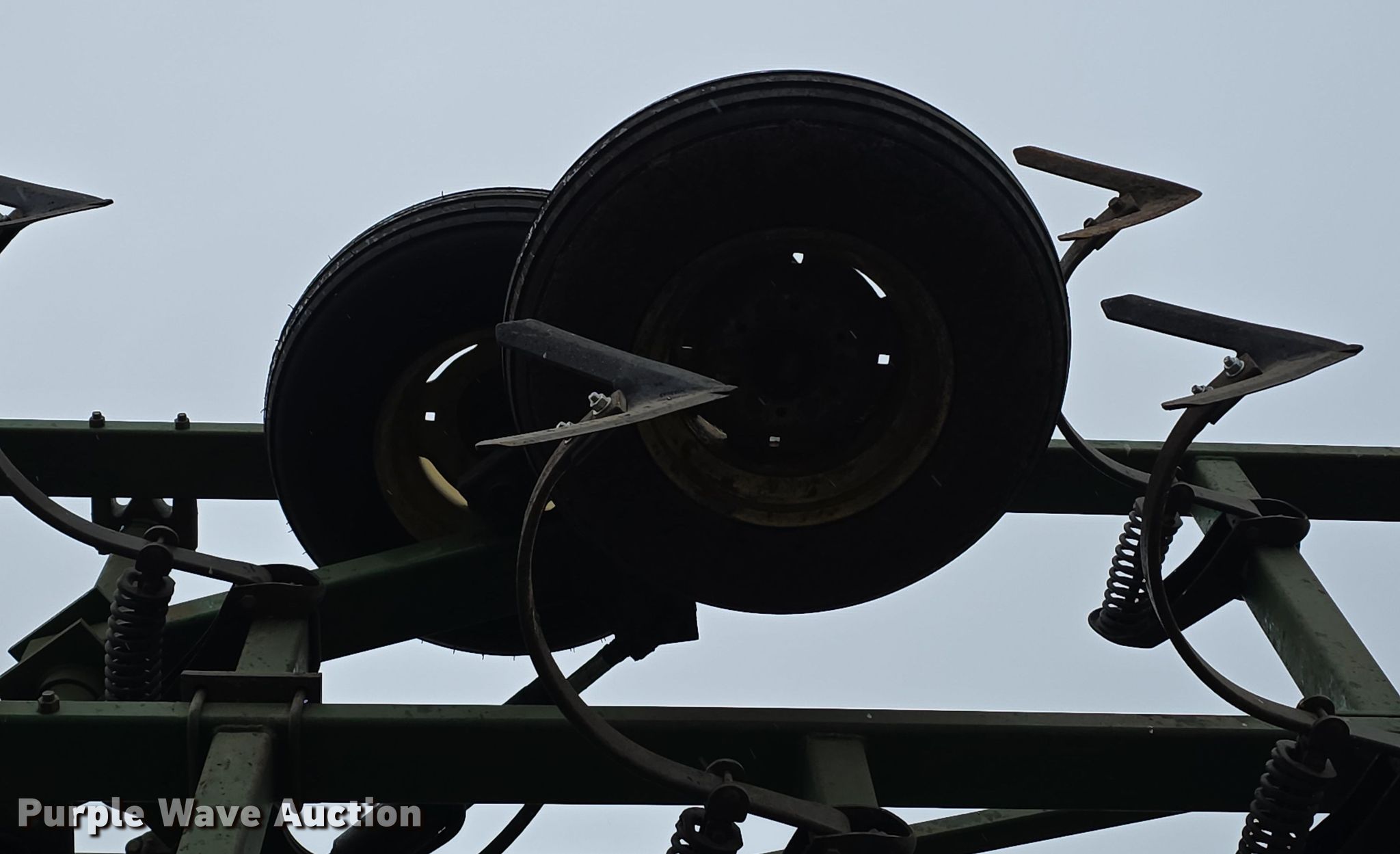 John Deere 980 field cultivator. Overall width: 38'. Features Shanks: 52, Sweep width: 12", Operation Hydraulic lift, Hydraulic fold, Leveler: Manual, Attachments Tine harrow Harrow bars: 3.. Tires Tire size: 9.5L-15, Gauge wheels. Prime Land and Cattle. Seneca, KS 66538