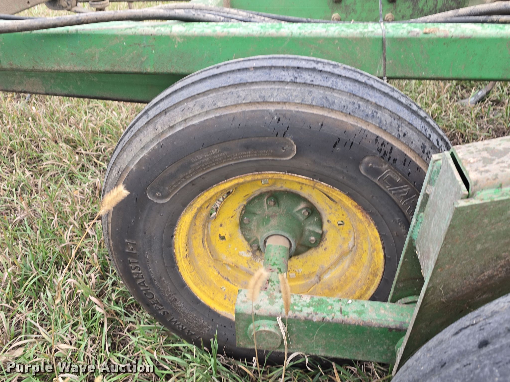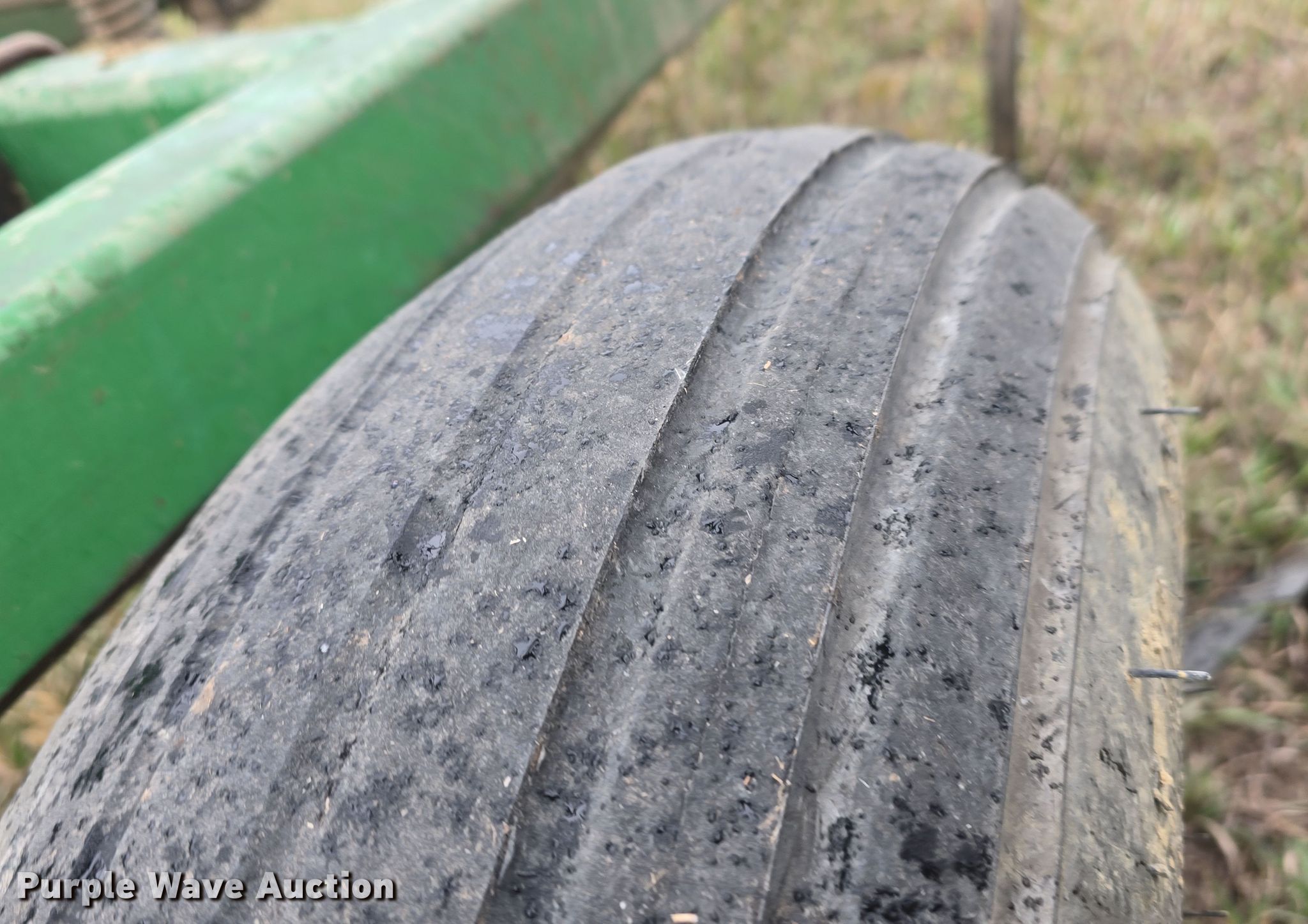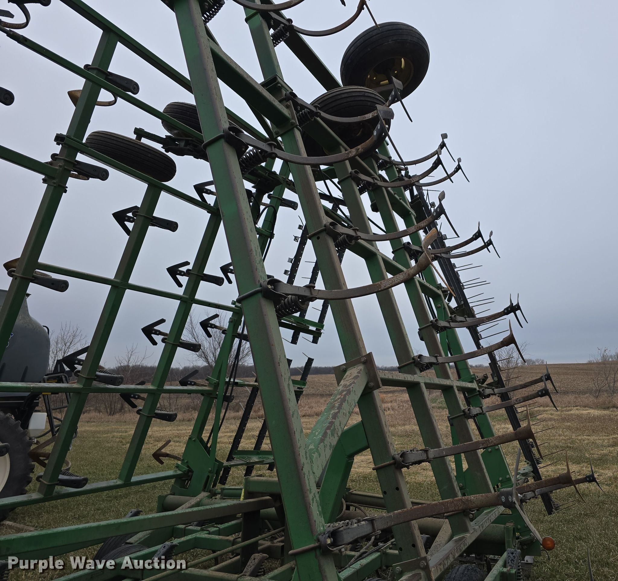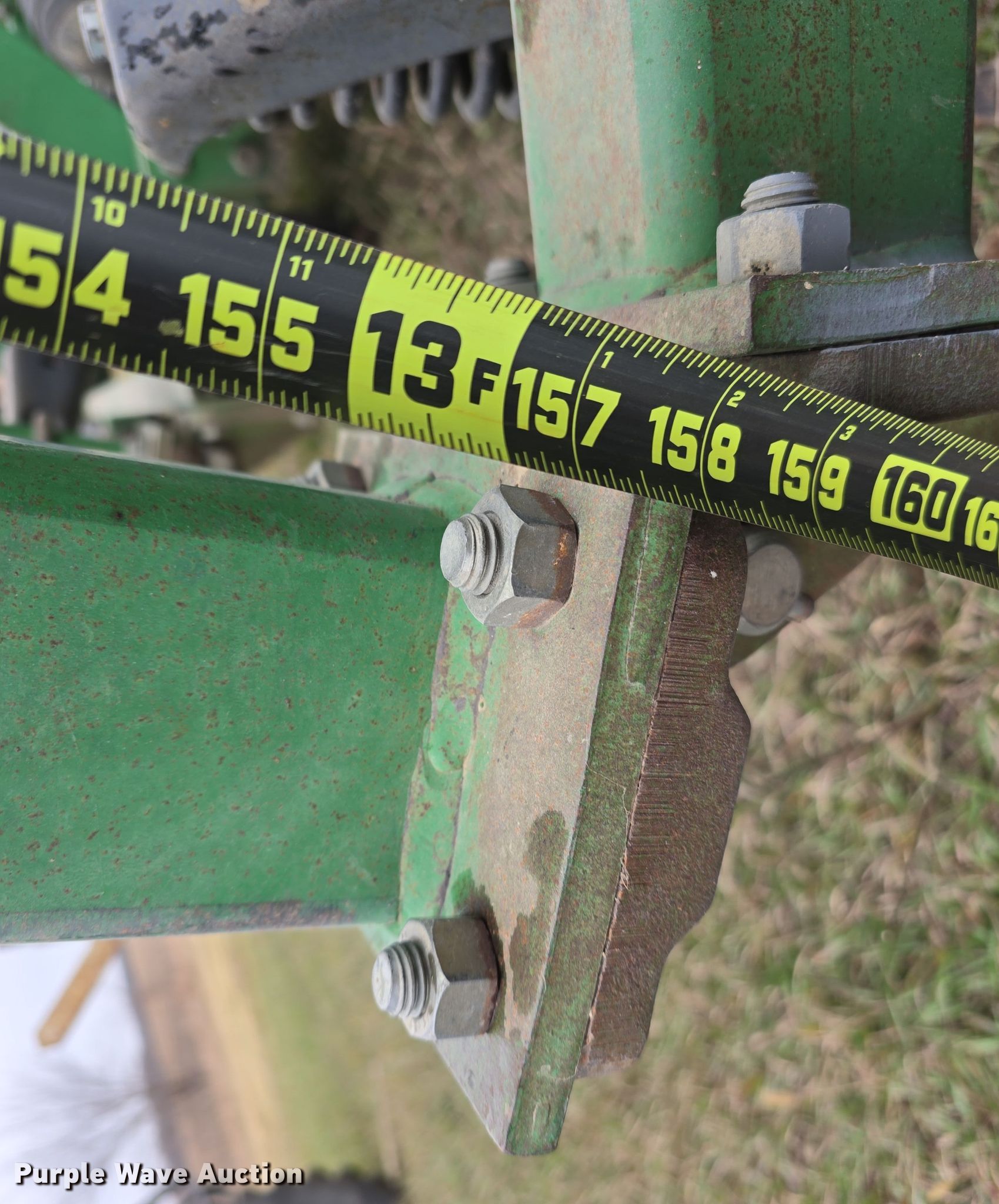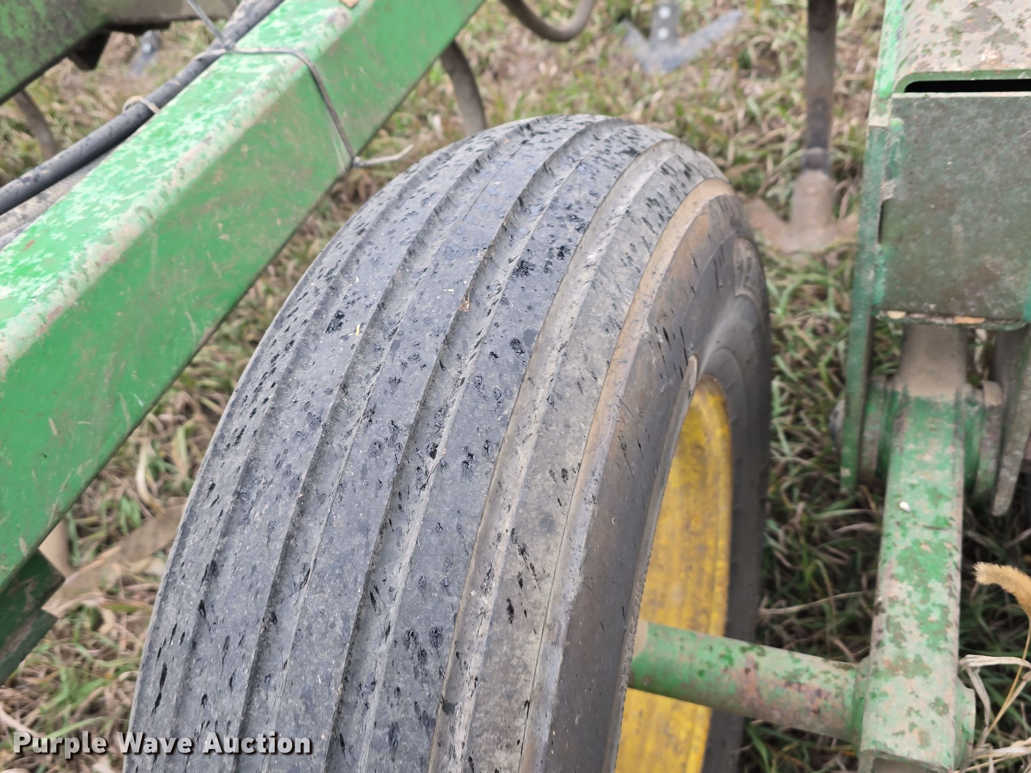 John Deere 980 field cultivator. Overall width: 38'. Features Shanks: 52, Sweep width: 12", Operation Hydraulic lift, Hydraulic fold, Leveler: Manual, Attachments Tine harrow Harrow bars: 3.. Tires Tire size: 9.5L-15, Gauge wheels. Prime Land and Cattle. Seneca, KS 66538