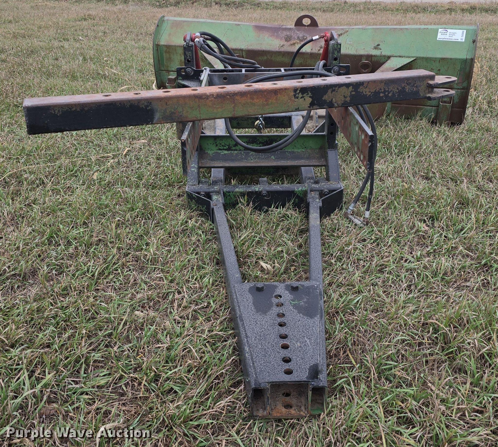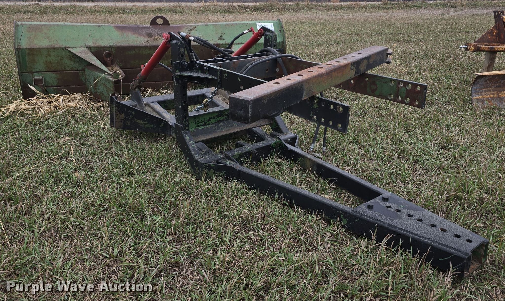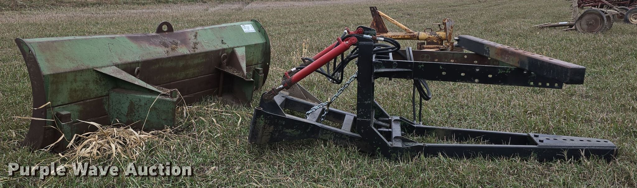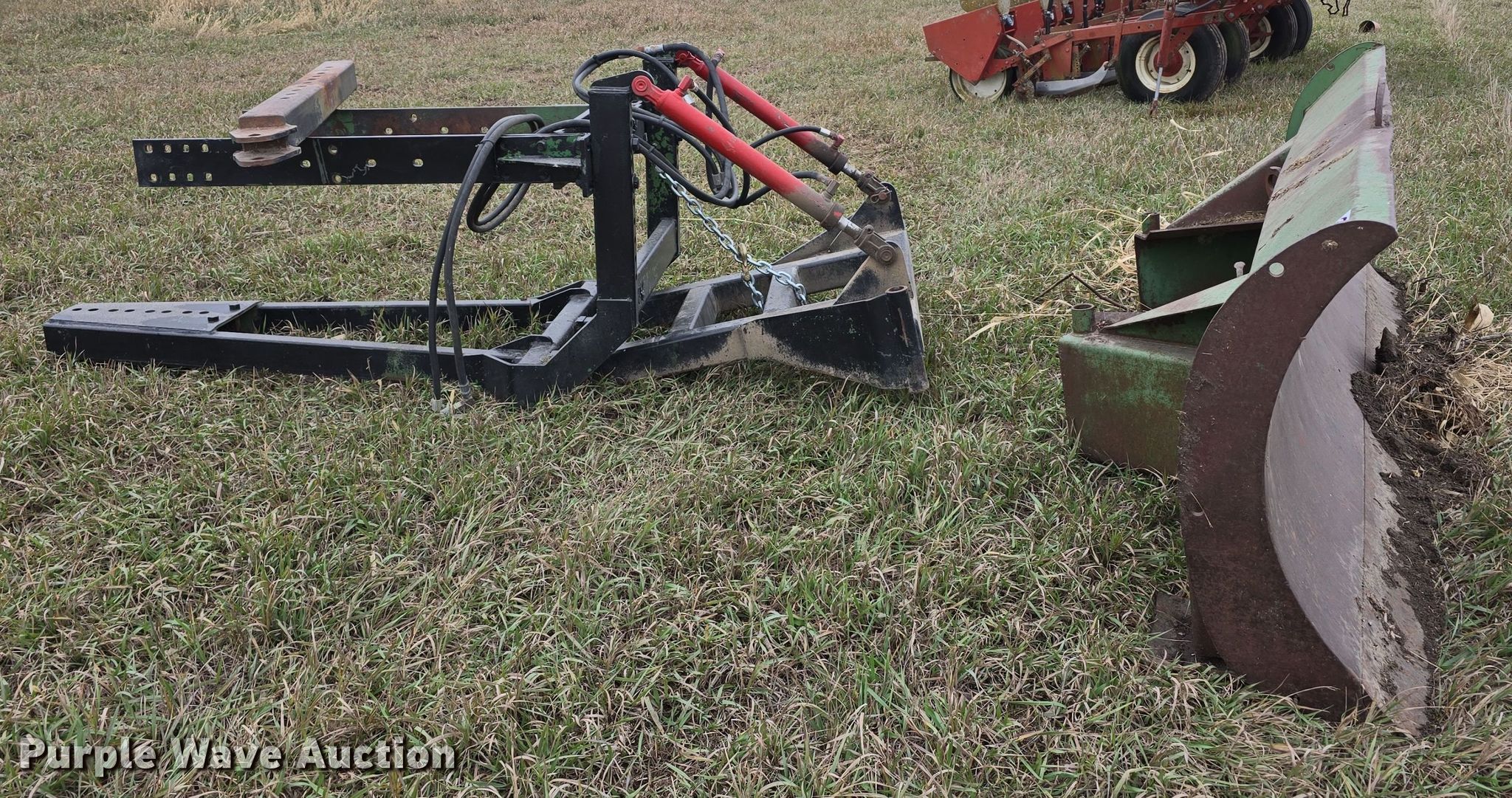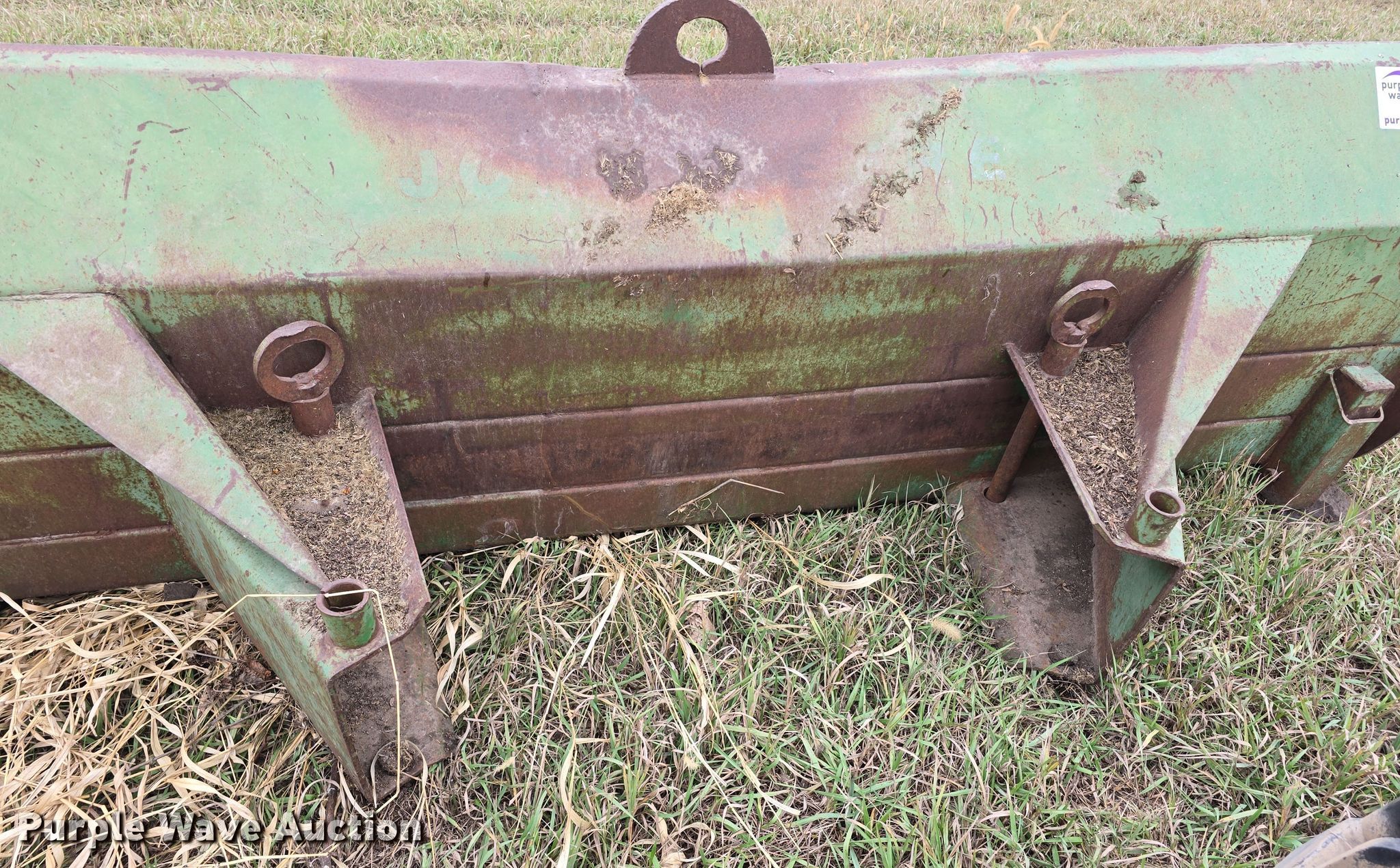 Purple Wave is selling a used Ag Tractor Loader or Attach. in Kansas. This item is a John Deere 00524 blade with the following: Serial: 28203GL, Width: 108", Mounting frame