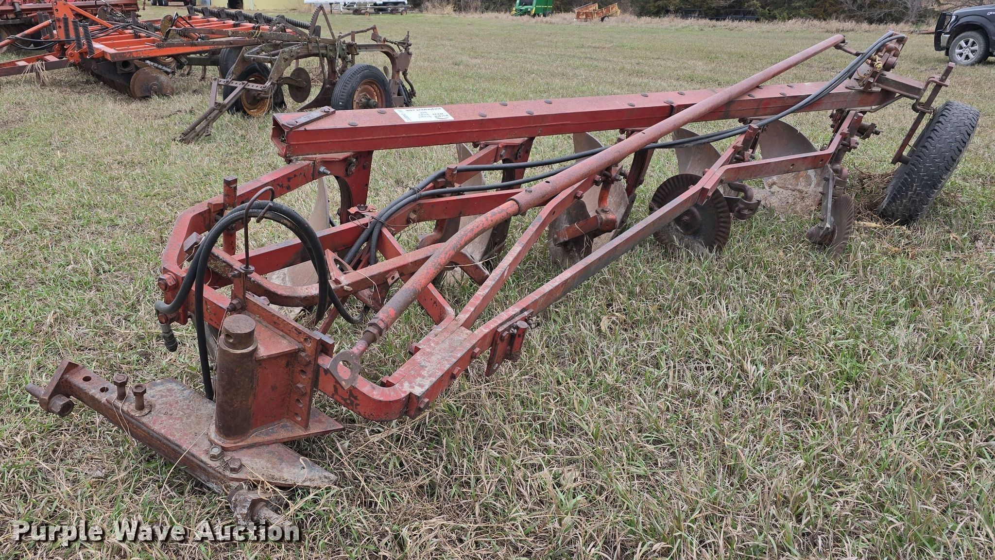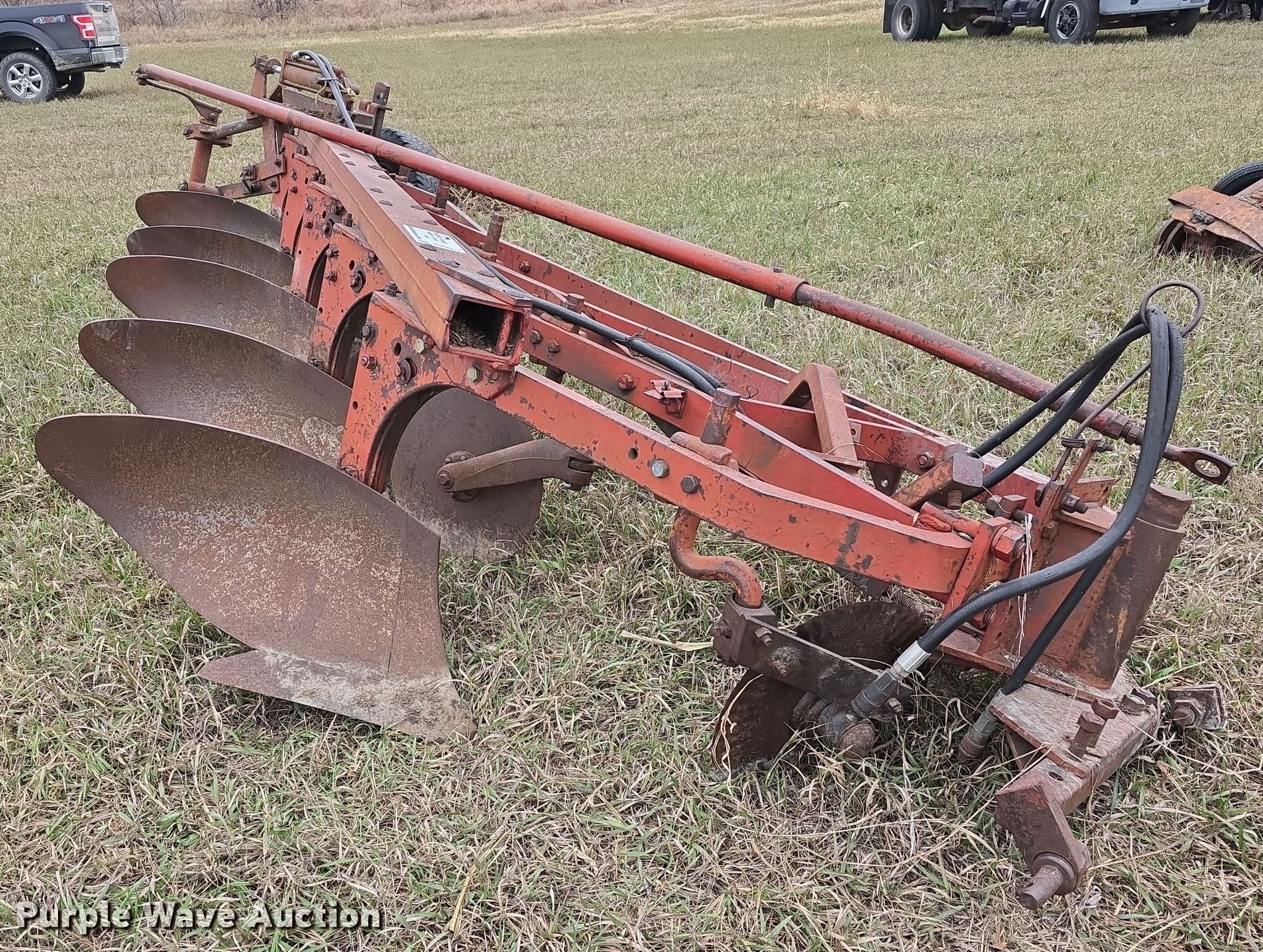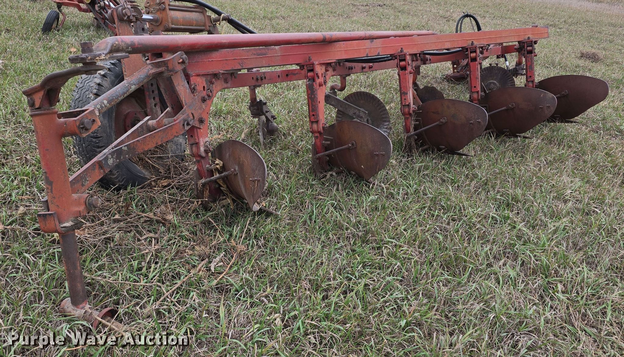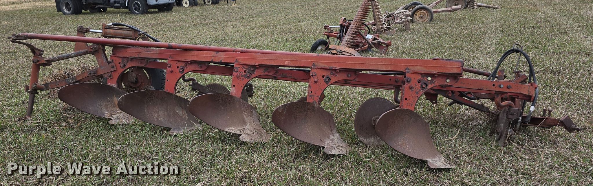 Purple Wave is selling a used Plow in Kansas. This item is a International 550 five bottom plow with the following: Overall width: 11'