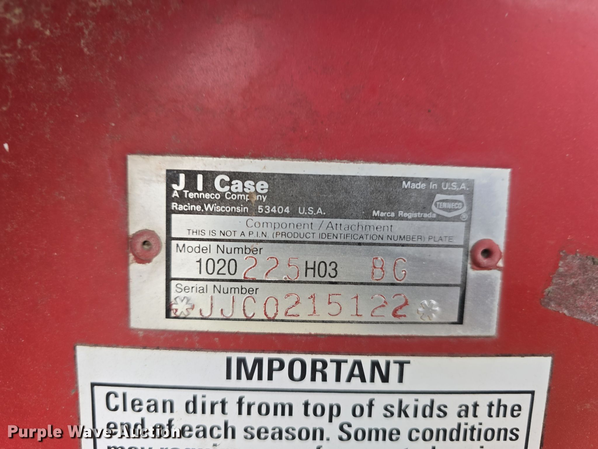 Purple Wave is selling a used Platform or Stripper Head in Kansas. This item is a Case 1020 225H03 BG flex head with the following: Serial: JJC0215122